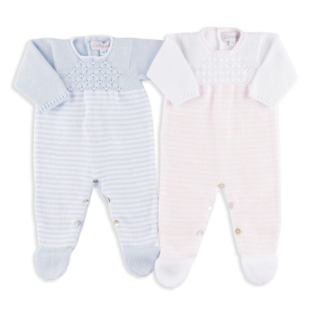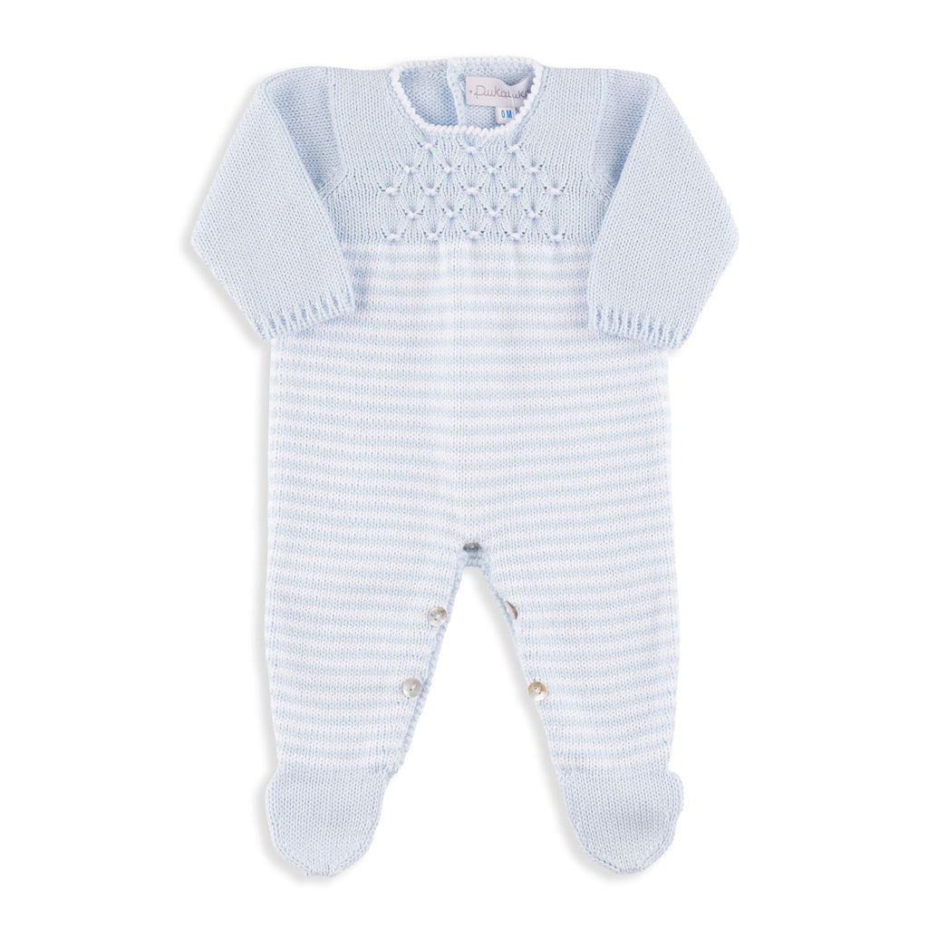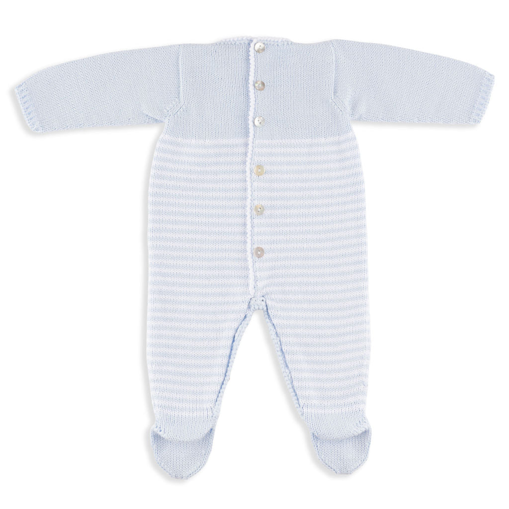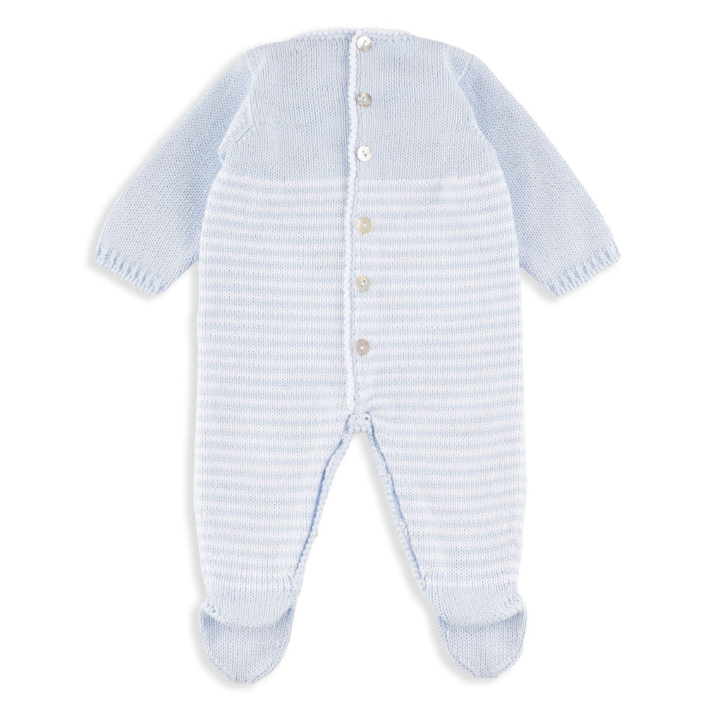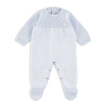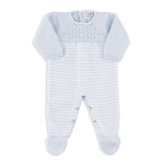 Gibson Long-Sleeve Blue and White Stripe Footed Romper