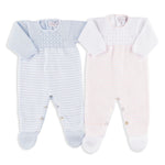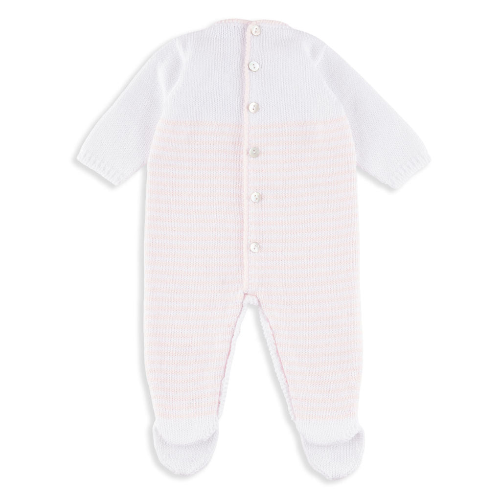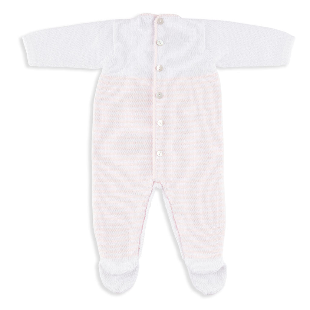 Gibson Long-Sleeve Pink and White Stripe Footed Romper
