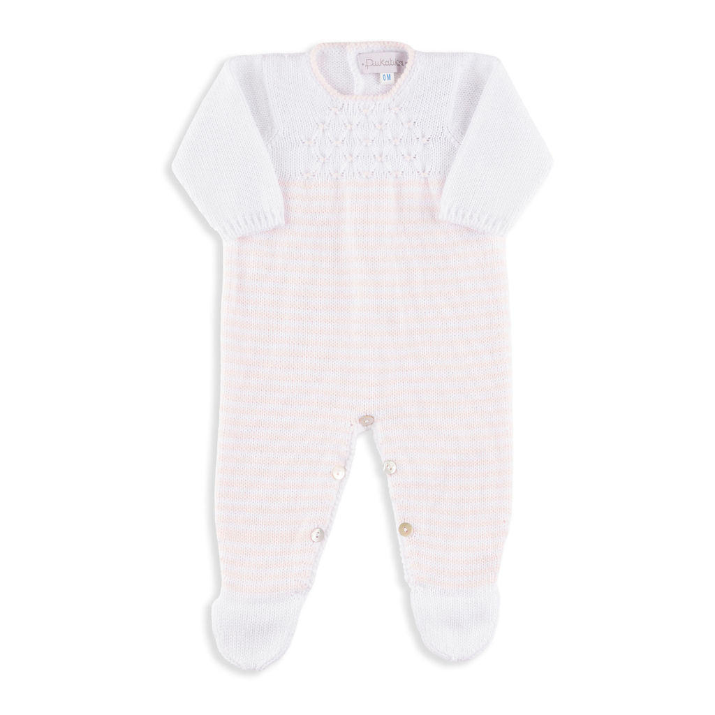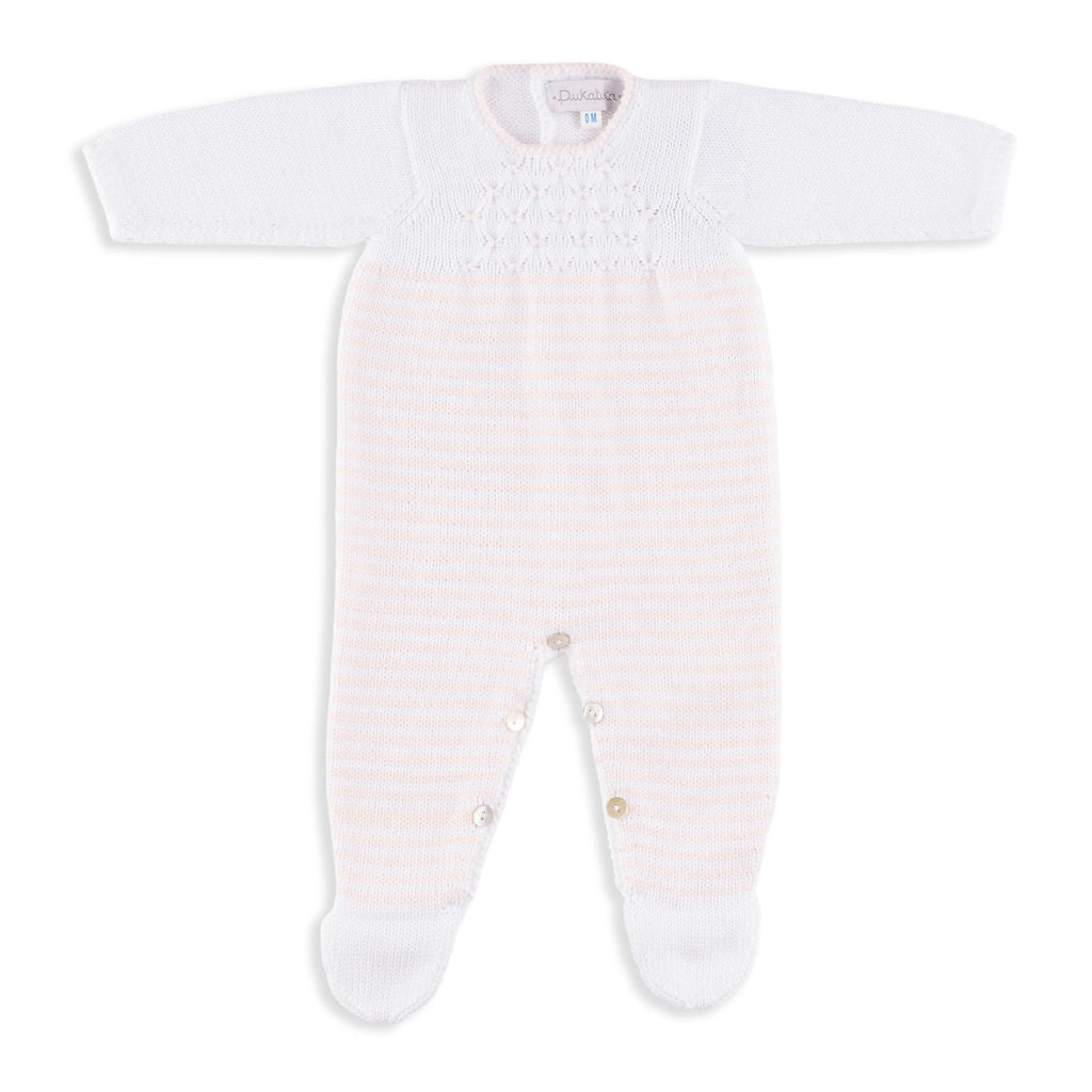 100% cotton, soft no-itch cotton, true to size. For a newborn, get the size 1M! The Gibson Long-Sleeve Pink and White Stripe Footed Romper combines classic design with everyday comfort. Crafted from soft, breathable cotton, it keeps your little one snug and stylish from playtime to nap time.