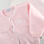 Pippa Pink Knitted Cardigan with Hand Embroidered White Dots