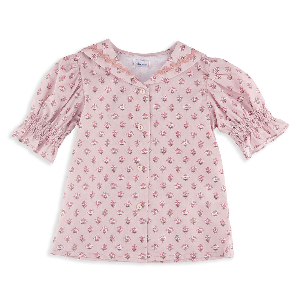 Beatrice Pink Floral Scallop Detail Blouse
