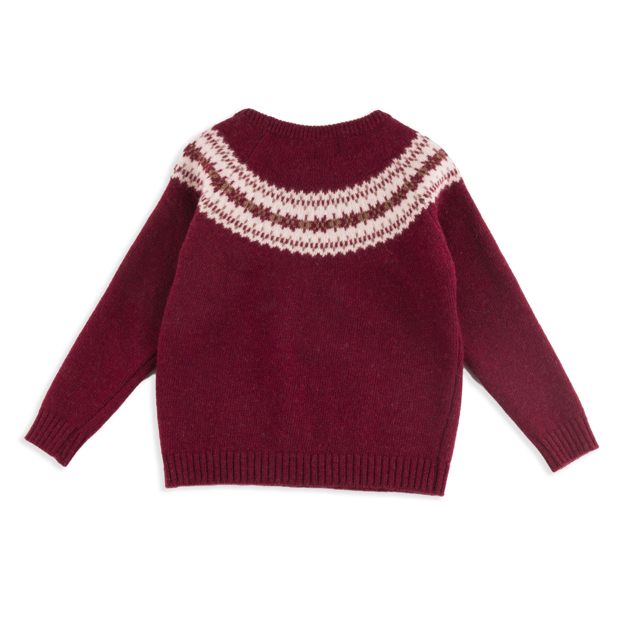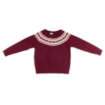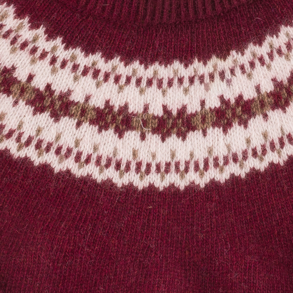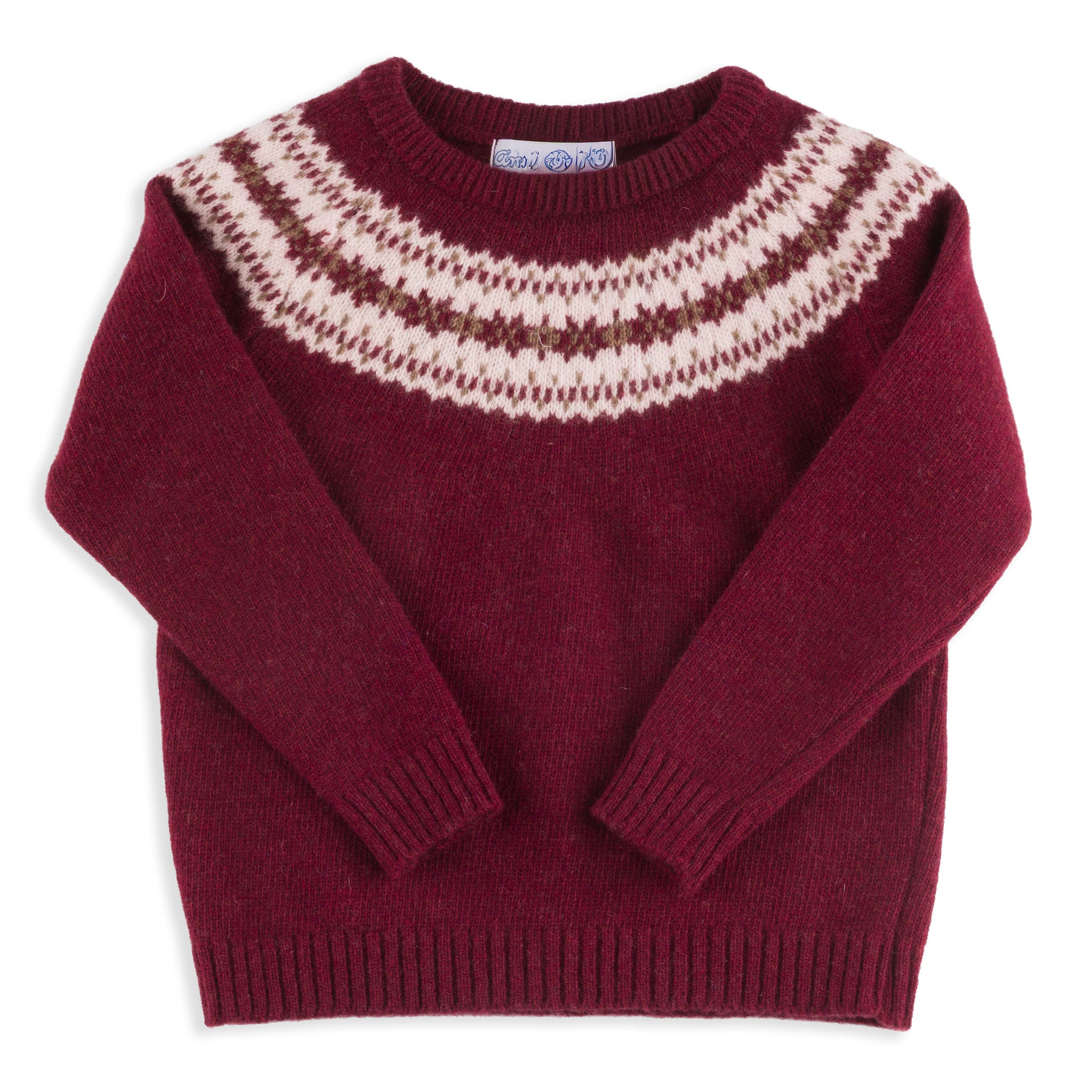 Runs true to size. The Burgundy Fairisle Sweater features elegant draping and a rich, deep hue that adds a touch of sophistication. Crafted from soft, breathable fabric, it offers both comfort and timeless style for any occasion.