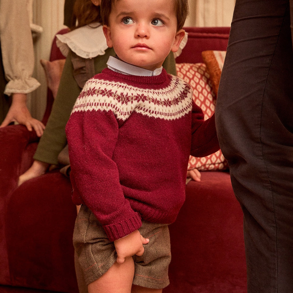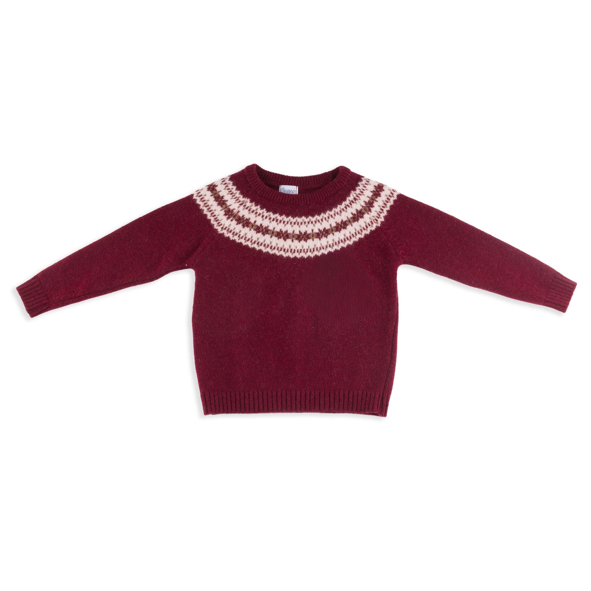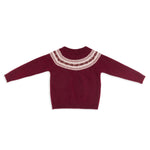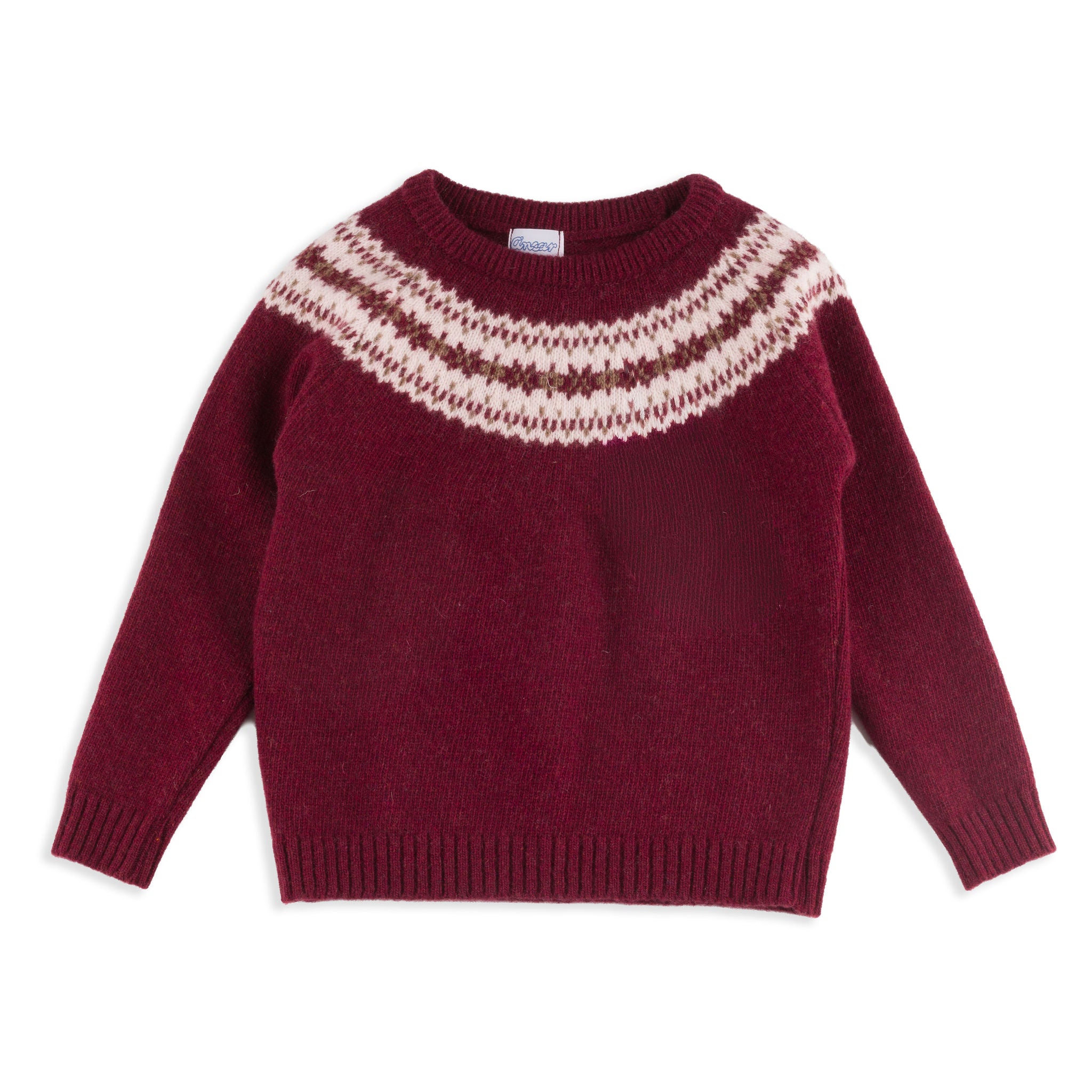 Runs true to size. The Burgundy Fairisle Sweater features elegant draping and a rich, deep hue that adds a touch of sophistication. Crafted from soft, breathable fabric, it offers both comfort and timeless style for any occasion.