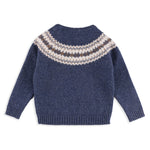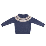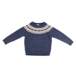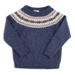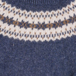 Runs true to size. The Blue Fairisle Sweater combines effortless draping with a soft, breathable fabric for all-day comfort. Its classic cut and understated hue make it a versatile piece that pairs easily with both casual and polished looks.