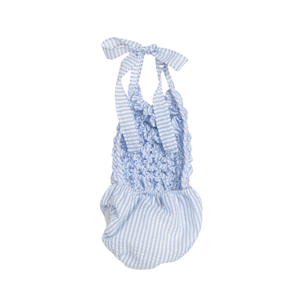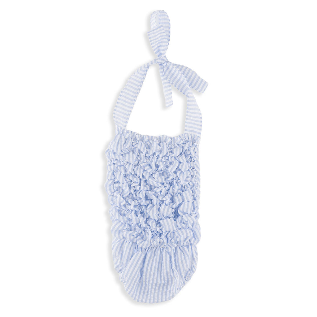 Meghan Blue Seersucker Stripe Ruched Halter Swimsuit
