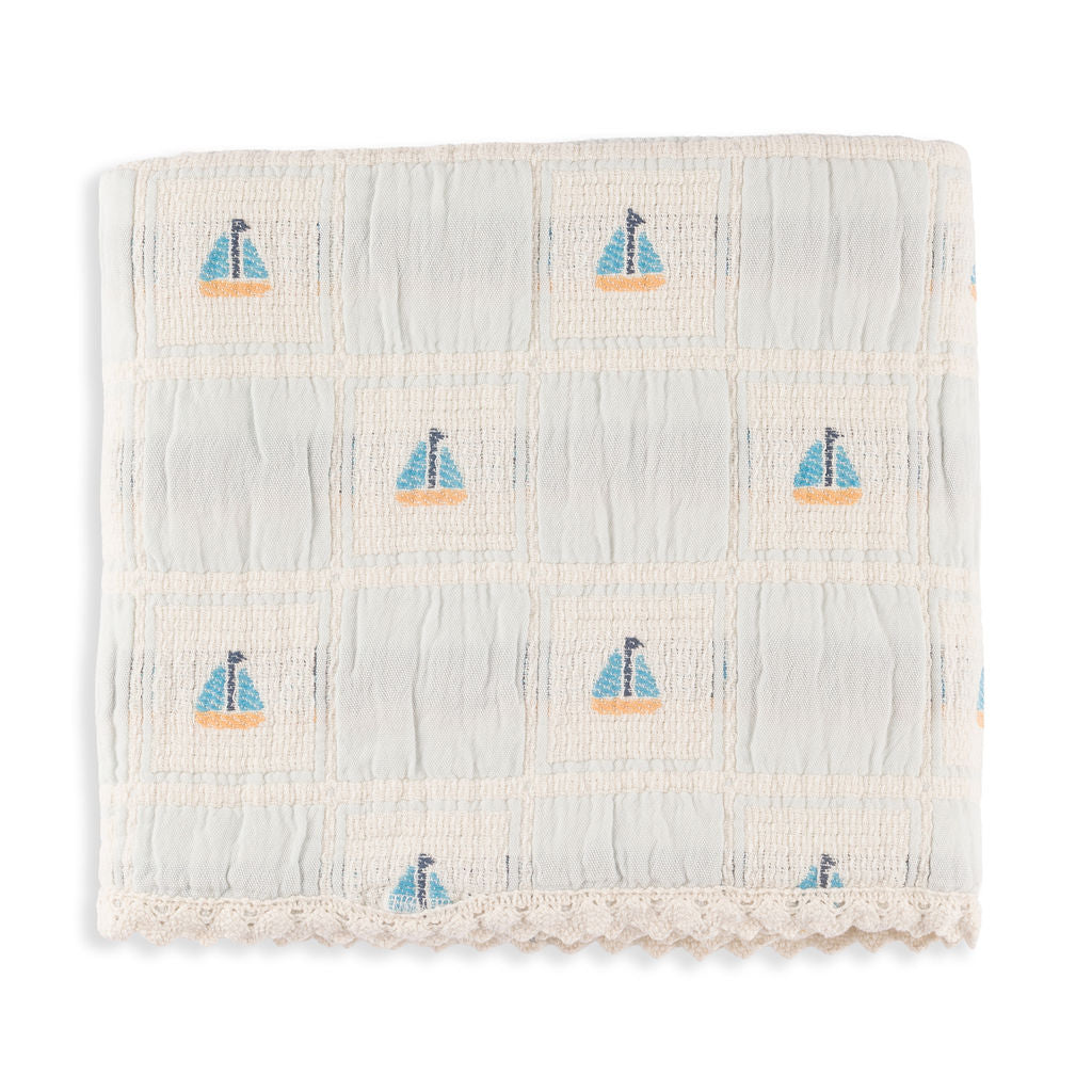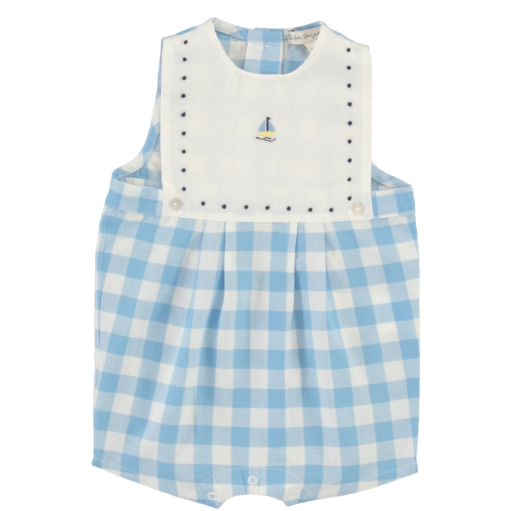 White & Blue Nursery Bear Quilted Smocked Footsie