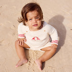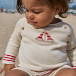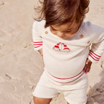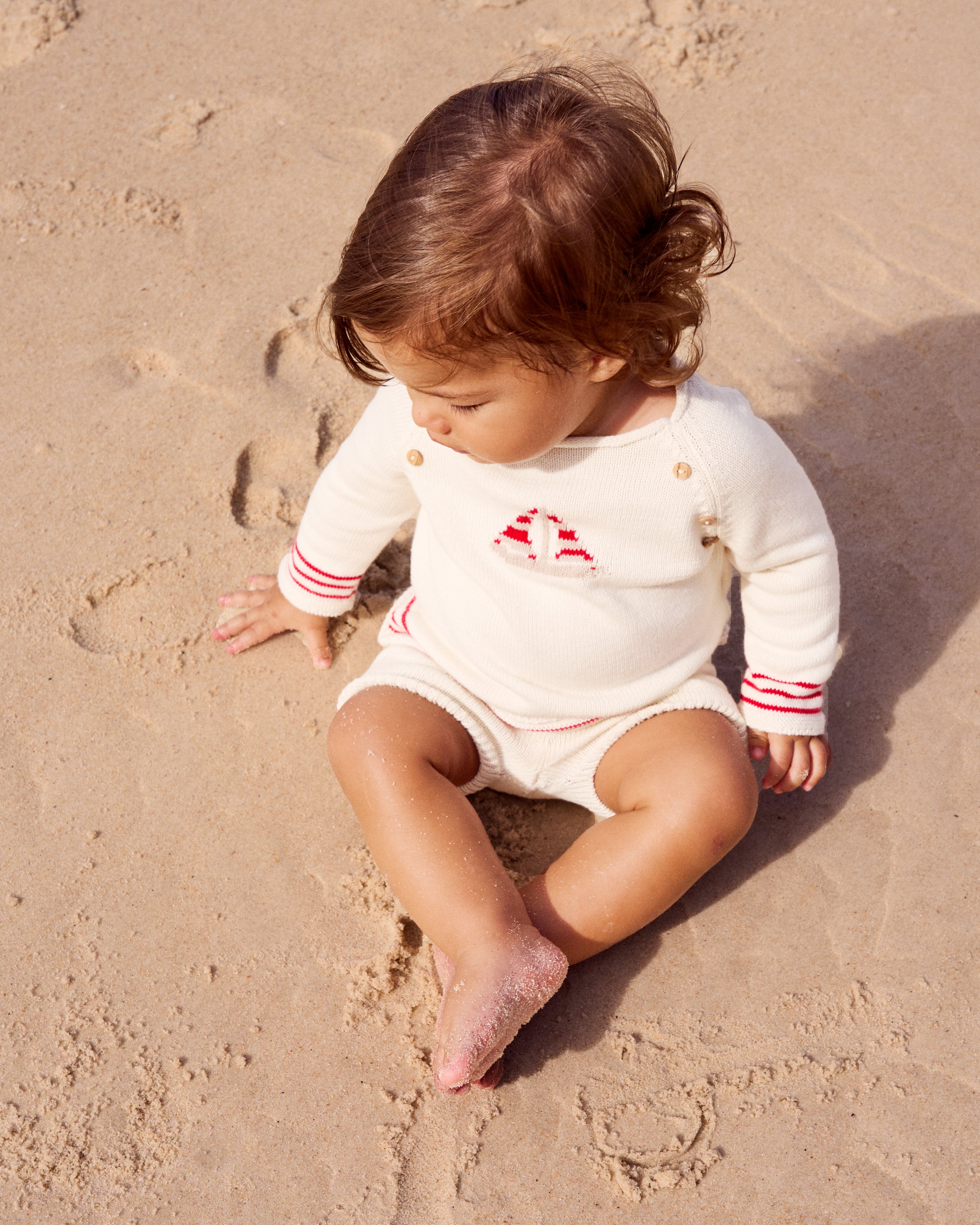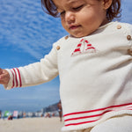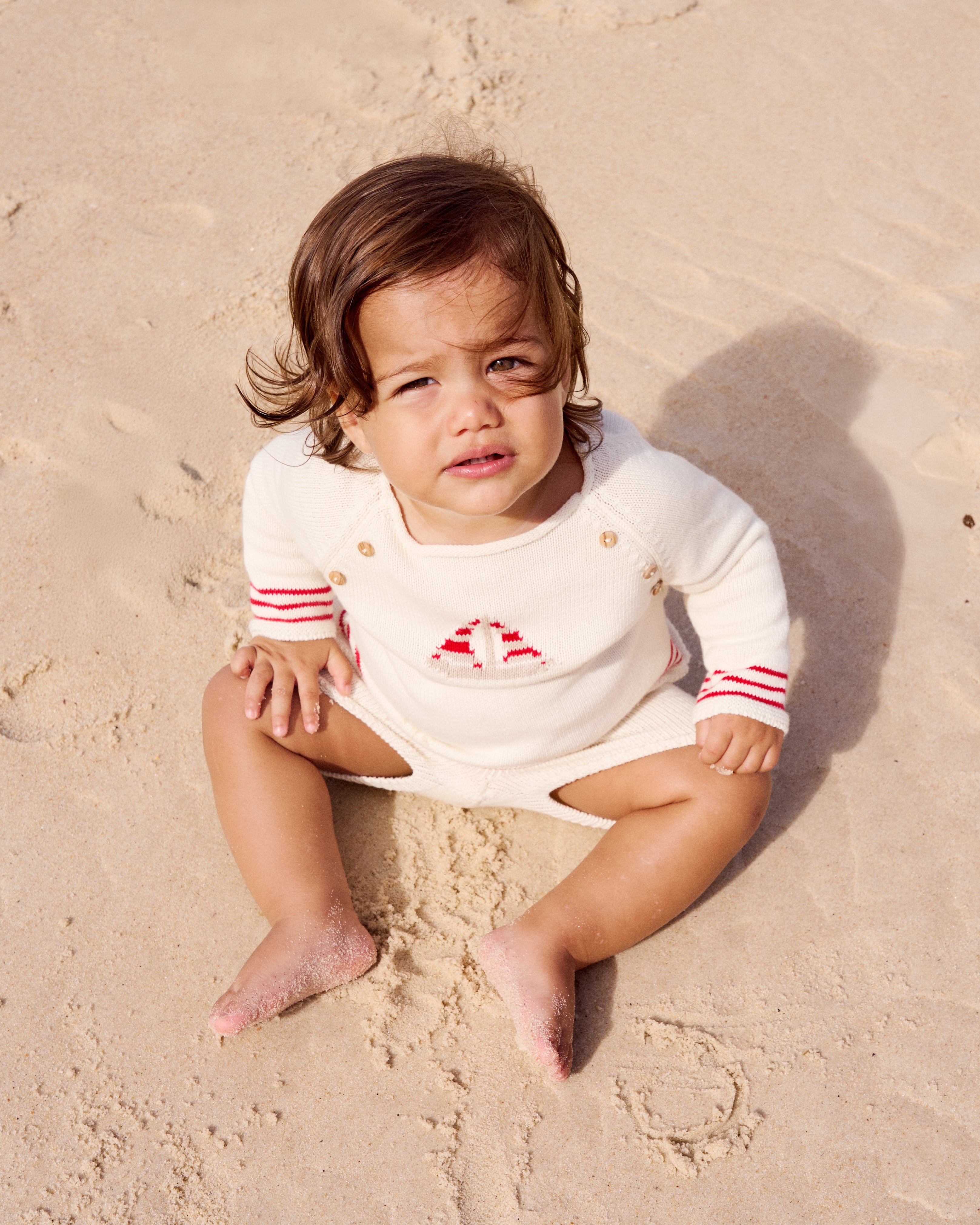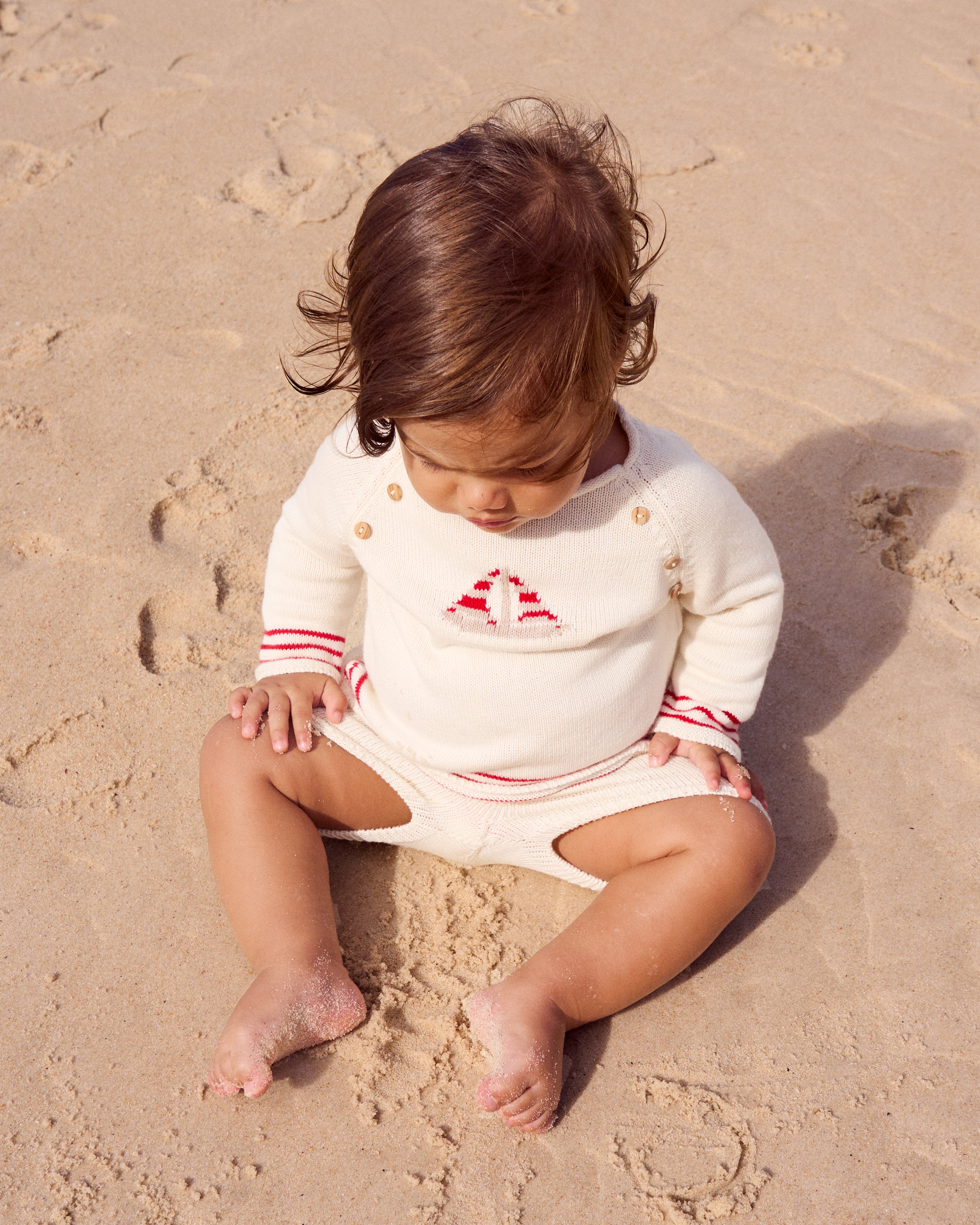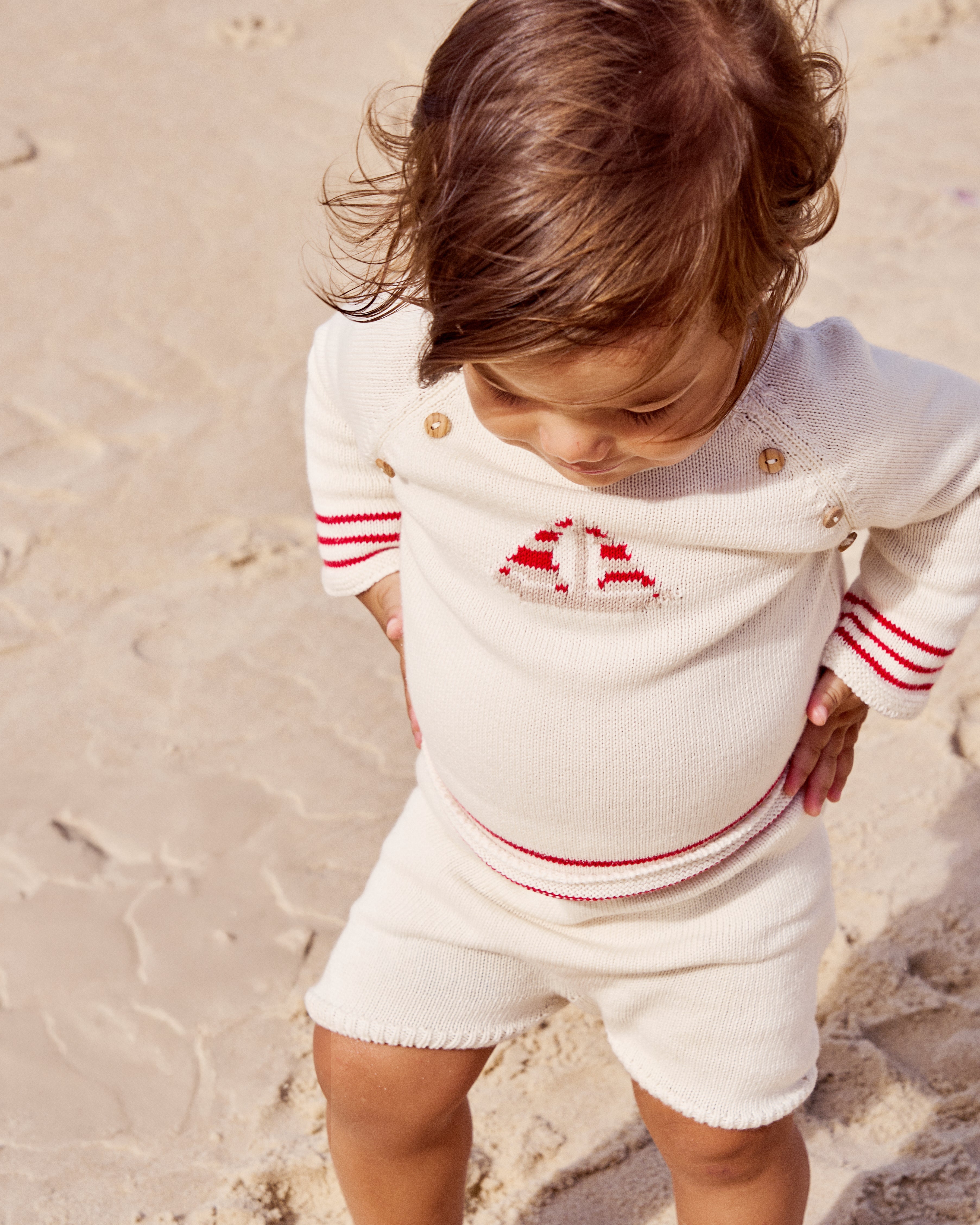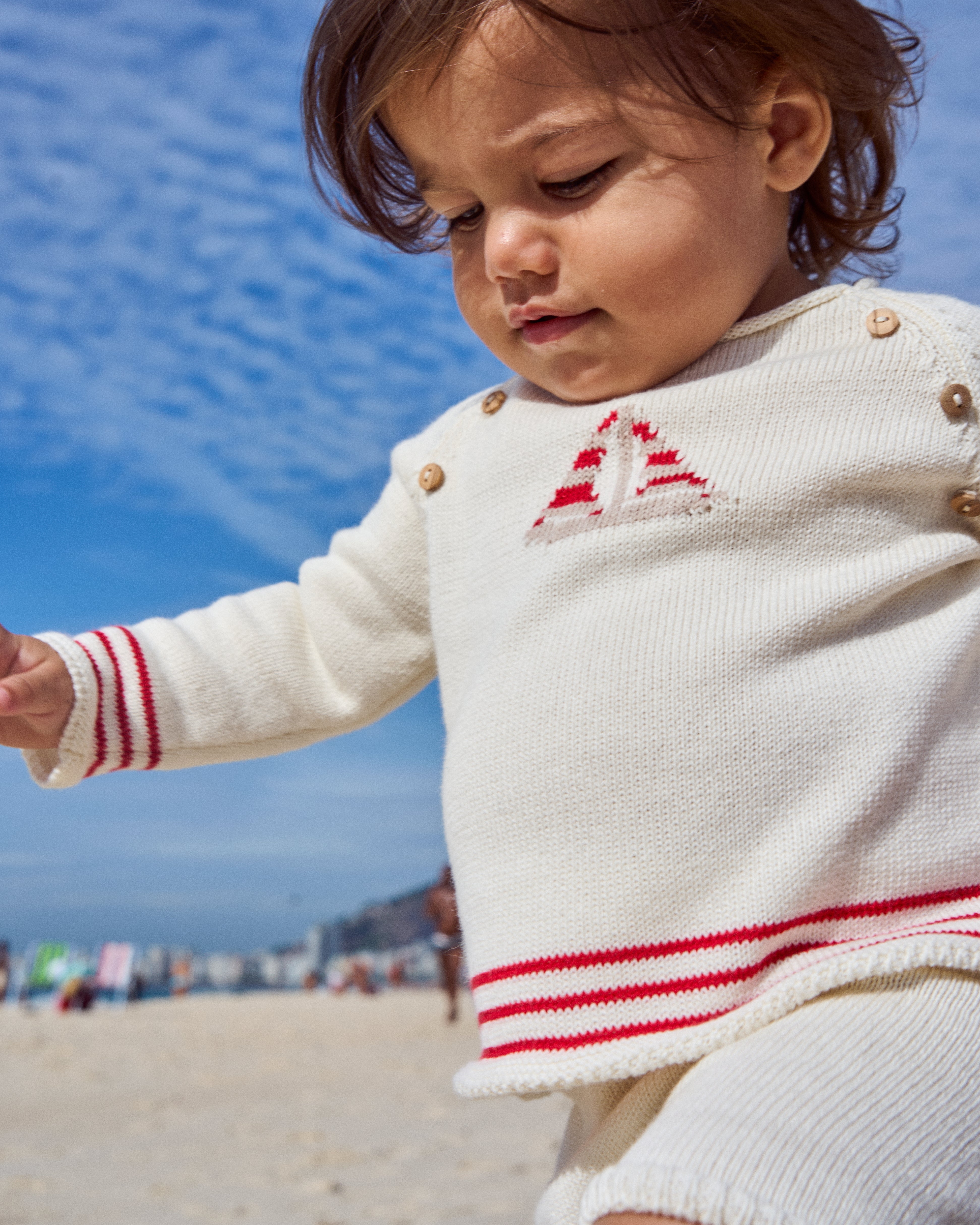 True to size! The Ancla Cotton Baby Knitted Set features a cozy, breathable cotton knit adorned with vibrant red stripes, creating a cheerful and timeless look. The matching top and bottoms provide both comfort and ease of movement, making it perfect for everyday wear or special occasions.