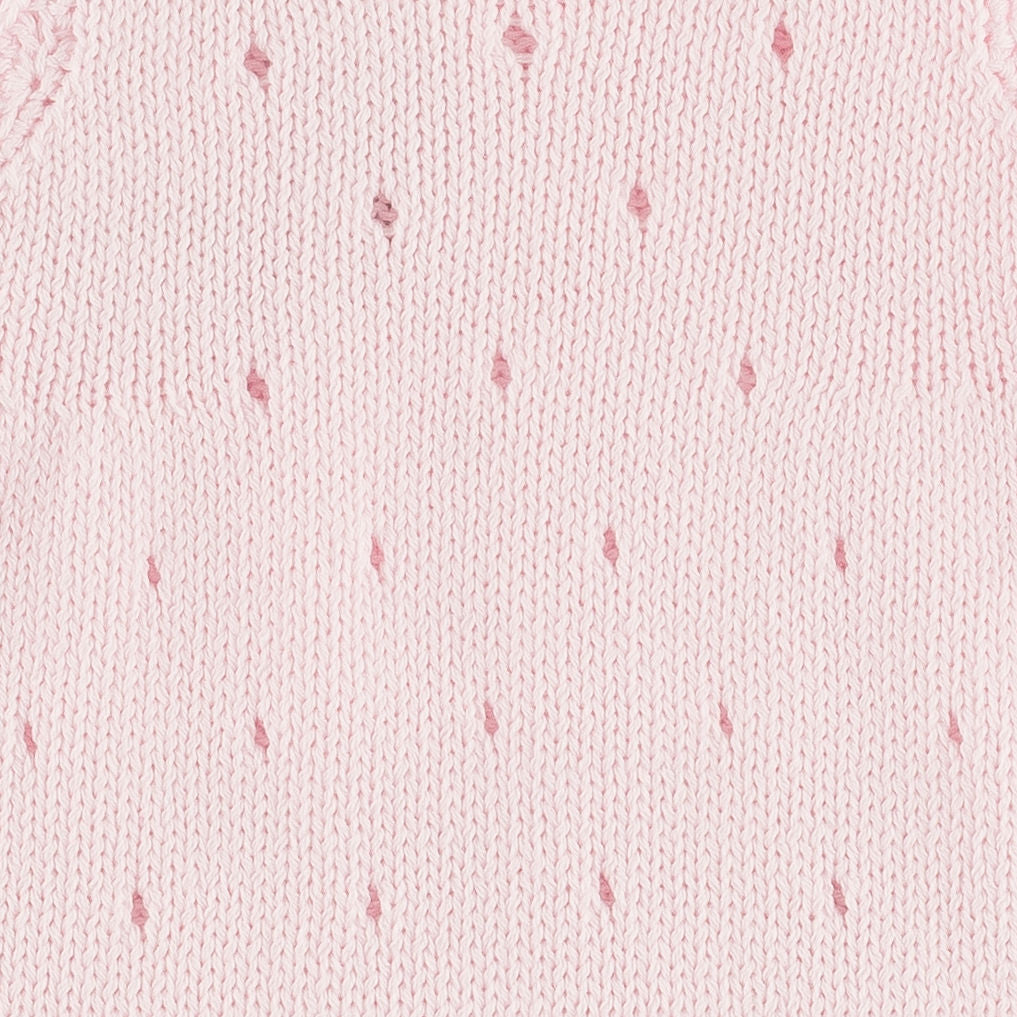 100% cotton, soft no-itch cotton, true to size. For a newborn, get the size 1M! The Anna Sara Romper in Pink combines a soft, comfortable knit with a charming, timeless silhouette. Its delicate pink shade adds a sweet, playful touch, perfect for everyday adventures and special moments alike.