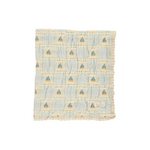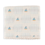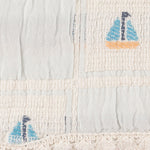 The Sailor Blanket in Boat Patchwork features charming nautical prints in soothing shades of blue and white. Thoughtfully crafted for comfort, it brings a playful seaside spirit to nap times and cozy cuddles. Composition: 100% Organic Cotton.