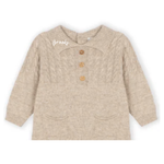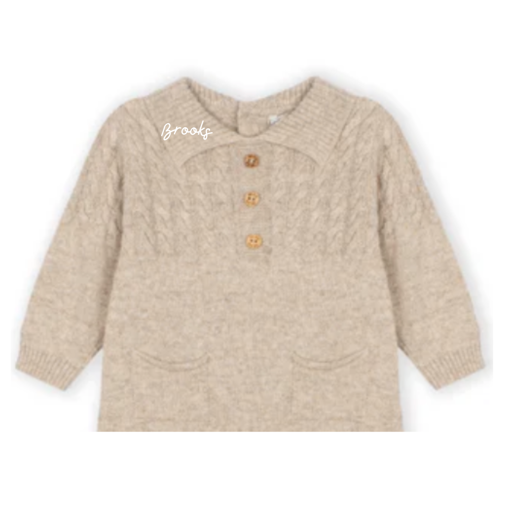 This Oatmeal Knit Set includes a cozy long-sleeve sweater with a cable-knit detail and wooden buttons, paired with matching soft pants. Perfect for everyday wear or special outings, it offers both comfort and timeless style.