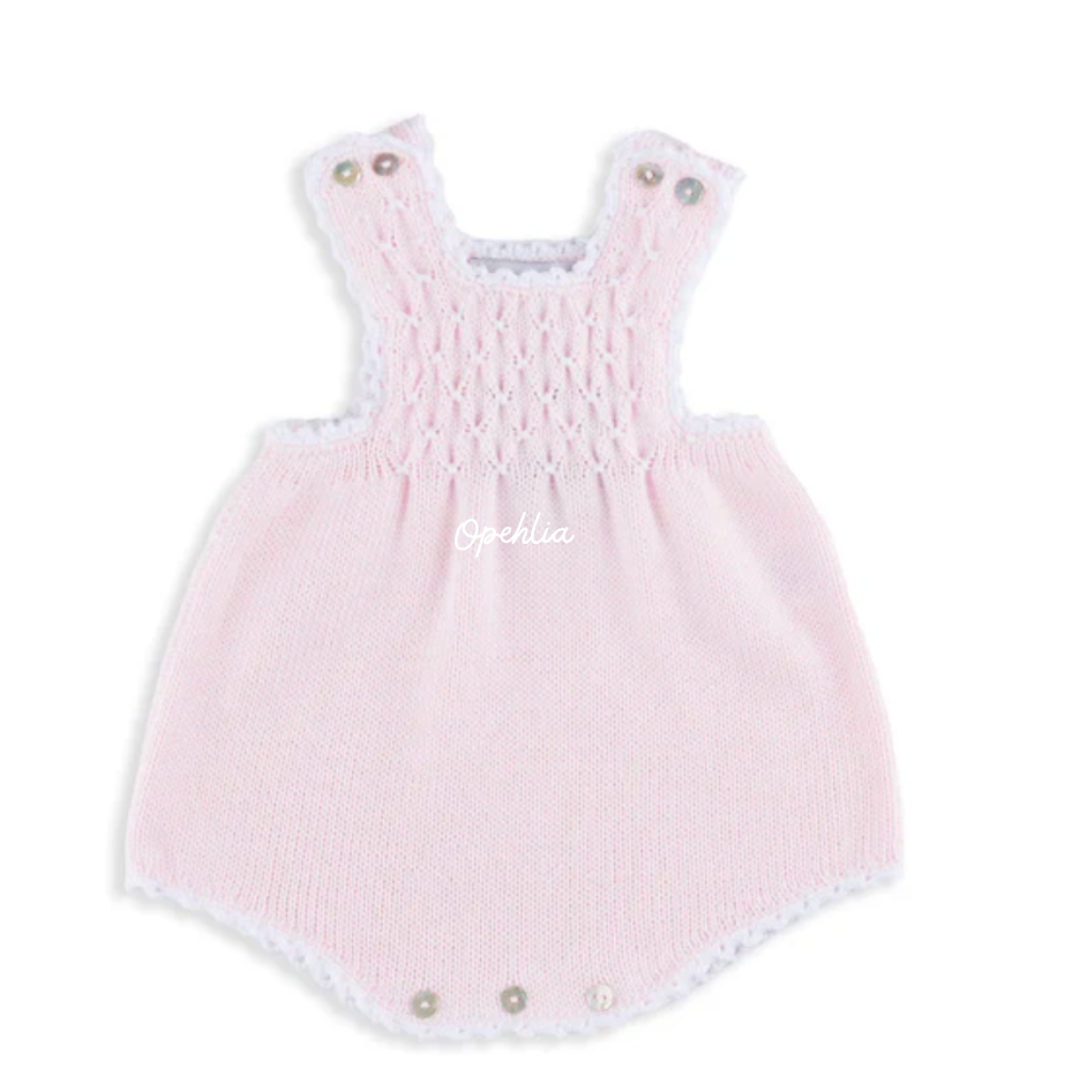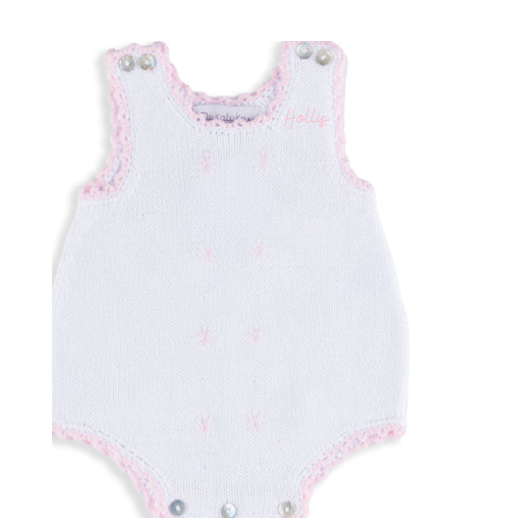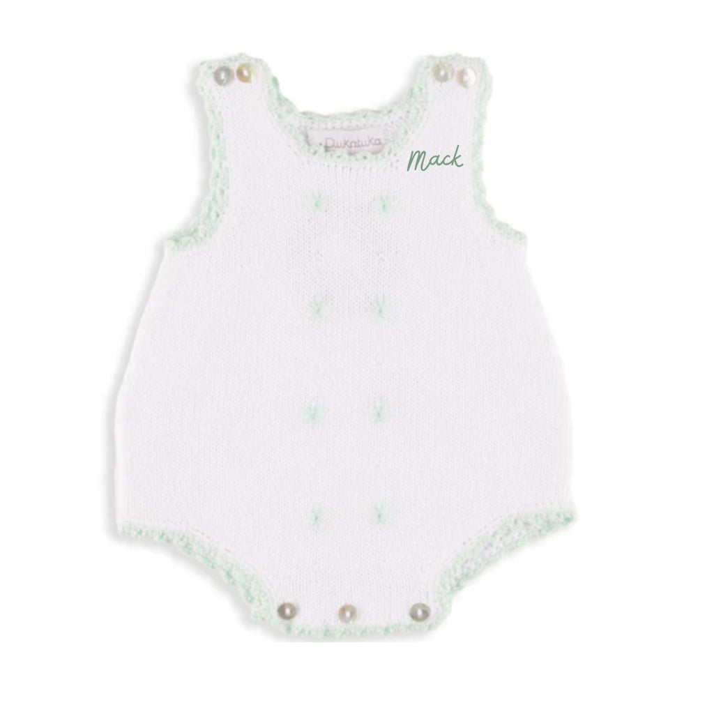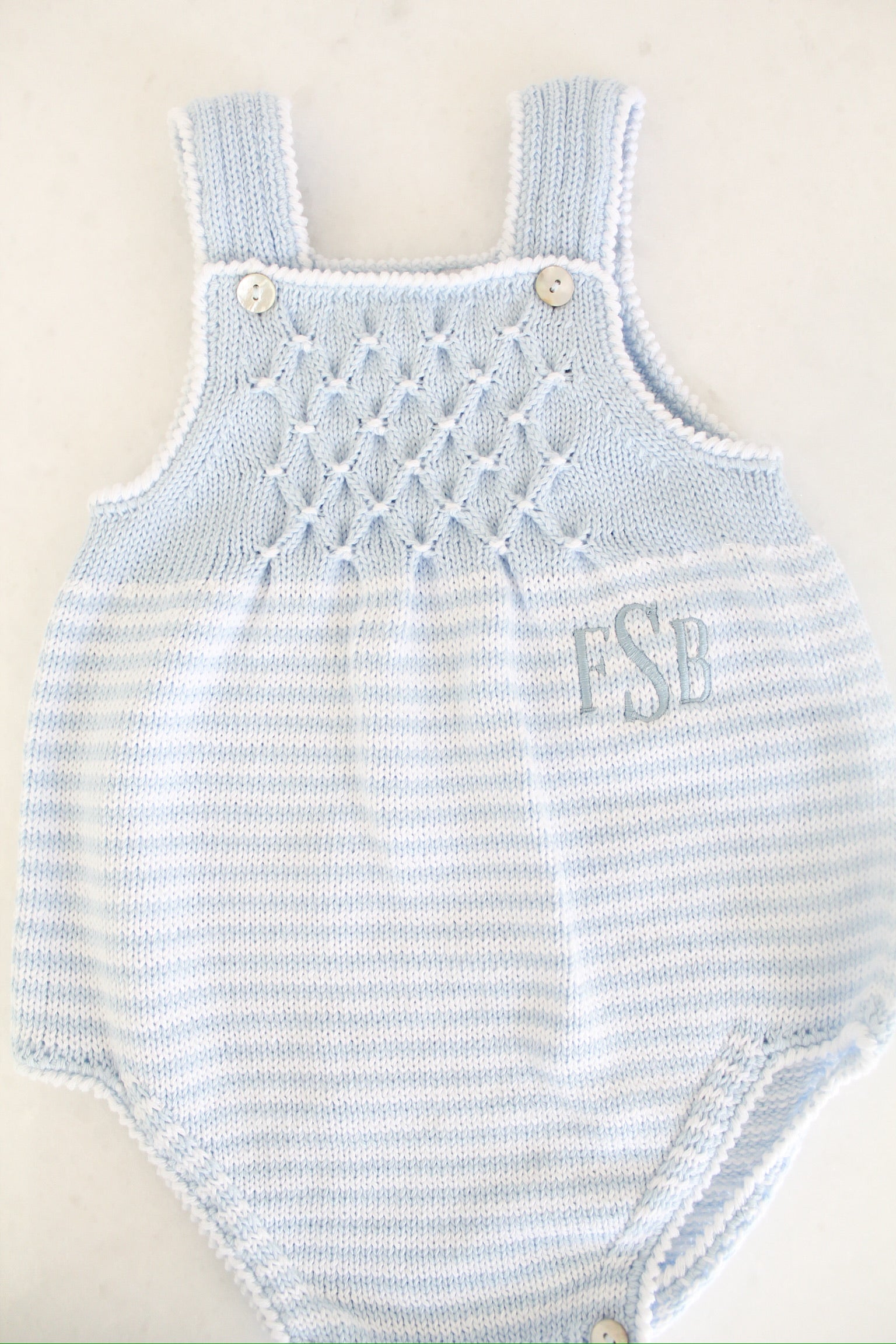 Henry Grey Long-Sleeve Knit Romper with White Dot Embroidery