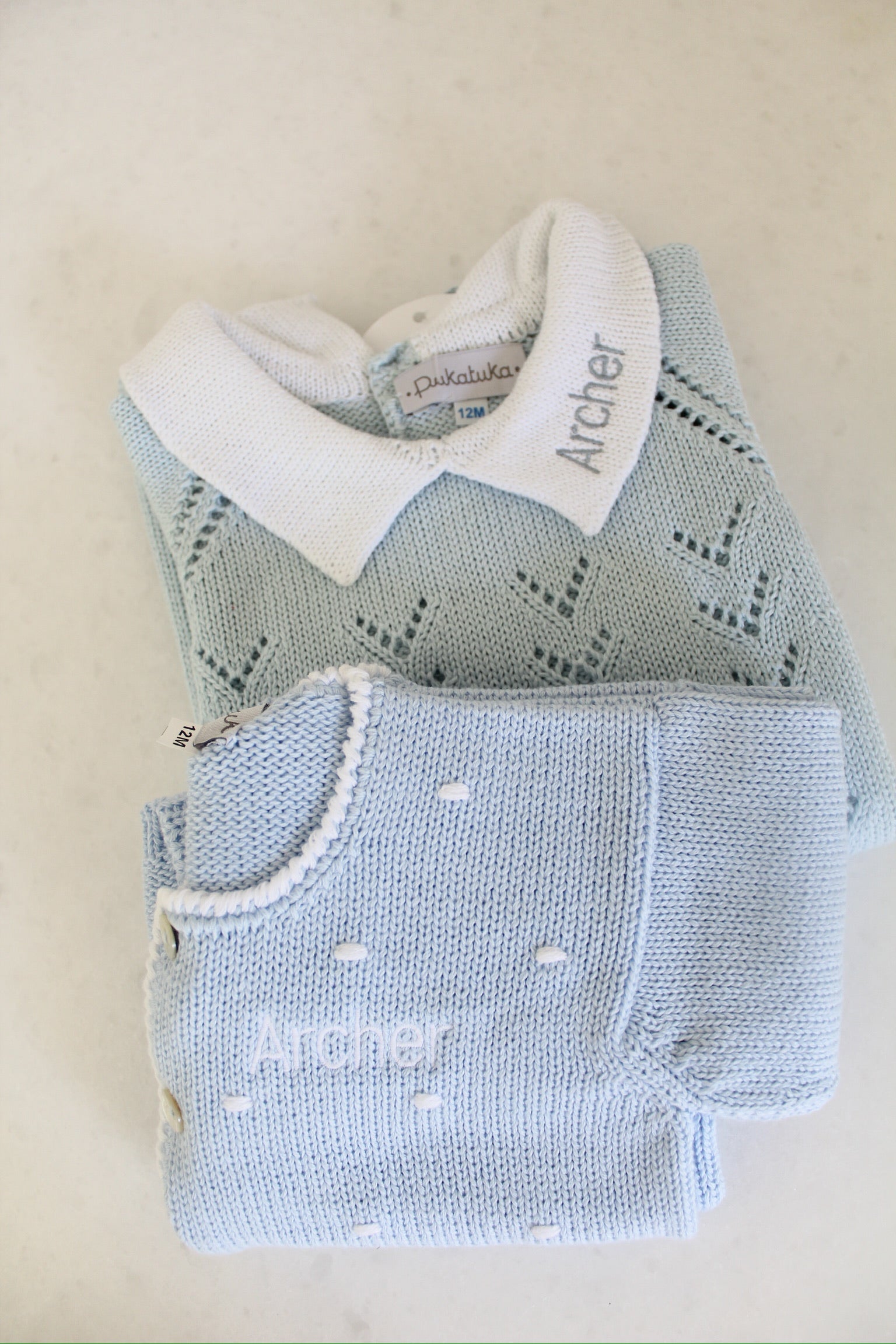 Riffe Light Blue Knitted Cardigan with Cream Detailing