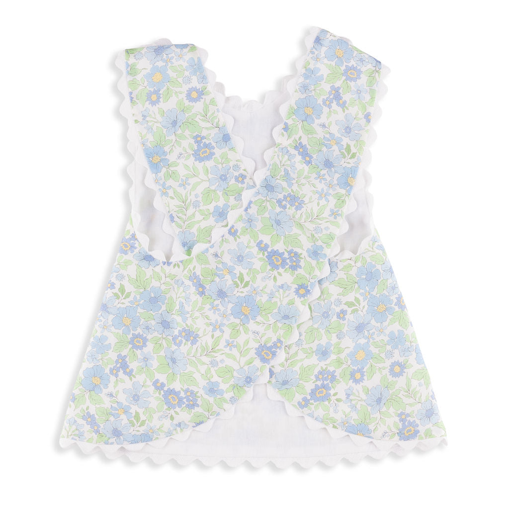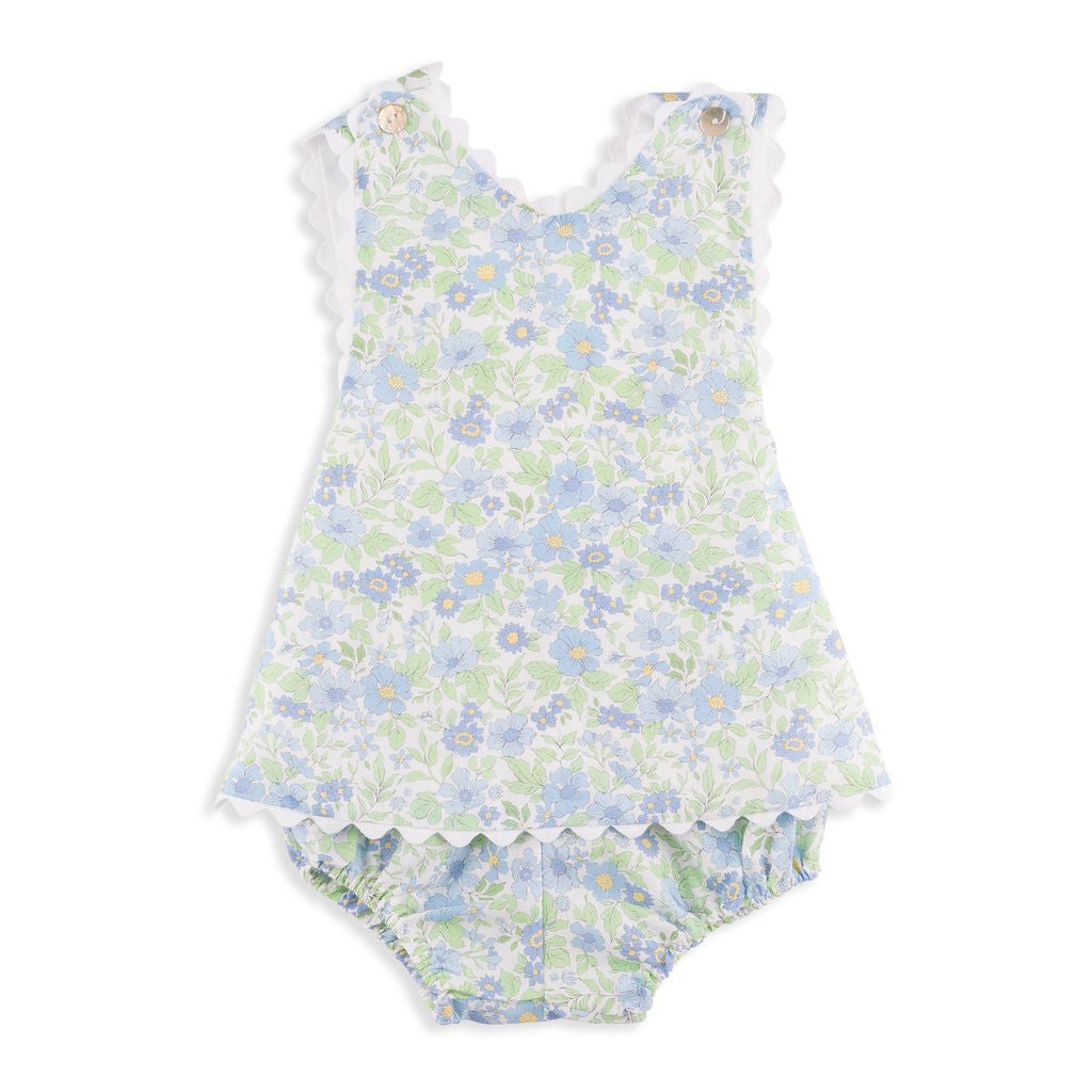 Mimi Ric Rac Dress & Bloomer Set in Watercolor Blue + Green Floral