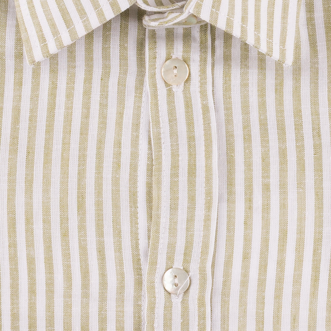 Bobby Boy Short Sleeve Linen Shirt in Light Green Stripe