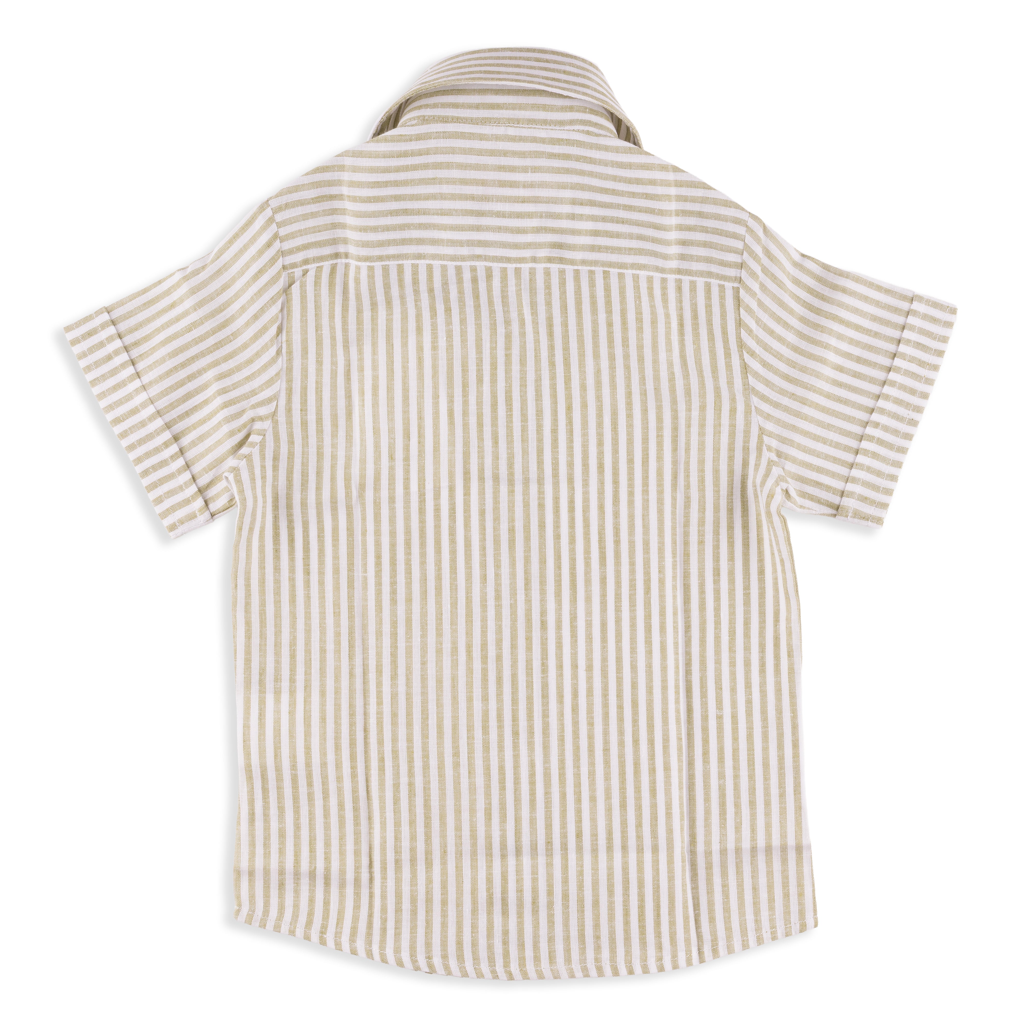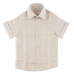 Bobby Boy Short Sleeve Linen Shirt in Light Green Stripe