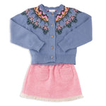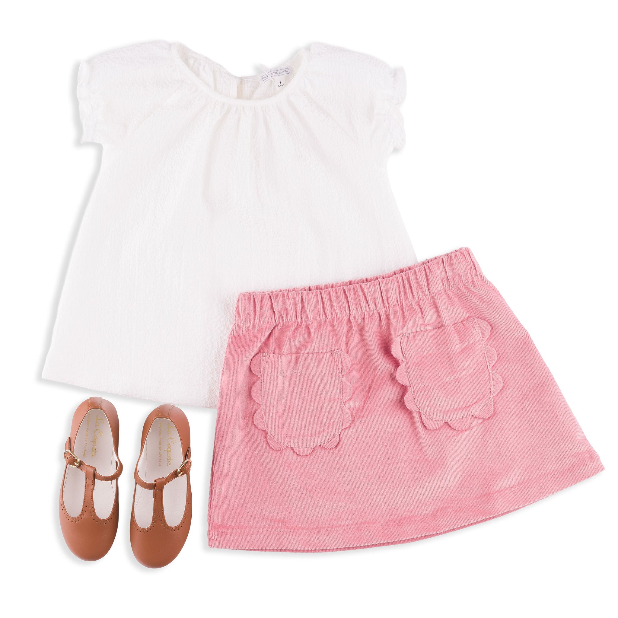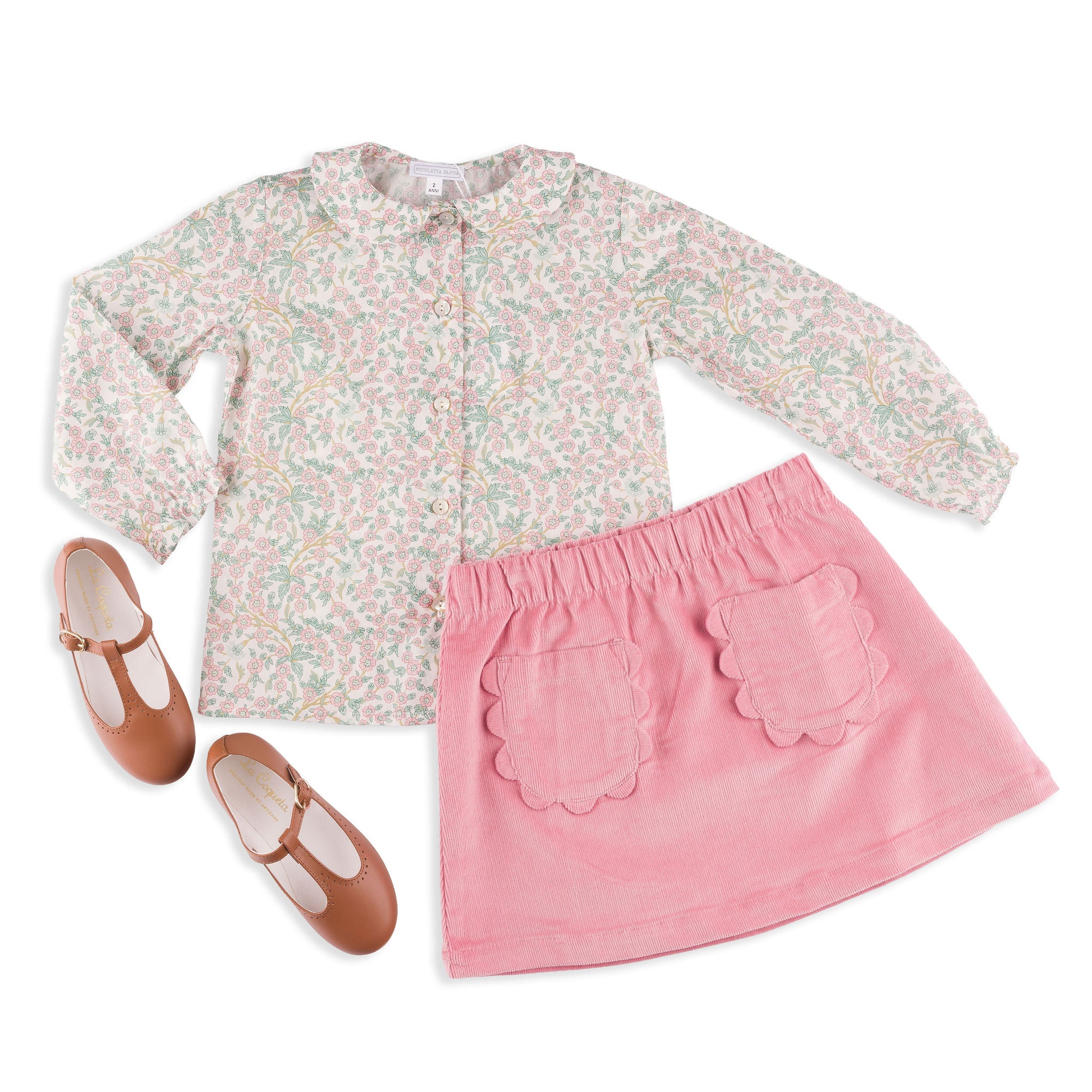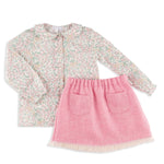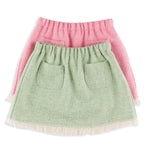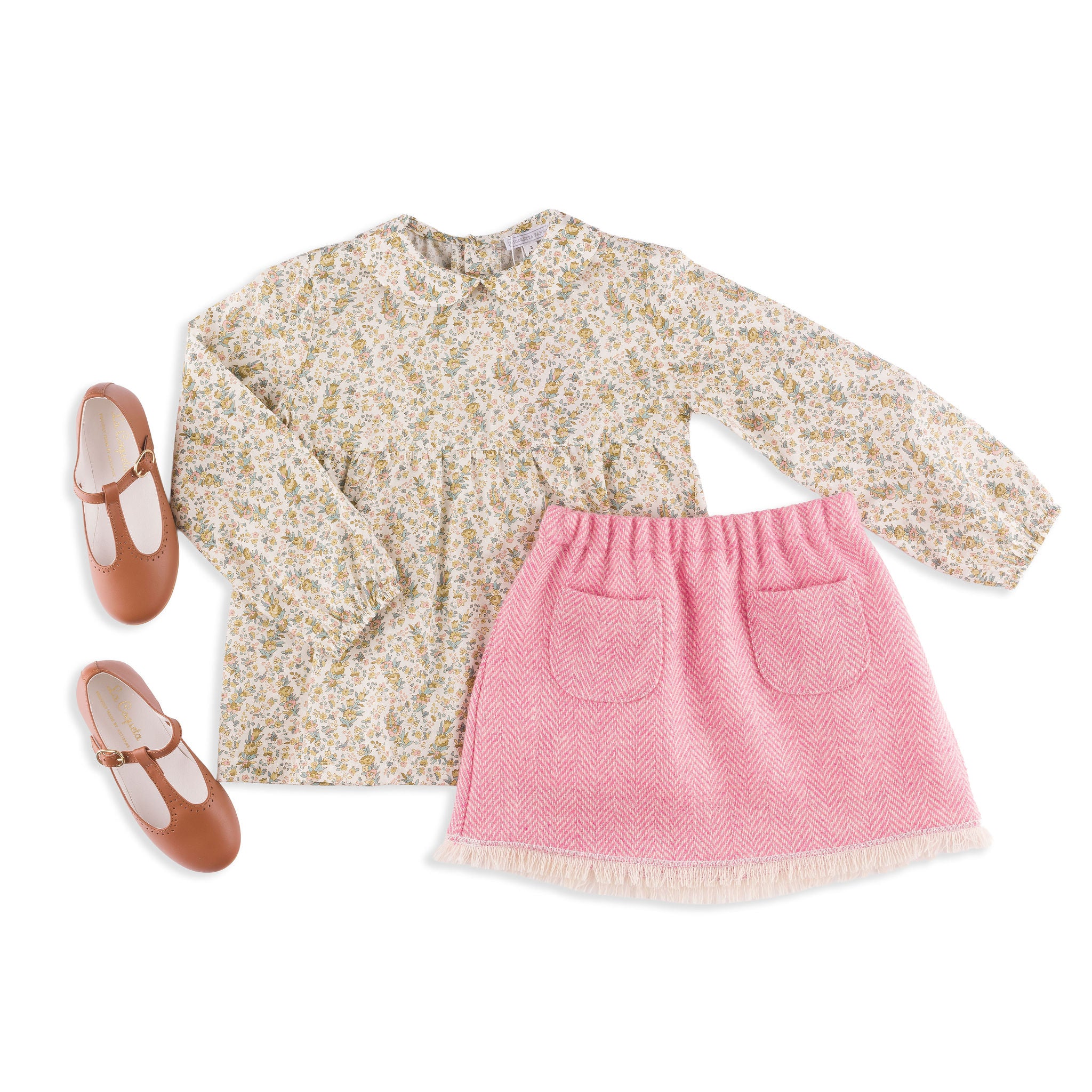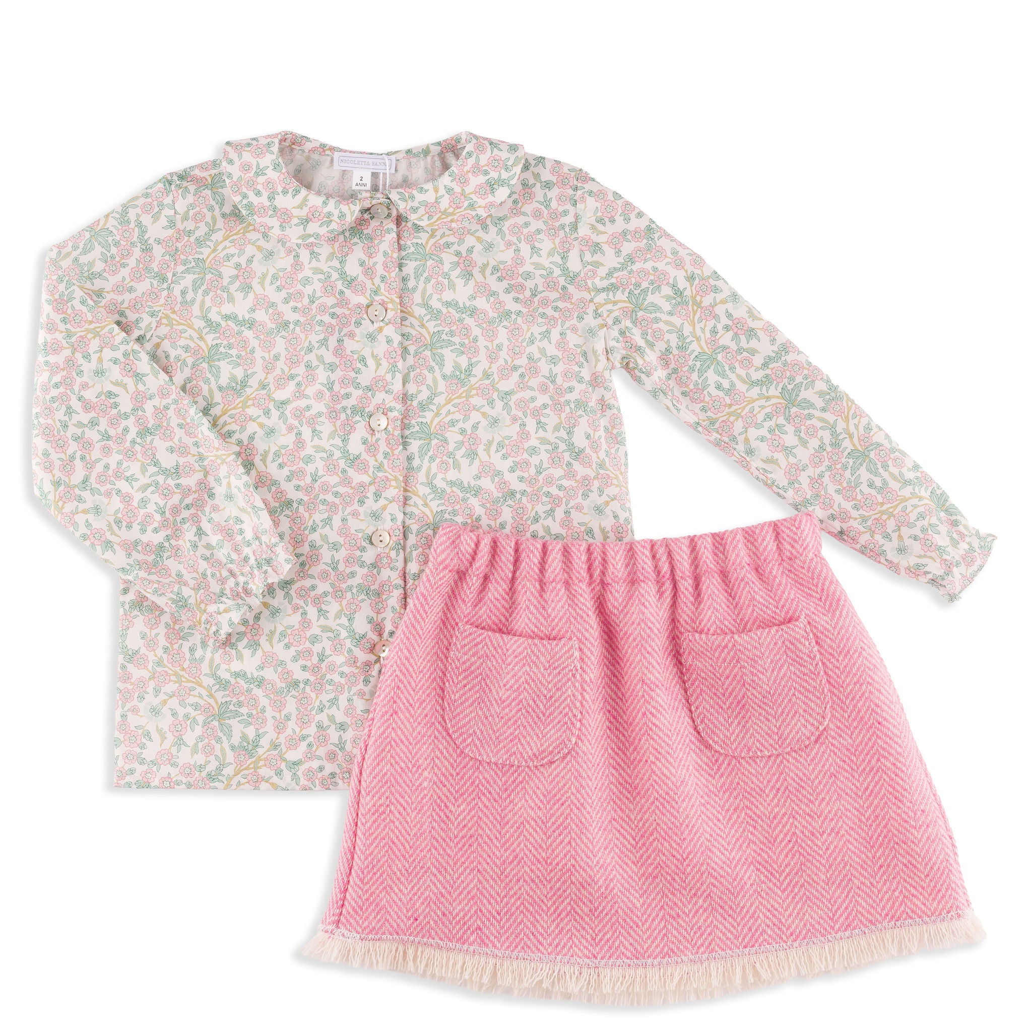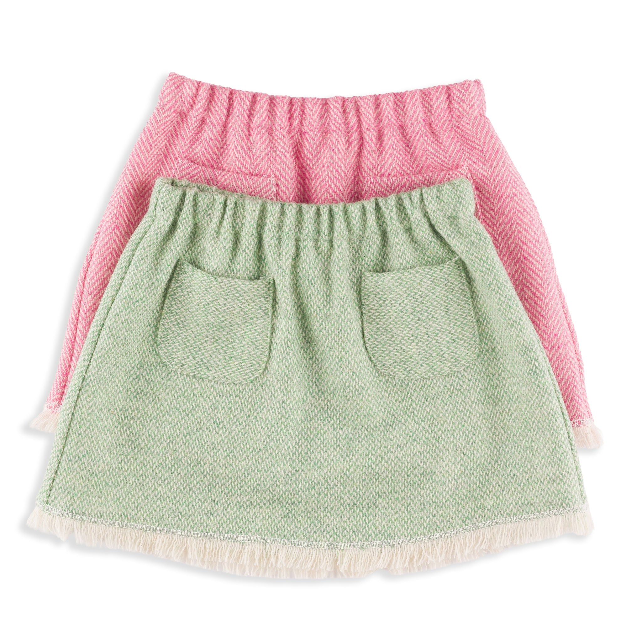 The Alfia Skirt features a classic A-line shape in soft pink tweed, offering a refined yet playful look. Its tailored fit and textured fabric make it a versatile piece for both everyday elegance and special occasions.