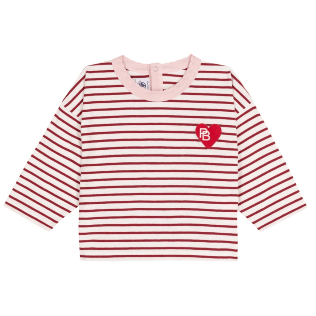 This long-sleeve striped tee is sweetly detailed with a heart-shaped badge, adding a touch of charm to a classic look. Made from soft, breathable fabric, it’s perfect for keeping your baby comfy and stylish throughout the day.