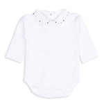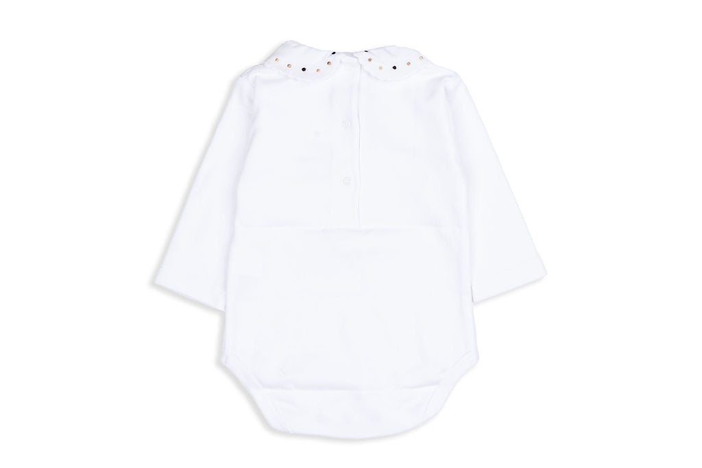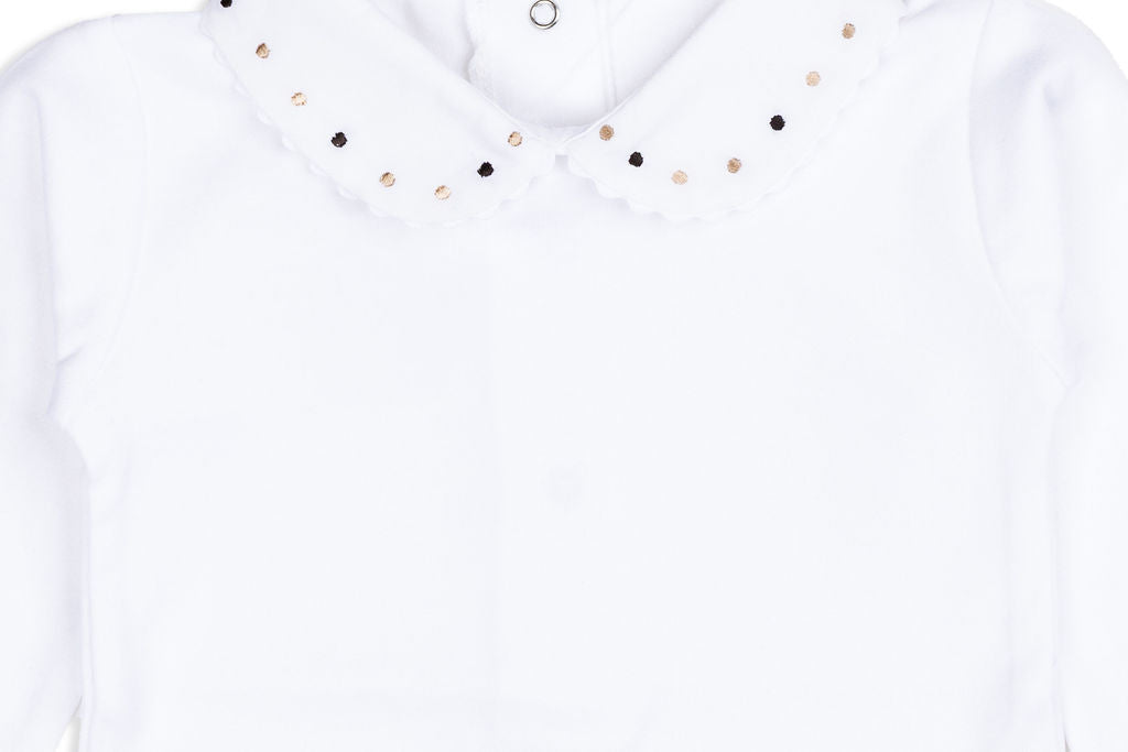 Sterling Swiss Bodysuit with Brown Dot Embroidered Scalloped Collar