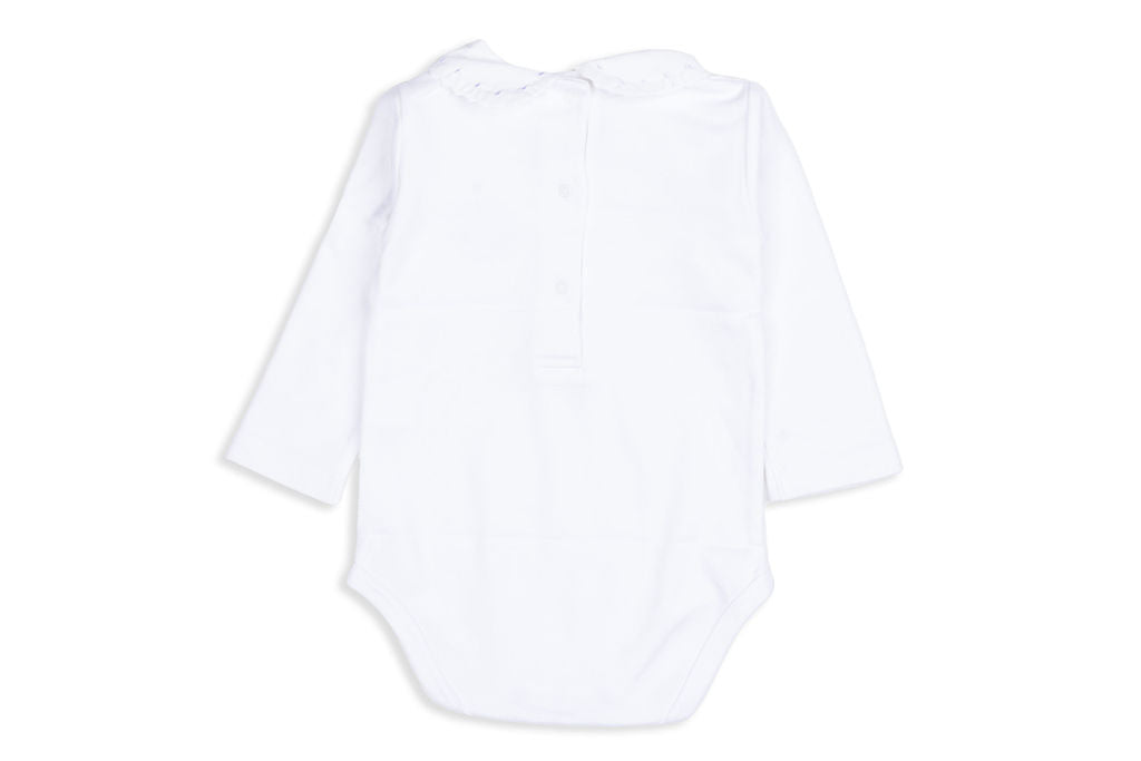 Sterling Swiss Bodysuit with White Dot Embroidered Scalloped Collar