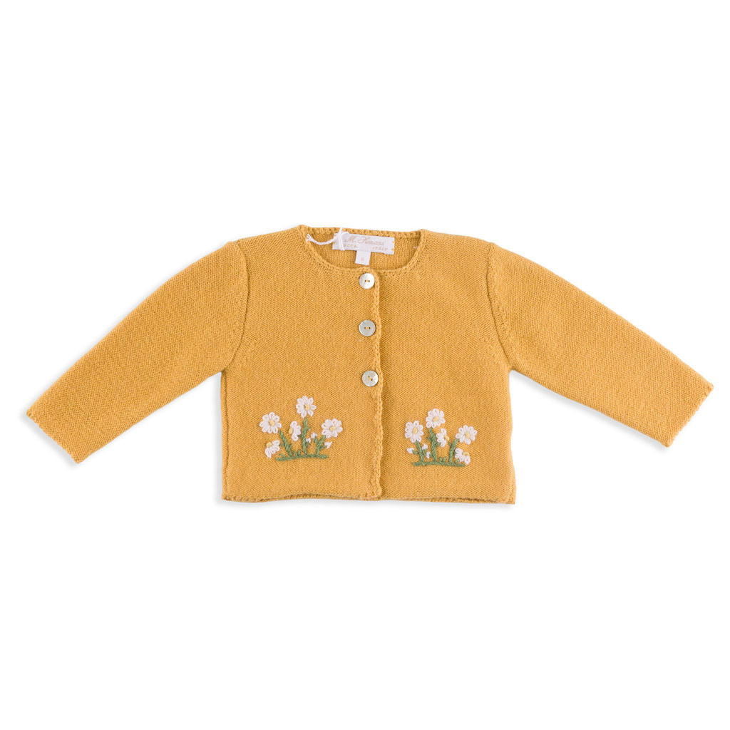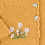 The Bridget runs pretty true size, bordering on generous. There is no need to size up. The Bridget Mustard Daisy Embroidered Cardigan showcases a warm mustard tone beautifully accented with delicate white daisy embroidery for a charming, vintage-inspired touch. Made from soft knit fabric, it's an ideal layering piece to brighten up cooler days with cozy style.