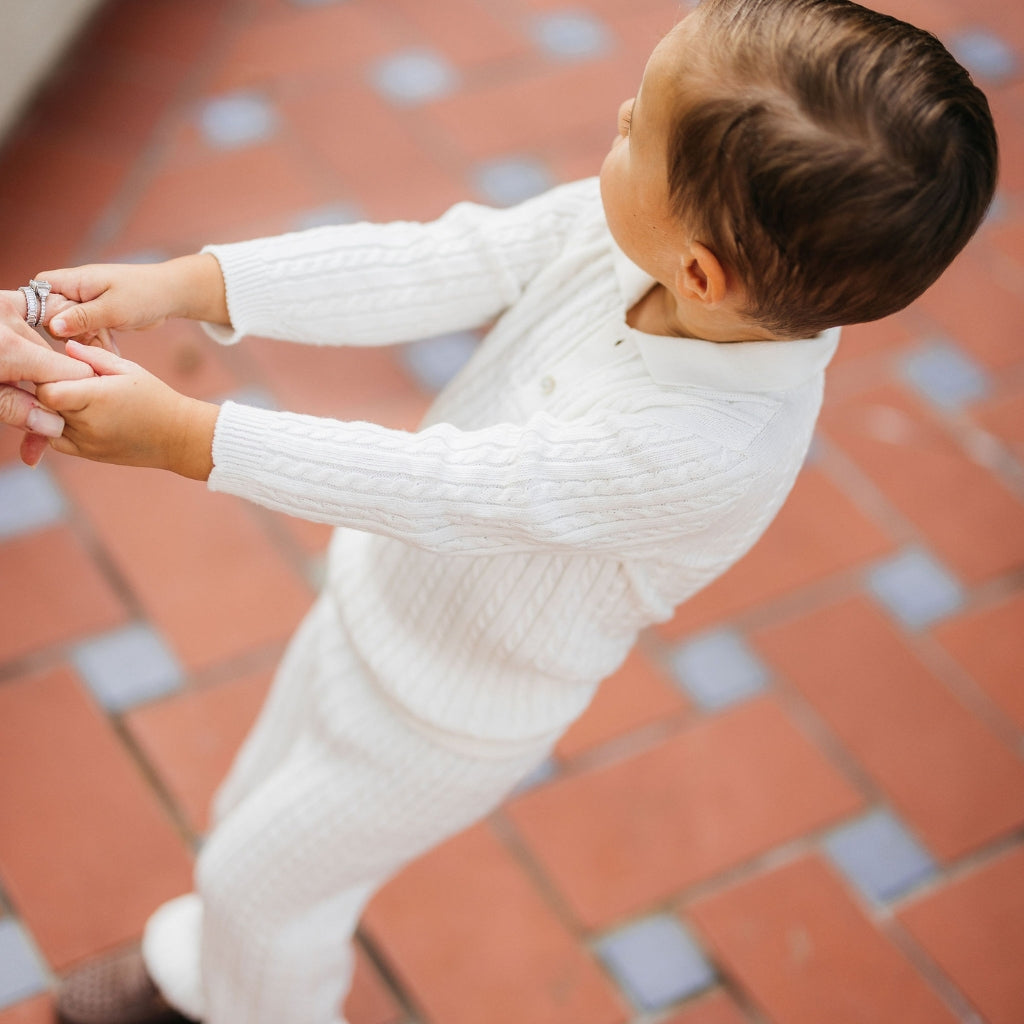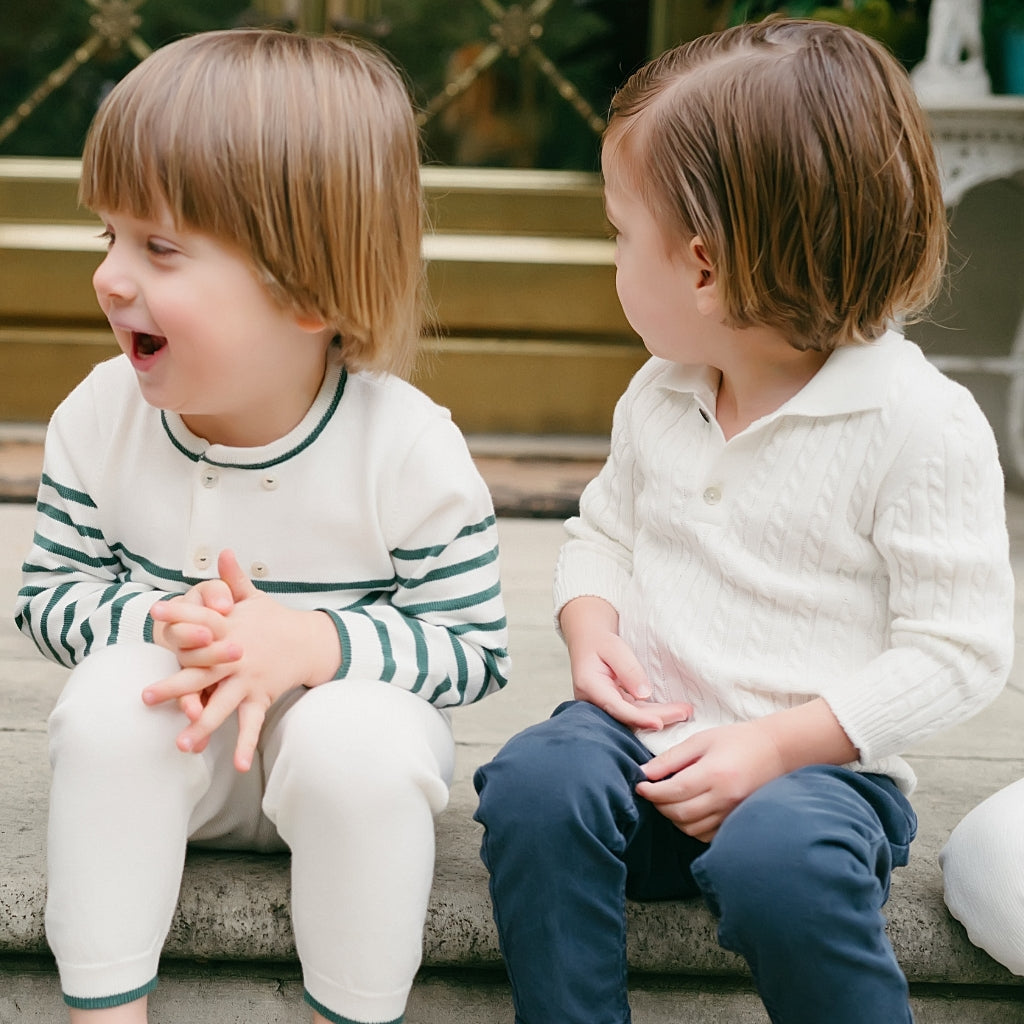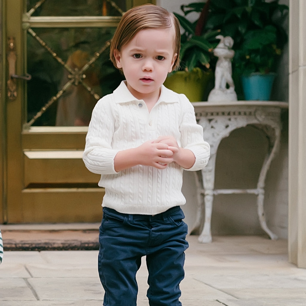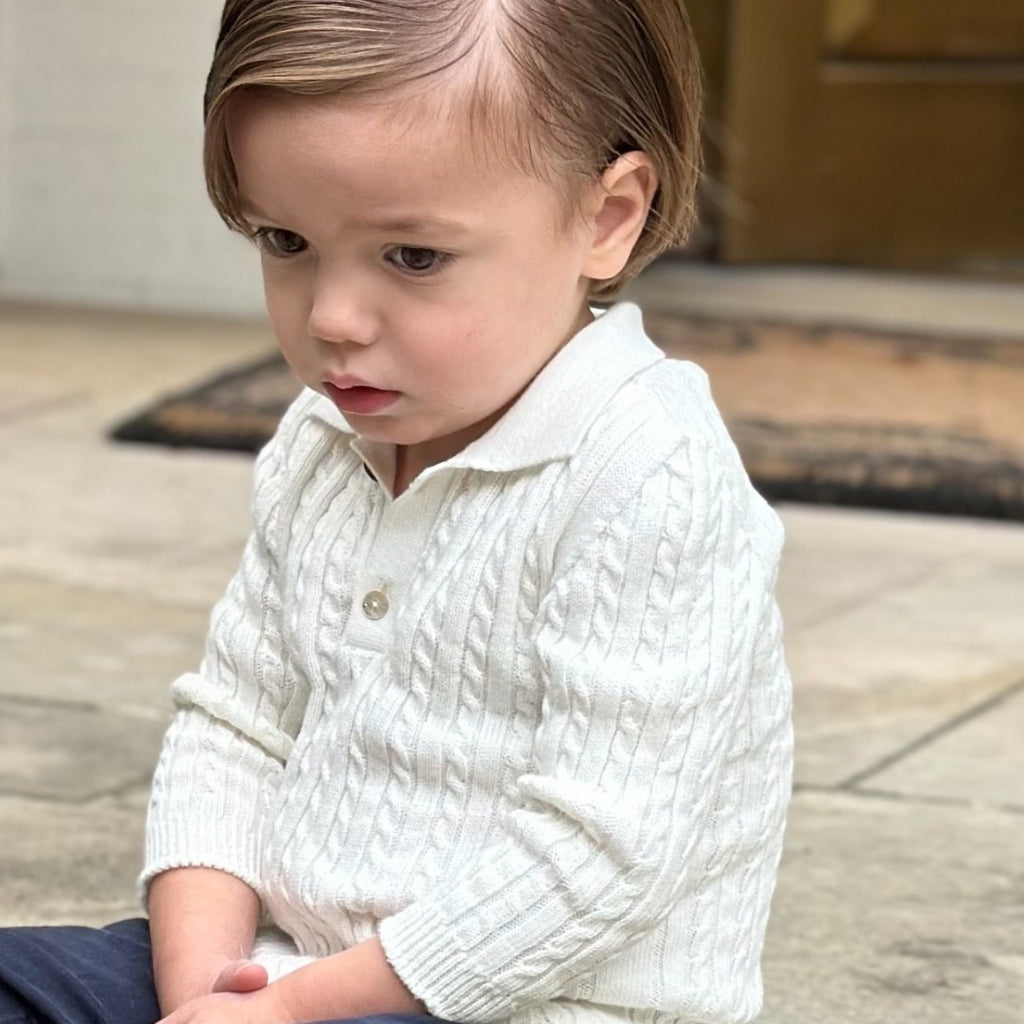 Meet the Como Cable Sweater – a midweight, breathable cable-knit polo sweater crafted from 100% cotton for year-round wear. Designed with timelessness and versatility in mind, the Como is perfect for passing down from child to child, regardless of gender. Its charm lies in its blend of Italian craftsmanship, modern design, and practicality, making it a true staple in any wardrobe.