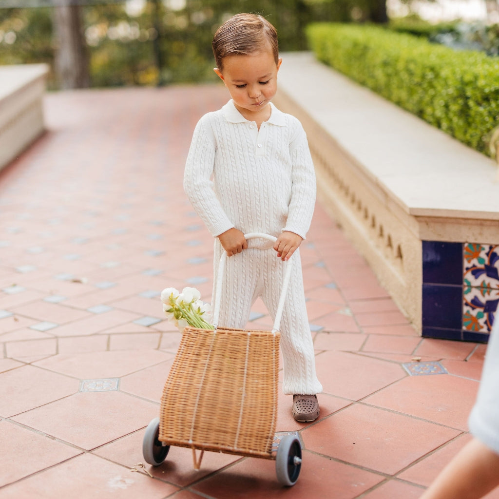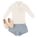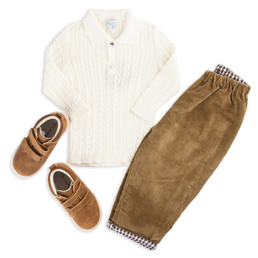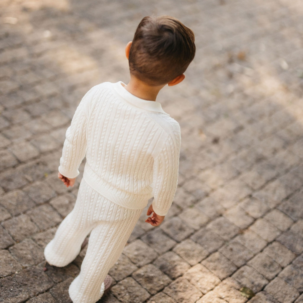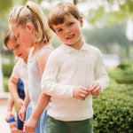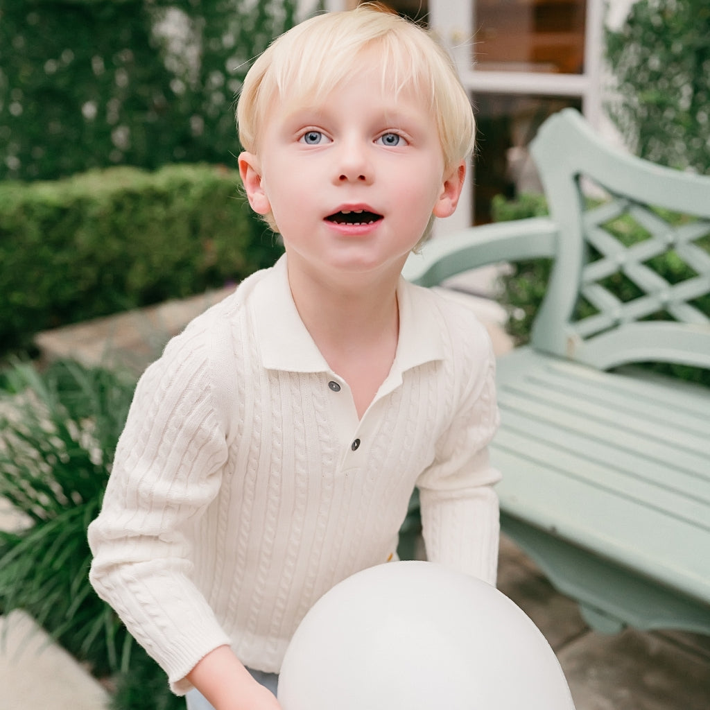 Meet the Como Cable Sweater – a midweight, breathable cable-knit polo sweater crafted from 100% cotton for year-round wear. Designed with timelessness and versatility in mind, the Como is perfect for passing down from child to child, regardless of gender. Its charm lies in its blend of Italian craftsmanship, modern design, and practicality, making it a true staple in any wardrobe.