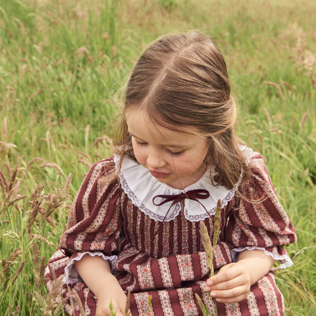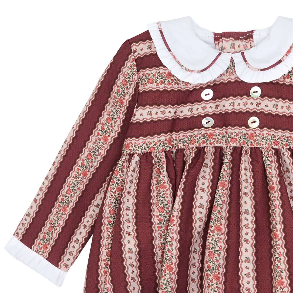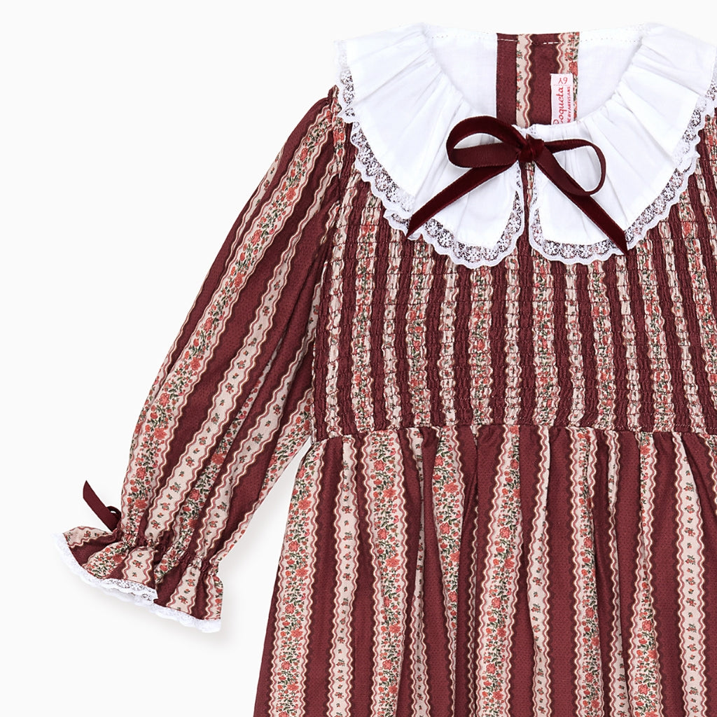 Festa Hand Smocked Dress in Burgundy Floral Stripe