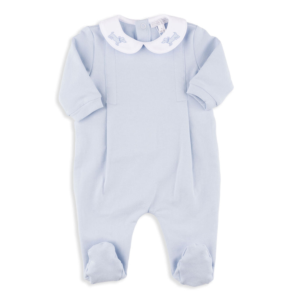 Frank Light Blue Fleece Lined Romper with Dog Embroidery