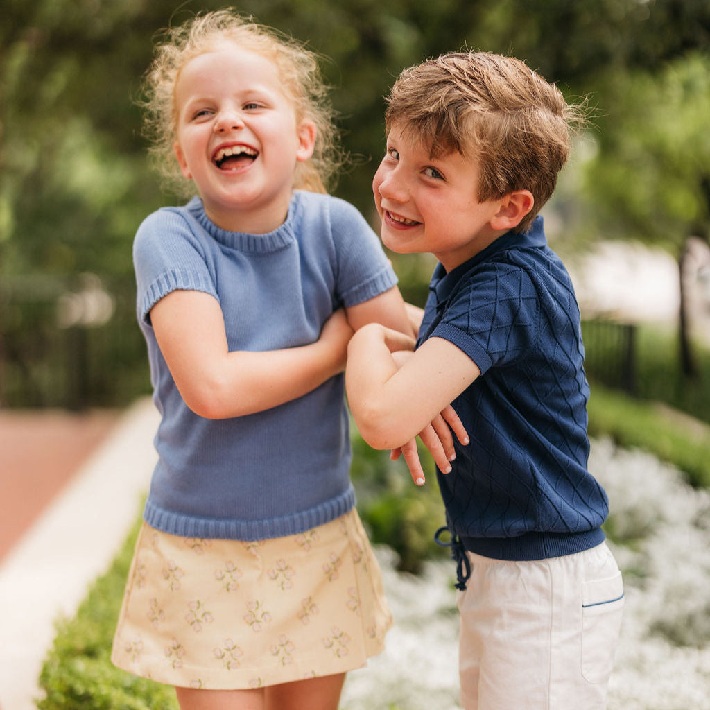 Fit & Design Details: The Chianti Tee fits true to US sizing. Available in a rich Mediterranean blue that nods to Chianti’s sun-drenched landscapes and terracotta rooftops, this piece is a staple for girls and boys aged 18 months to 8 years. Lightweight yet substantial, it pairs effortlessly with skirts for your little girl, or the Moritz sage green shorts for little boy. Each top is finished with a subtly embroidered BC logo and handmade by skilled artisans—making every piece slightly unique, just like the region that inspired it.