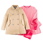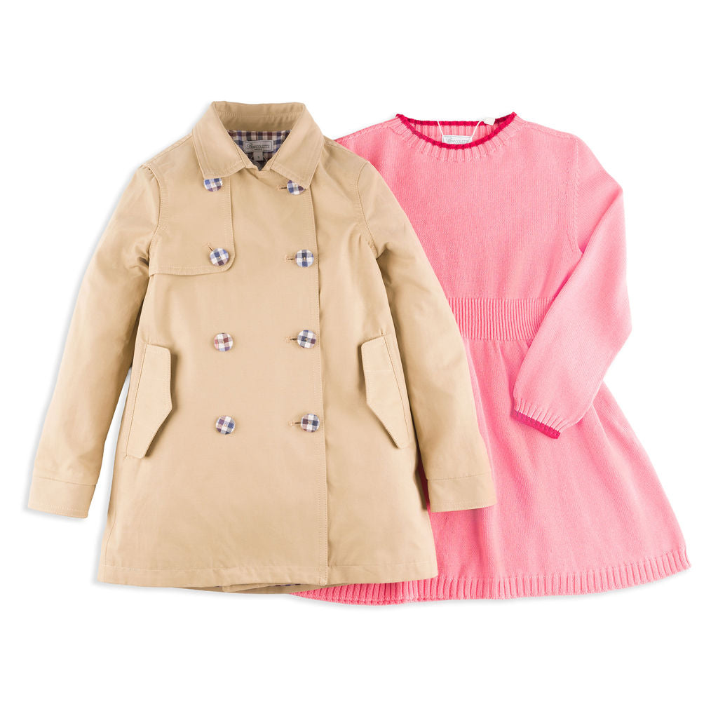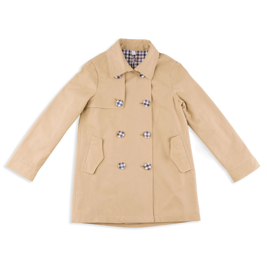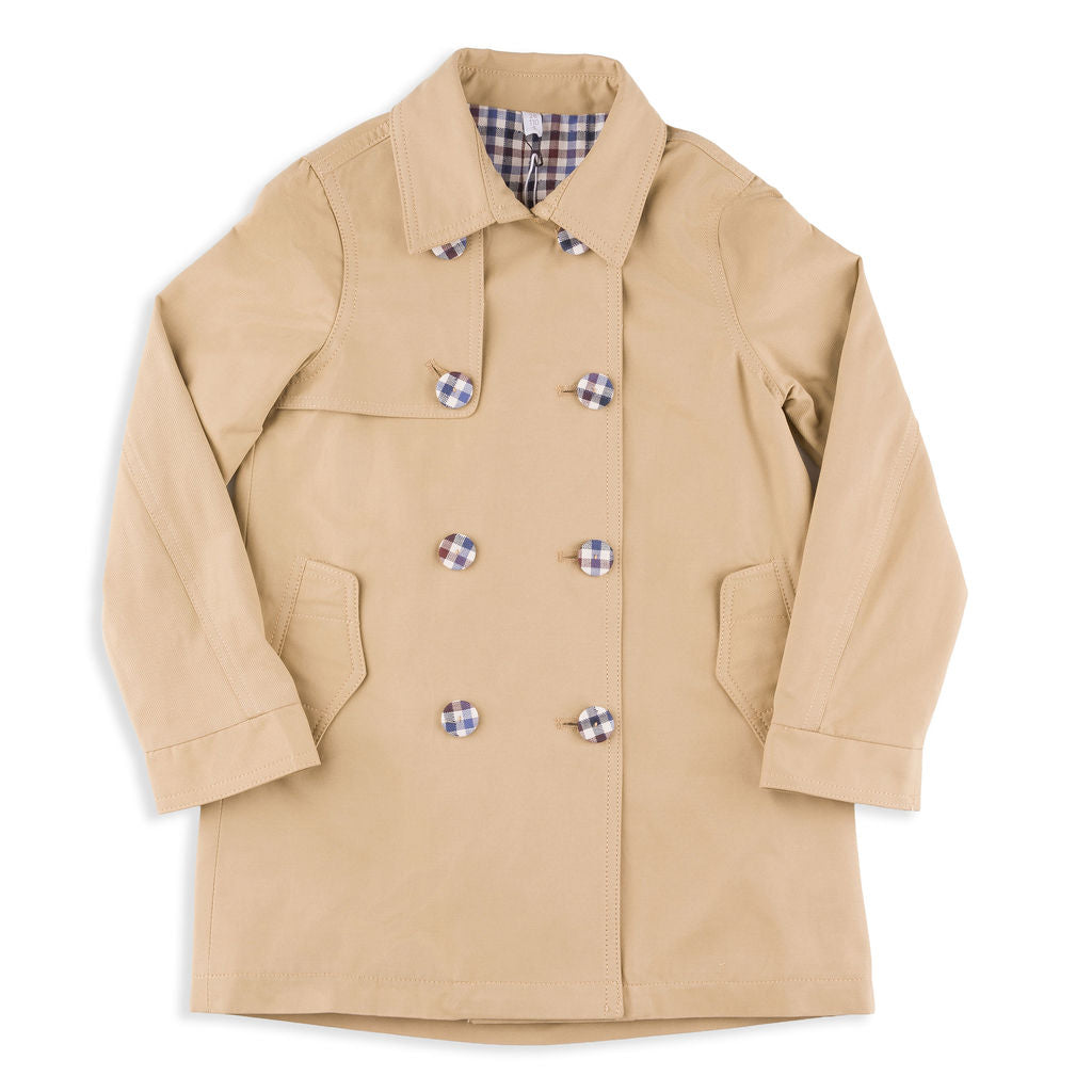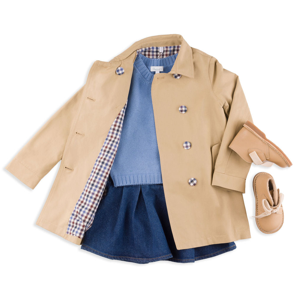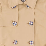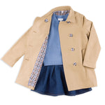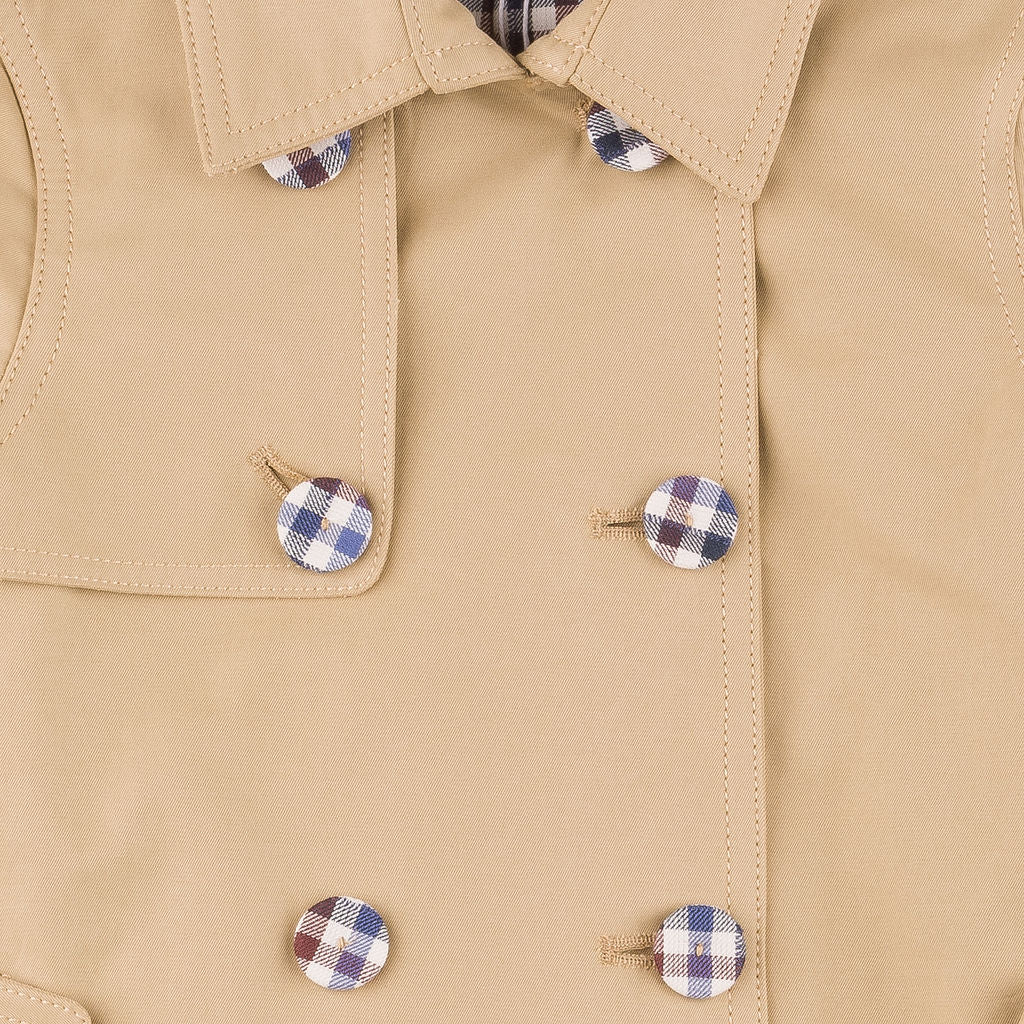 Meet the Knightsbridge Trench Coat: A timeless wardrobe staple reimagined for little ones, this coat is tailored in a classic beige with a double-breasted front and classic collar. The checked buttons and coordinating lining add a playful twist to its refined silhouette, while the structured cut keeps it polished for every occasion. Lightweight yet durable, it’s the perfect layer for crisp mornings, family outings, and city strolls alike. Expertly crafted with attention to detail, this coat is as functional as it is chic. Matches perfectly with the Women's Knightsbridge Trench Coat for a coordinated look. Sizing guidance -- true to size.