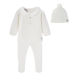 This style runs true to size. This cozy ivory knit hat features delicate textured detailing and a soft pom-pom on top for a playful, timeless look. Perfect for chilly days, it keeps your little one warm while adding a touch of classic charm.