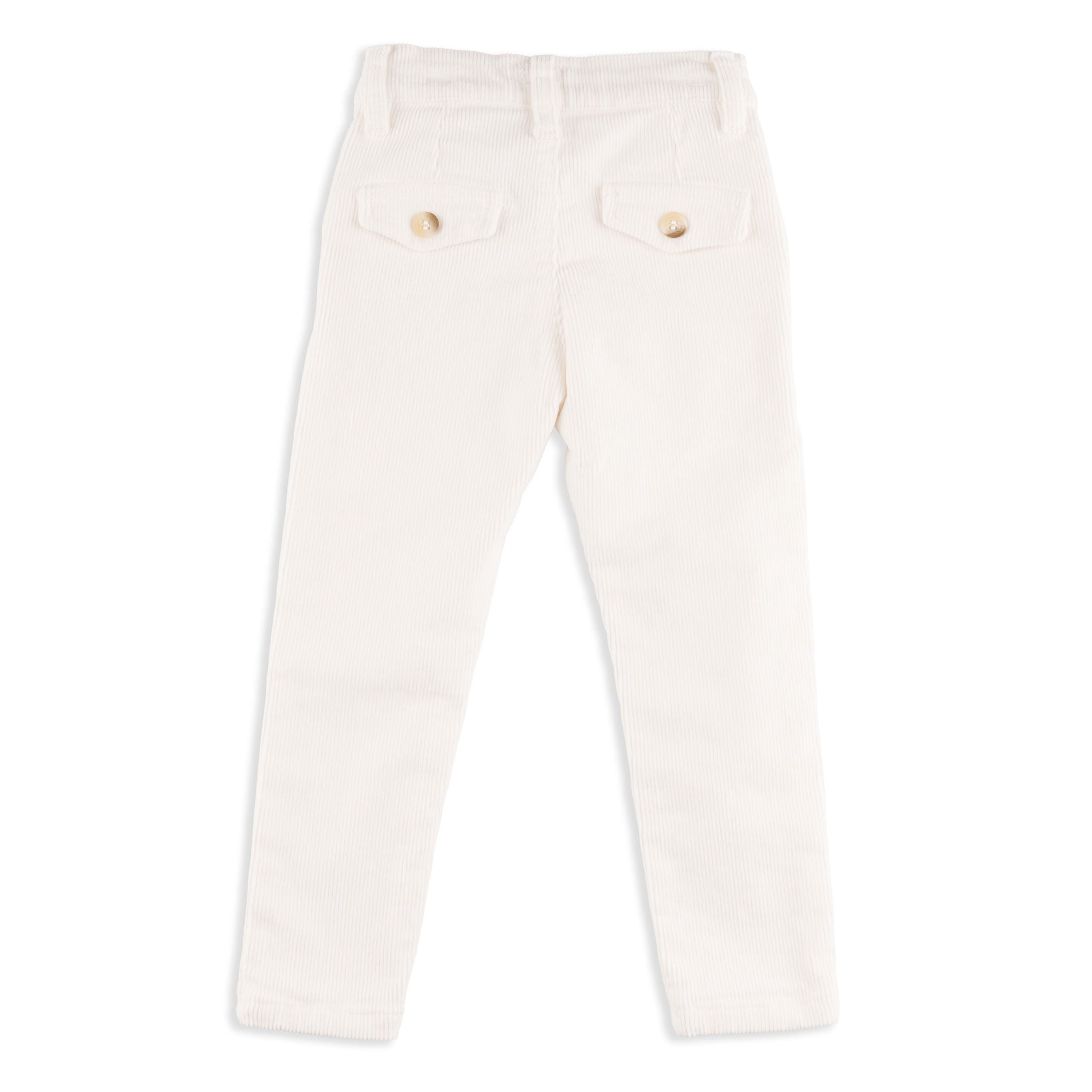 Runs true to size. The White Corduroy Pants offer a classic, textured look with a soft and durable finish. Perfect for everyday wear, they combine comfort and style with a timeless silhouette.