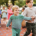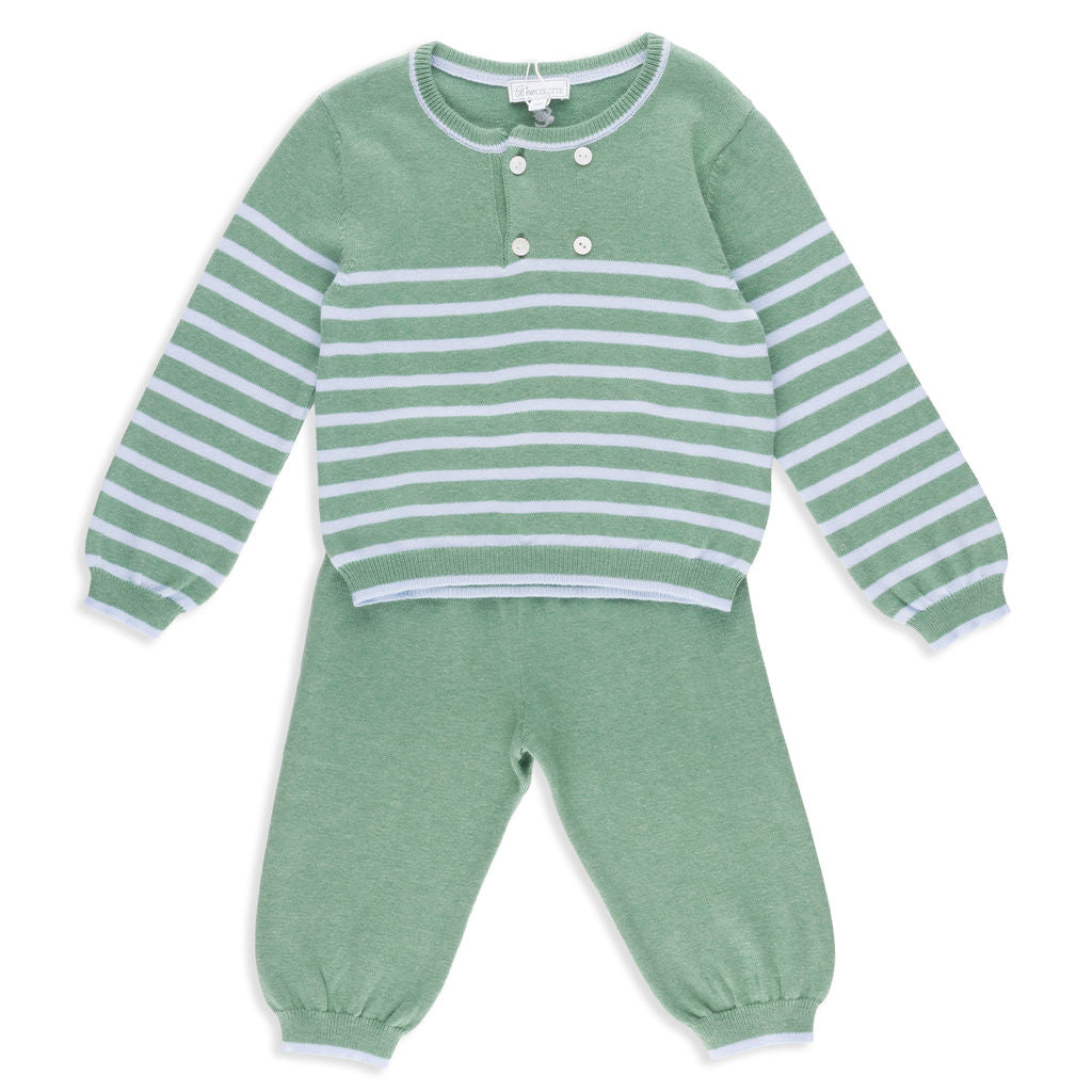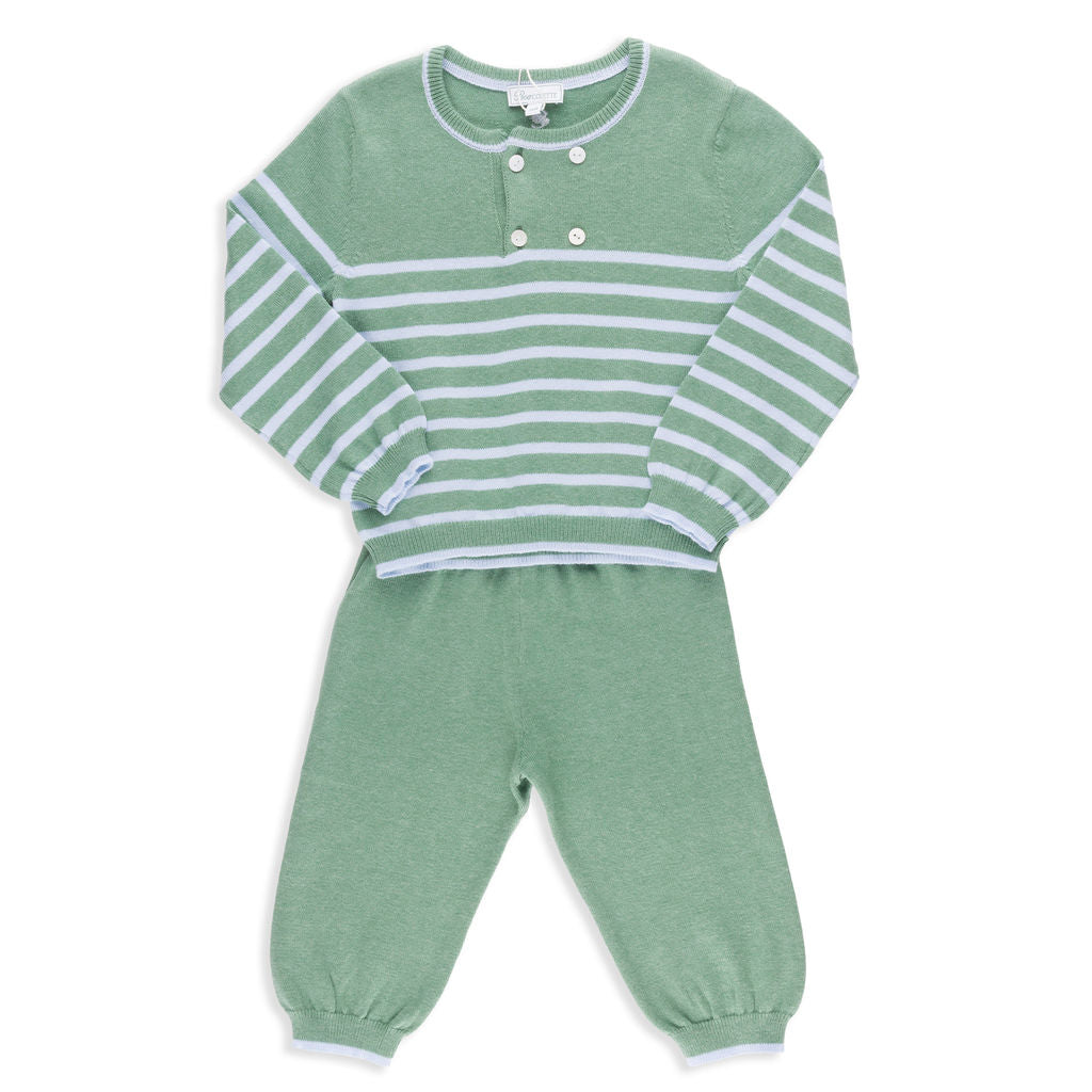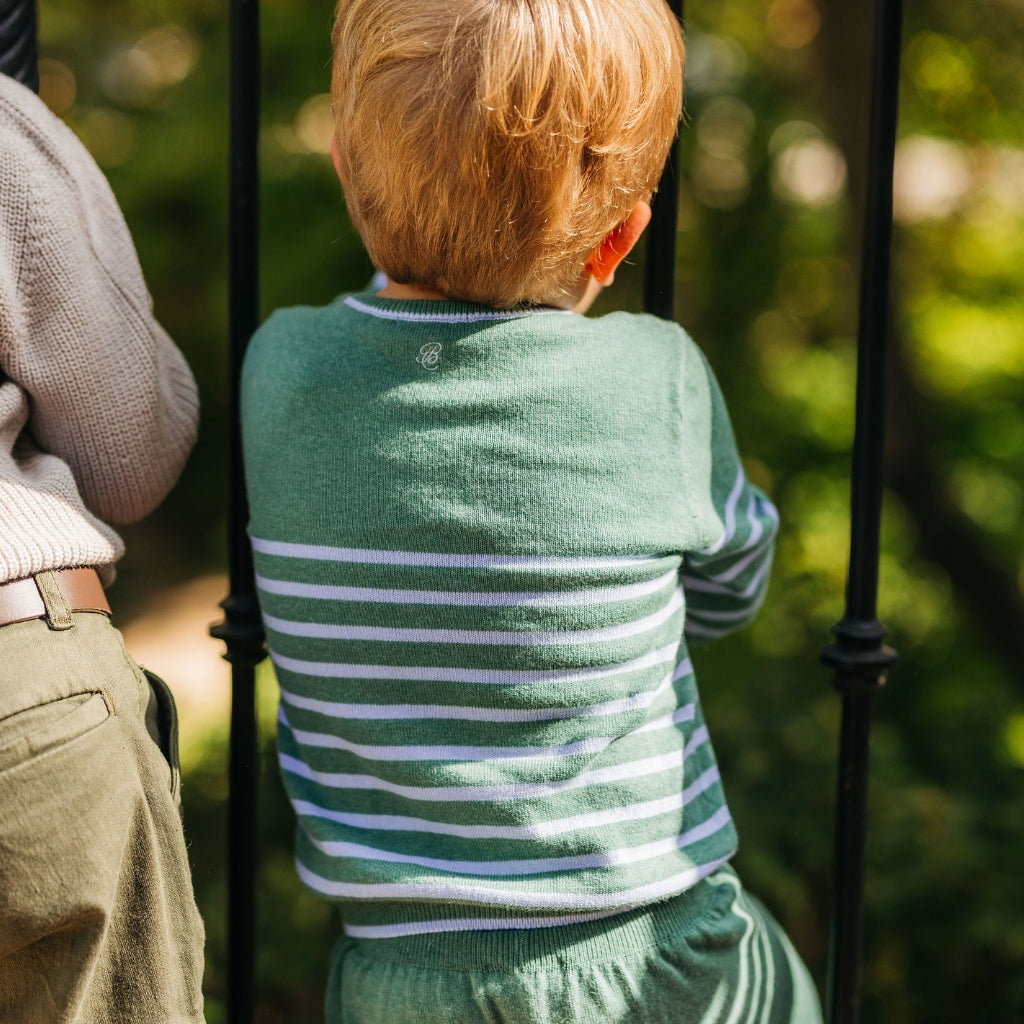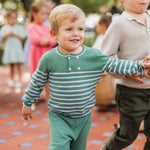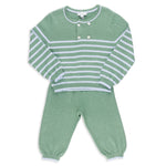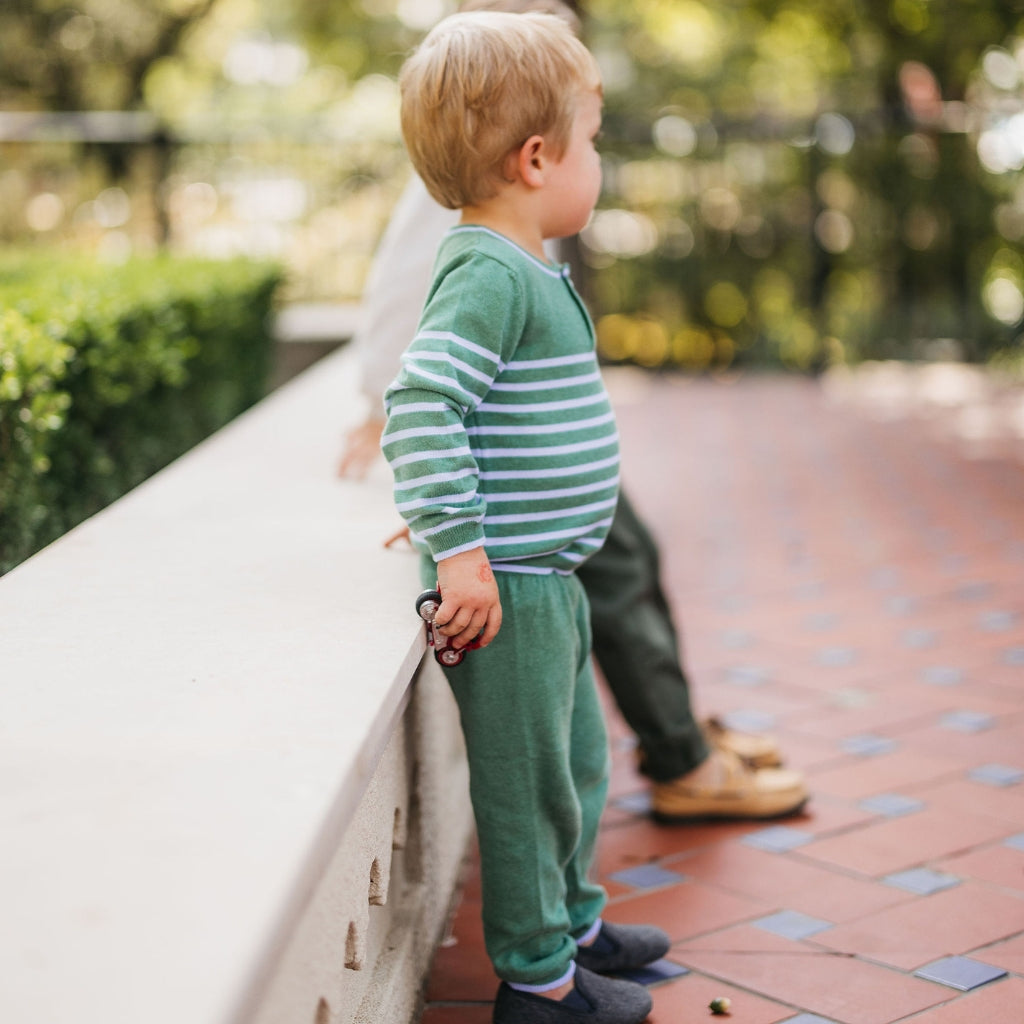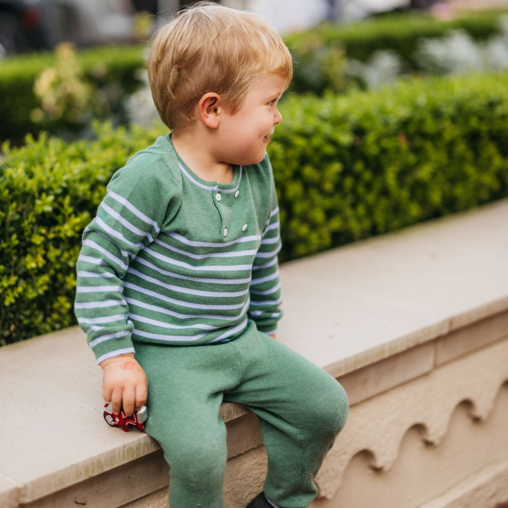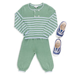 Lucerne Sweater + Jogger Set in Greenwich Green & Celestial Blue Stripe
