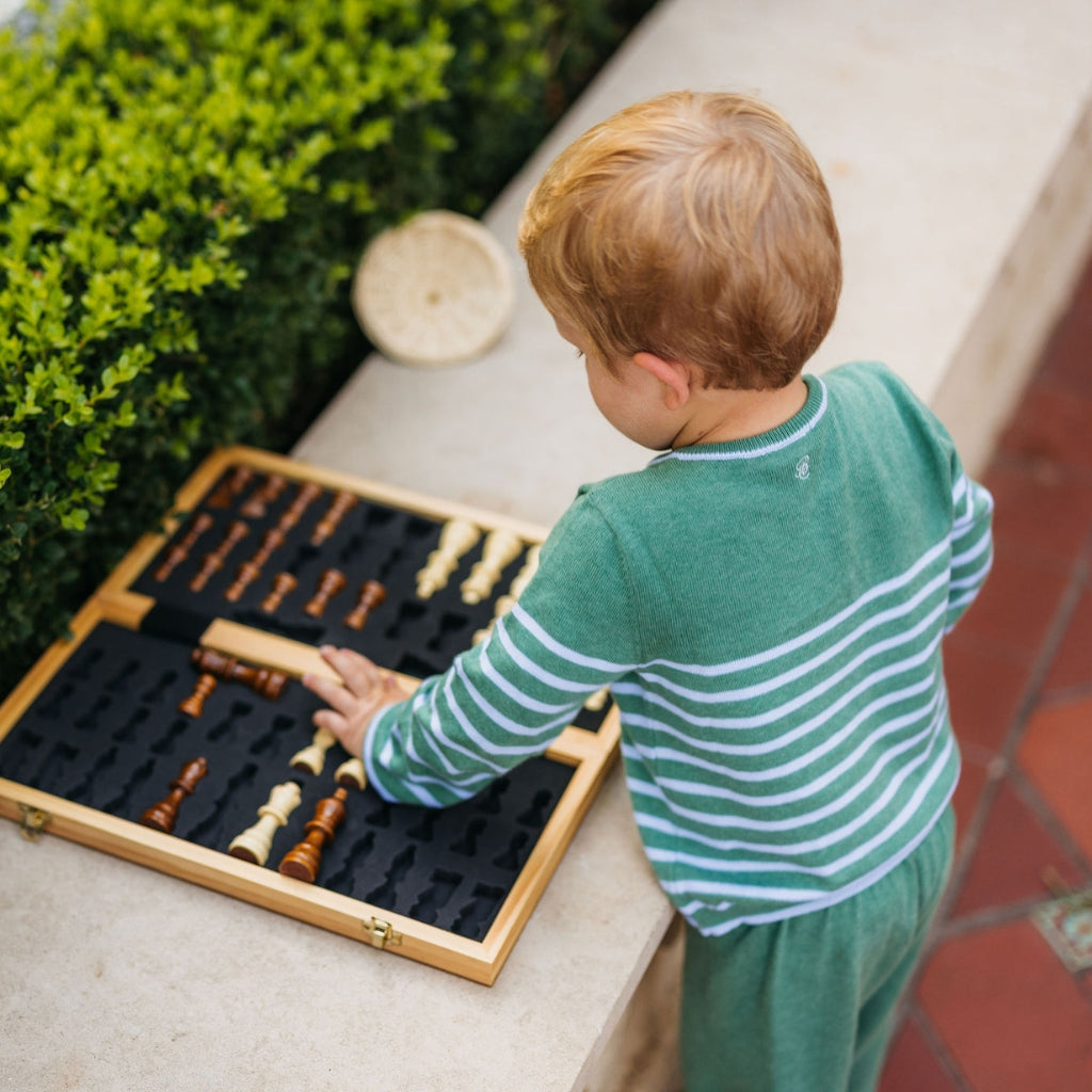 Meet the Lucerne Set – a sleek, soft, and versatile two-piece set that embodies the charm of Italian craftsmanship and technology – it represents our love for elevated Italian knitwear. Expertly knit in Tuscany from 100% premium cotton, the Lucerne features striped sweater detailing and contrast piping on jogger-style pants. Available in evergreen/ivory, emerald green and slate blue, slate blue/ivory, key lime/blue, celestial light blue/sapphire stripe, ivory/sky blue, and of course this beautiful green/blue, it’s designed for all-year wear and suitable for both genders.
