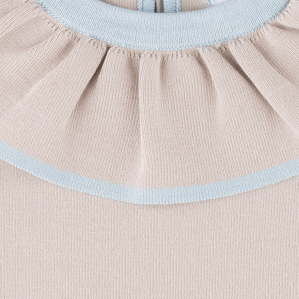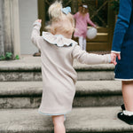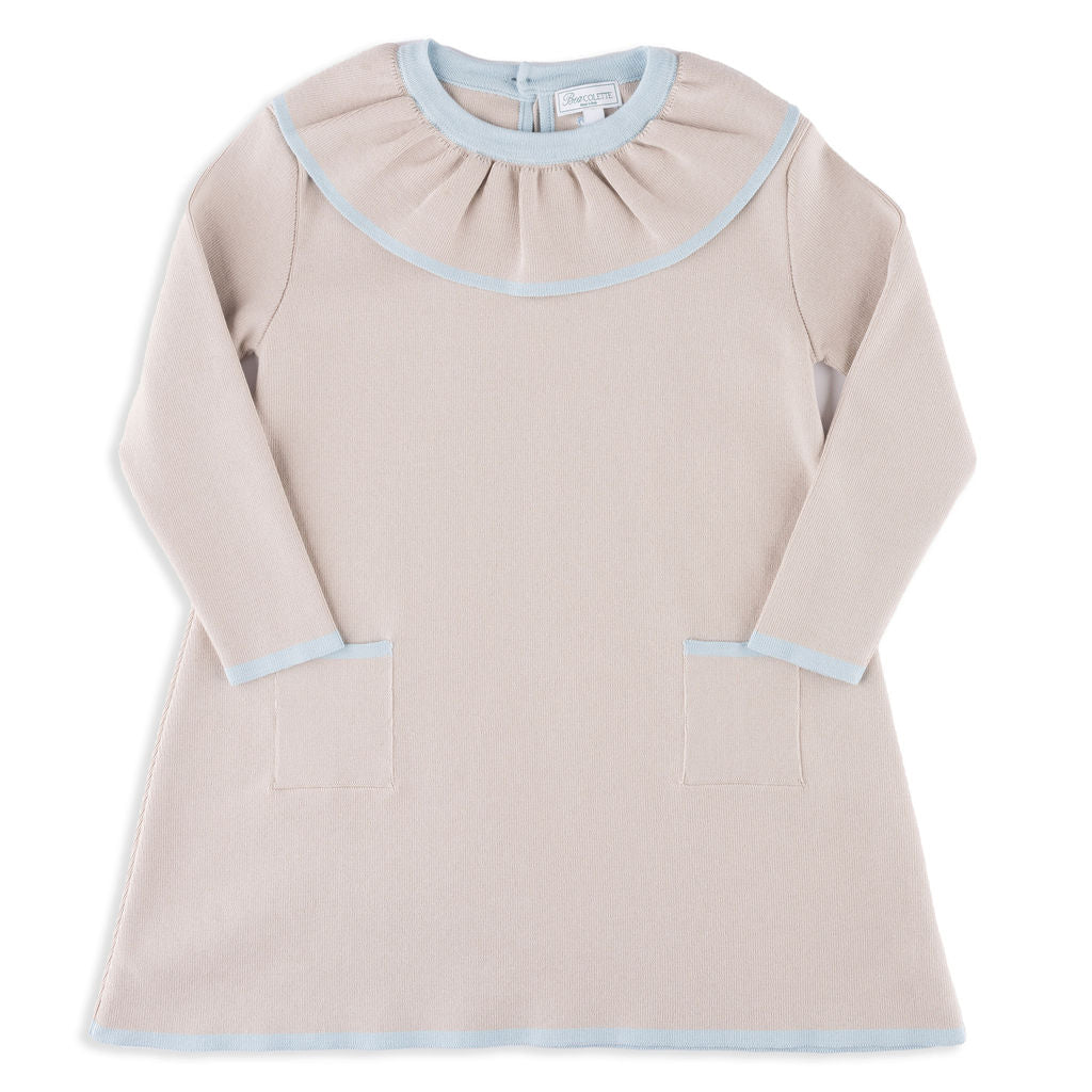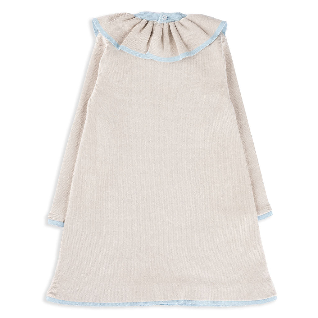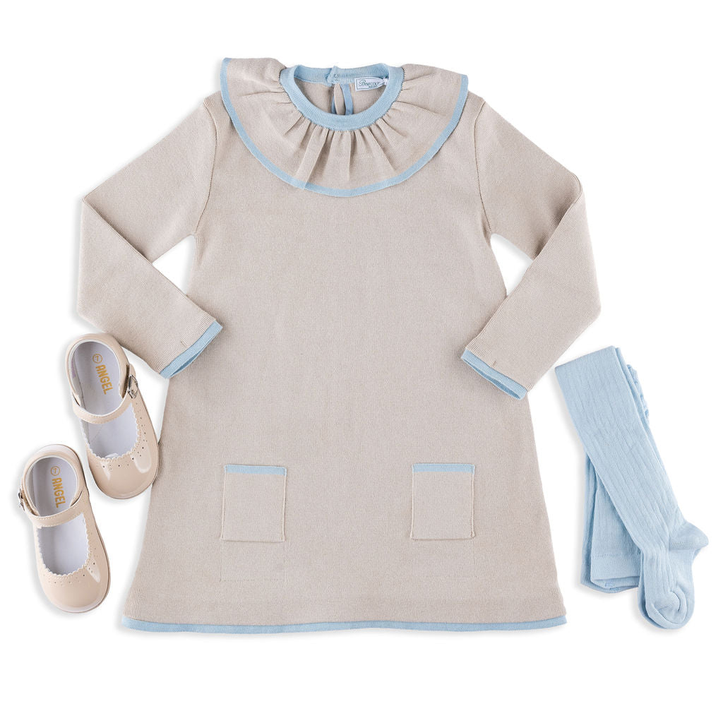 Marais Dress in Sandstone with Ice Blue Trim