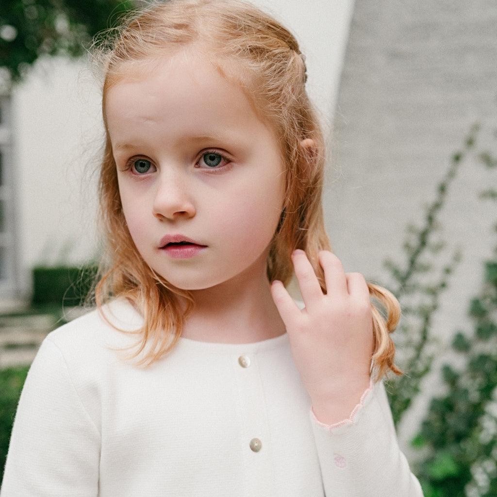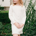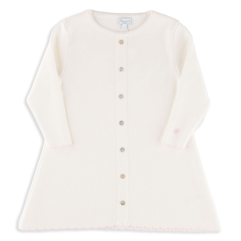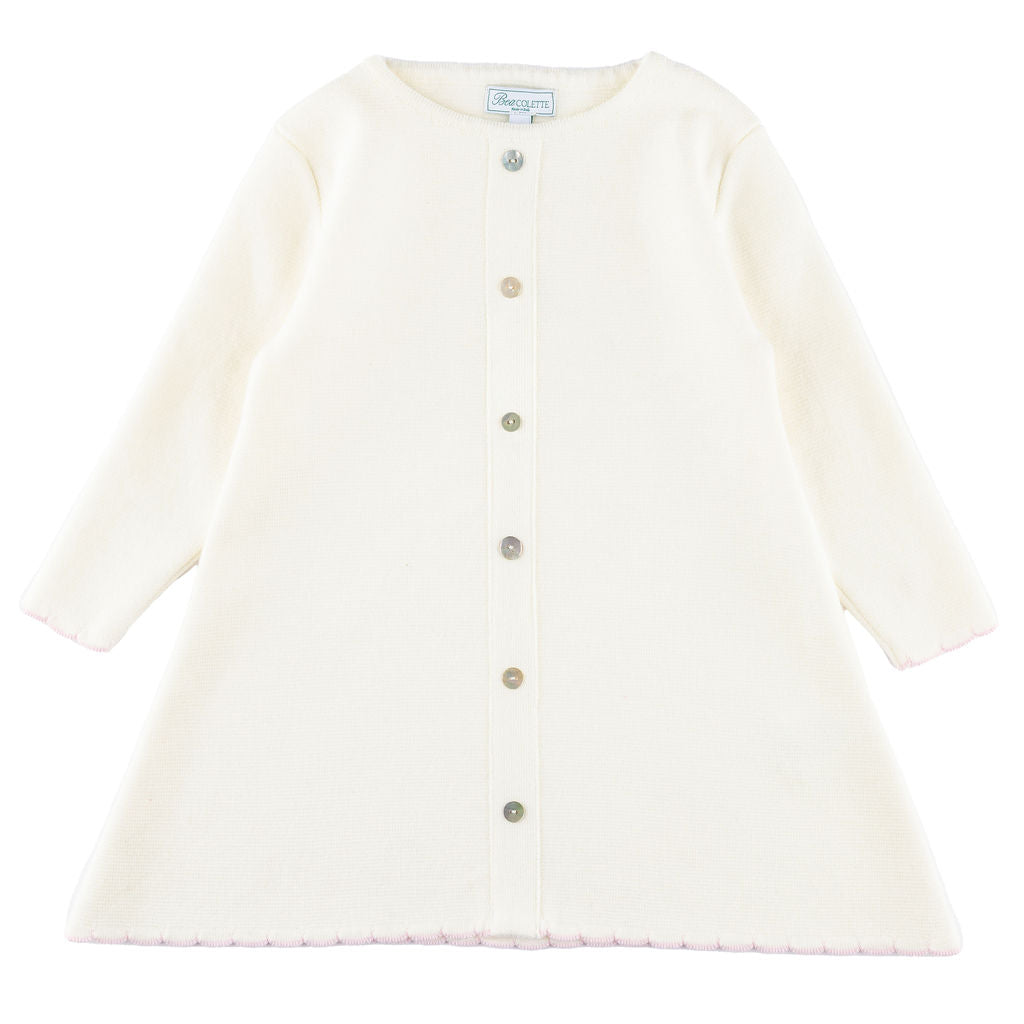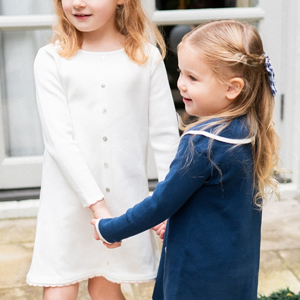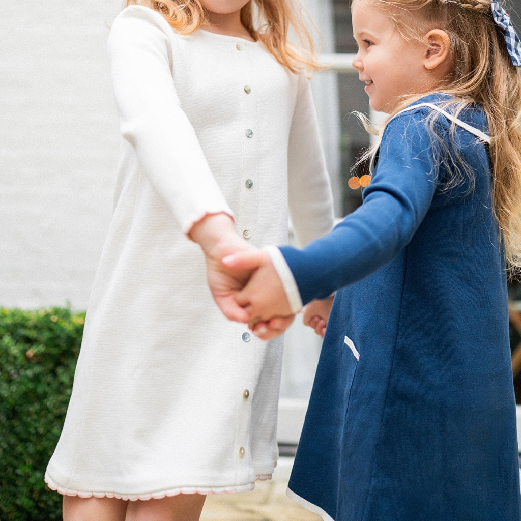 Fit & Design Details: If in between sizes, we recommend sizing up in the Megève. Available in ivory/pale pink and ice blue/sage, the Megève is perfect for year-round wear, suited for girls aged 12 months to 8 years. Its A-line silhouette pairs effortlessly with sneakers or Mary Janes, and is light enough for breezy summer evenings yet cozy when layered with a coat and tights for winter. We love the faux button center placket for an extra polished, no-fuss ladylike look made more playful with the scallop hem and sleeve trim details. Every design includes a subtly embroidered BC logo, adding a discreet, playful touch. Each piece is handmade by artisans, so no two products will be exactly alike, adding to their unique charm.