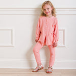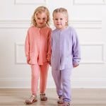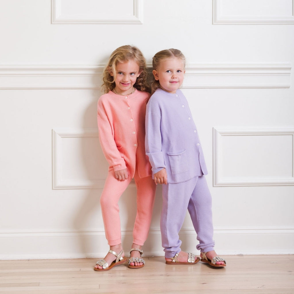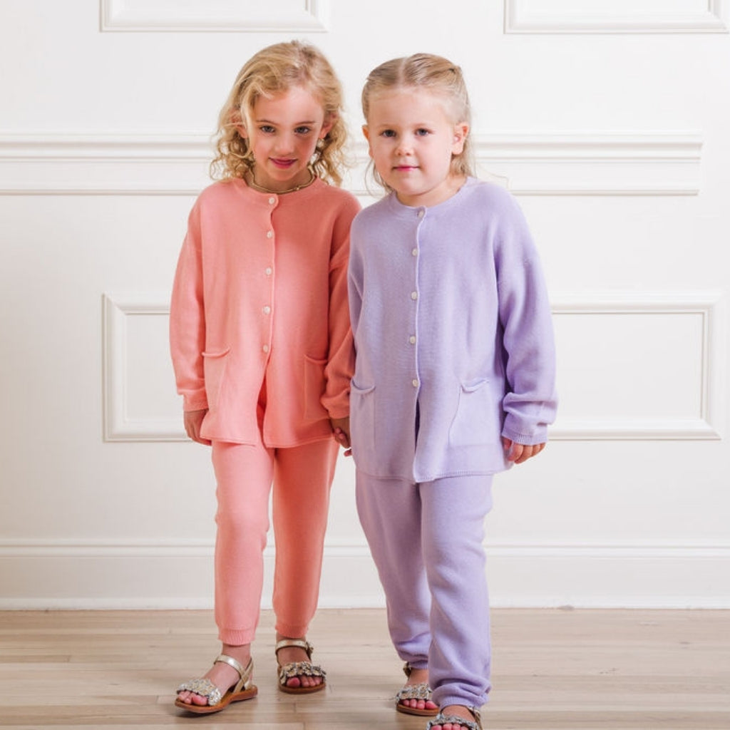 Meet the Méribel Set – a sleek, soft, and versatile two-piece knitwear set that embodies Italian craftsmanship and elevated design. Made in Tuscany from 100% premium cotton, it features a box stitch knitting pattern throughout both the cardigan and pant, along with playful oversized pockets on the cardigan. Available in sorbet pink and a gorgeous lavender, this set suits girls in sizes 18 months to 8 years and is perfect for year-round wear. True to US sizing (the fit is intentionally a little oversized) and built for longevity!
