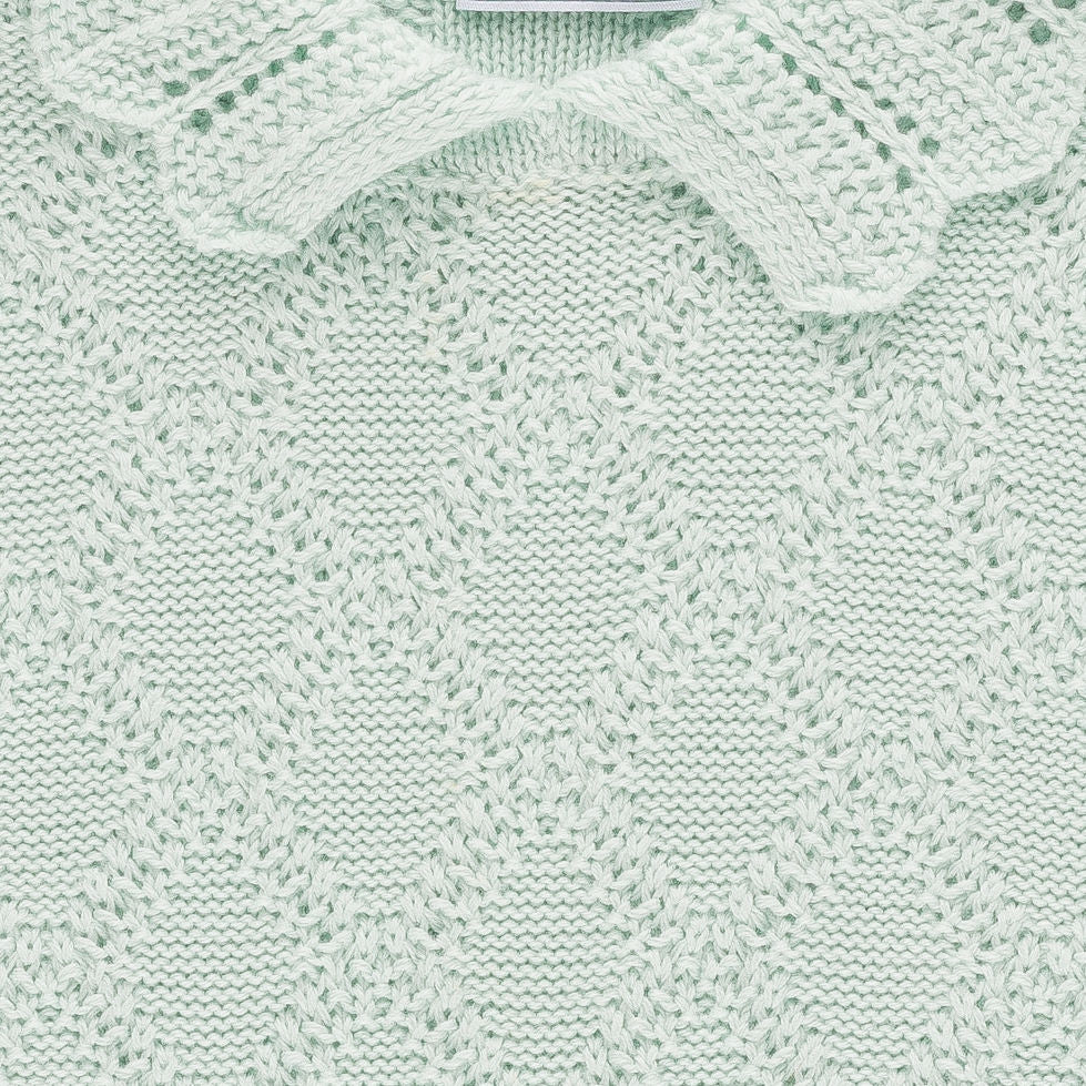 Meet the Primrose Dress – A timeless piece designed with delicate detail, this short-sleeve knit dress is crafted in a soft diamond pattern. The scalloped collar and gentle puff sleeves add a touch of sweetness, while the flared skirt gives it an elegant finish. Comfortable yet refined, it’s perfect for special occasions or everyday moments worth celebrating. Expertly crafted in Tuscany, this dress is made from 100% cotton.