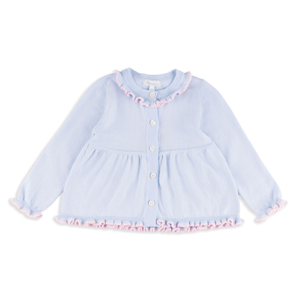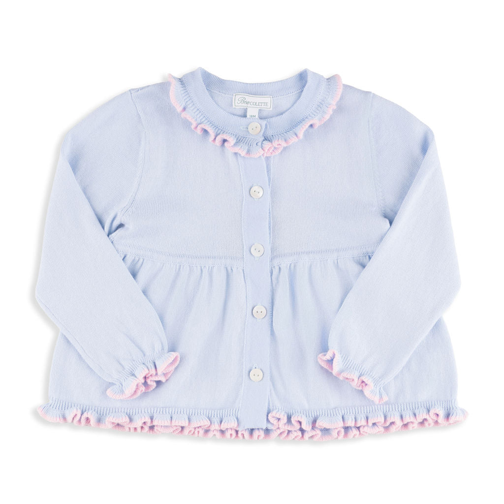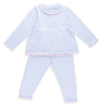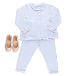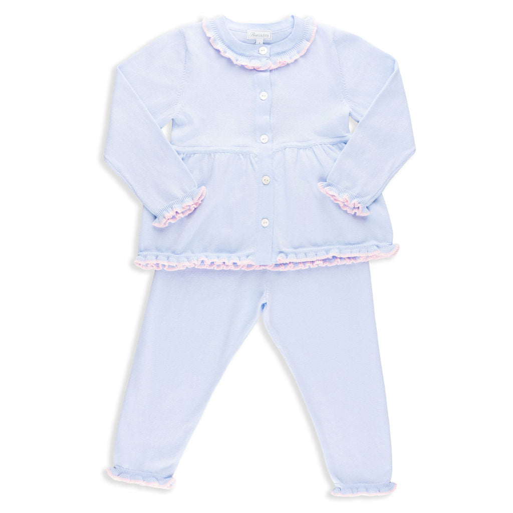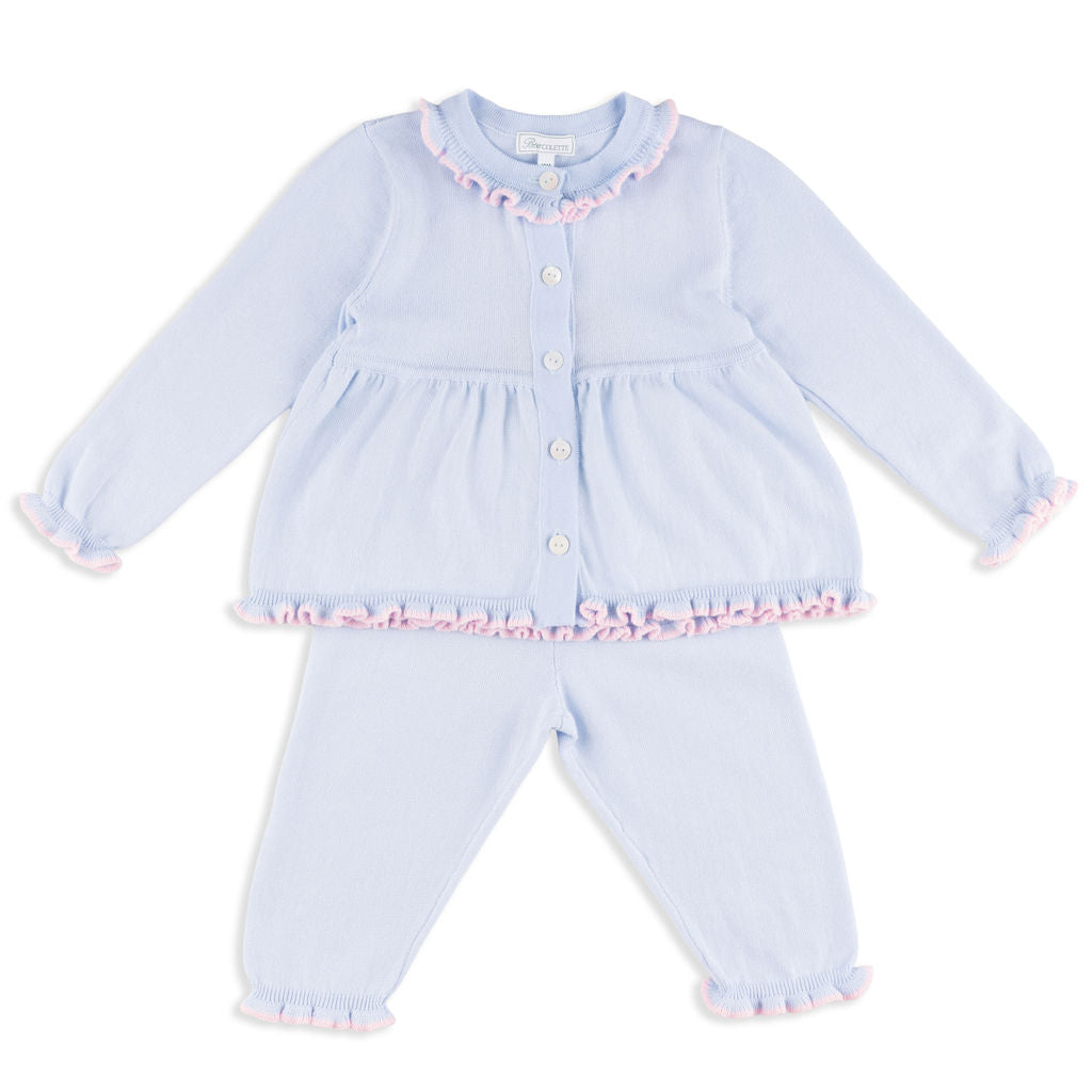 Valencia Cardigan + Pant Set in Celestial Blue with Pink Trim