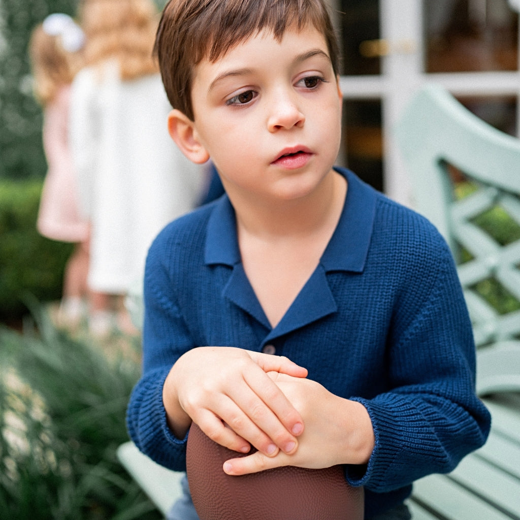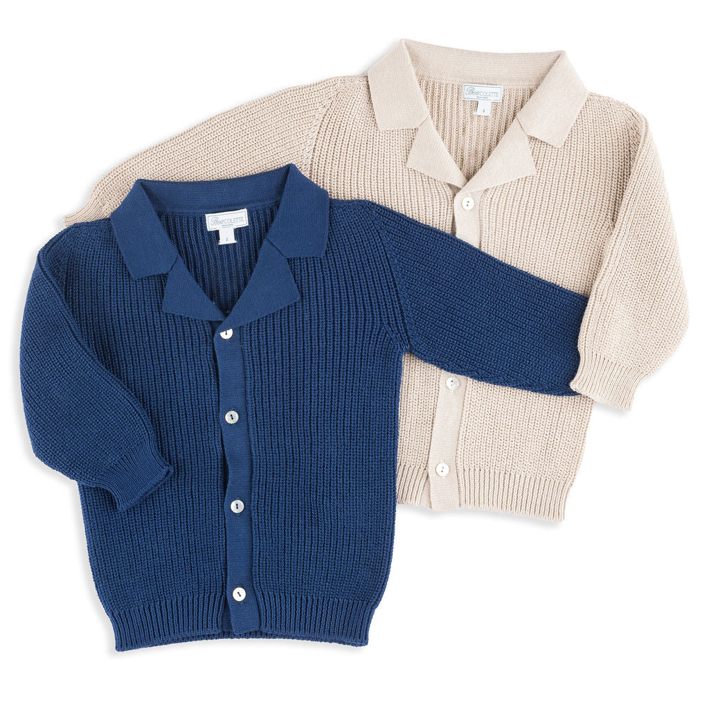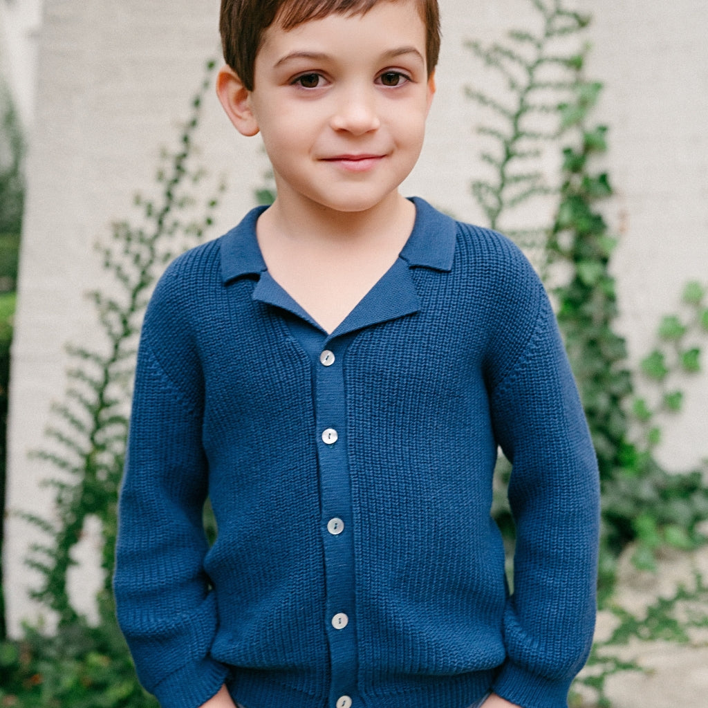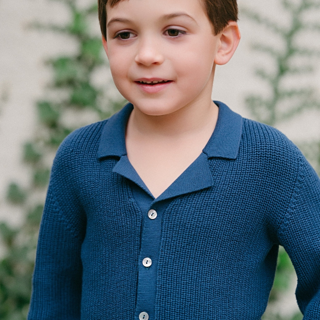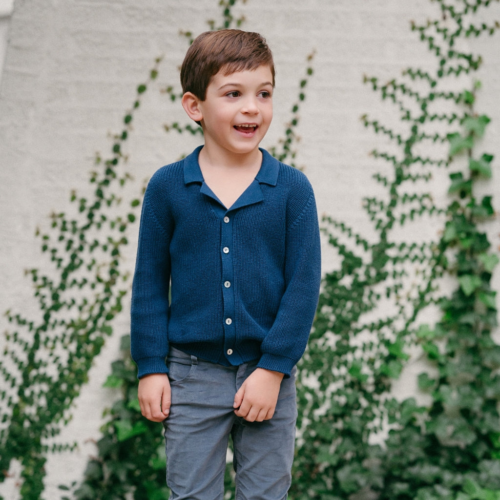 Meet the Ravello Cardigan – a soft, versatile layering piece that embodies the elegance of Italian craftsmanship. Expertly made in Tuscany, this rib-stitch cardigan is crafted from 100% premium cotton and features a sleek notch collar adding that extra touch of sophistication for your little gentleman. Available in neutral Sandstone and classic Navy, the Ravello is designed for year-round wear and is suitable for both genders.