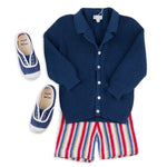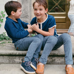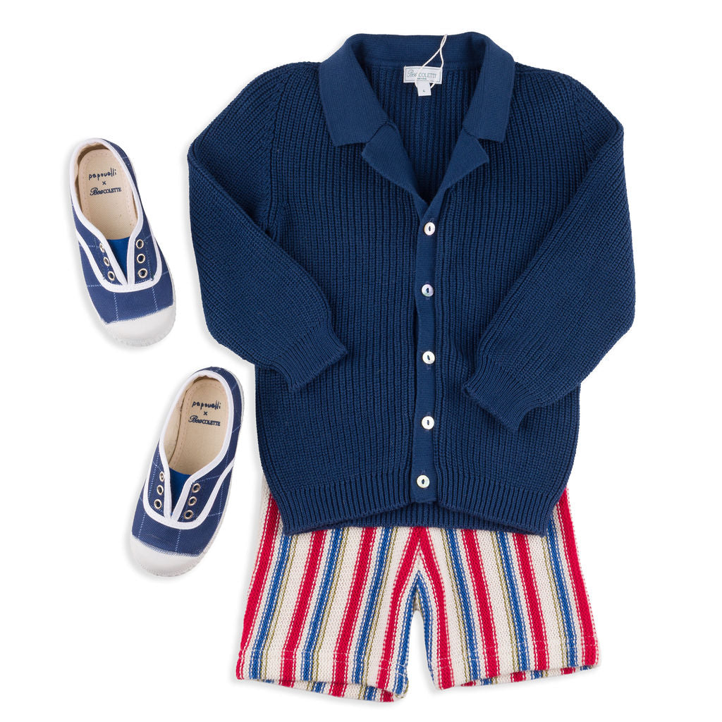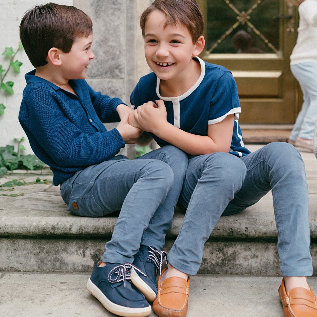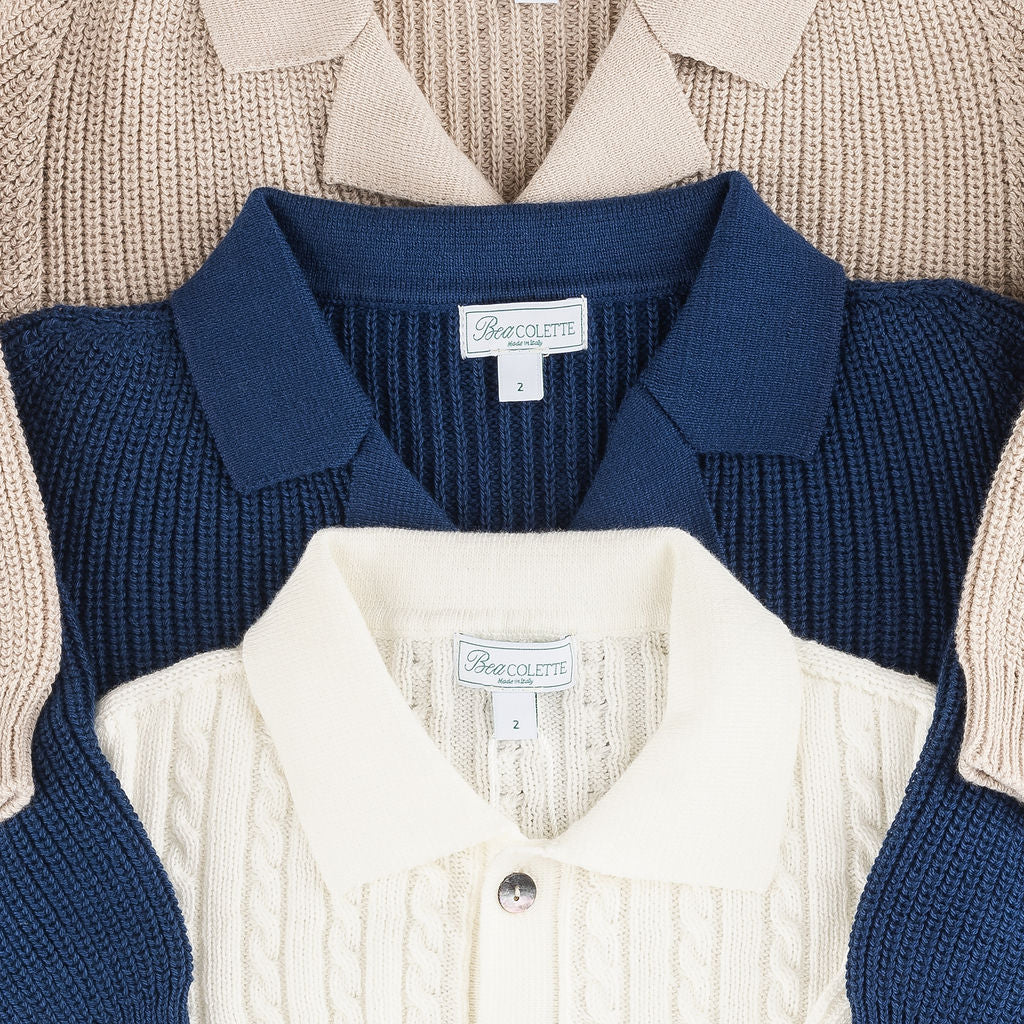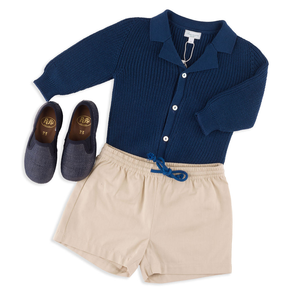 Meet the Ravello Cardigan – a soft, versatile layering piece that embodies the elegance of Italian craftsmanship. Expertly made in Tuscany, this rib-stitch cardigan is crafted from 100% premium cotton and features a sleek notch collar adding that extra touch of sophistication for your little gentleman. Available in neutral Sandstone and classic Navy, the Ravello is designed for year-round wear and is suitable for both genders.