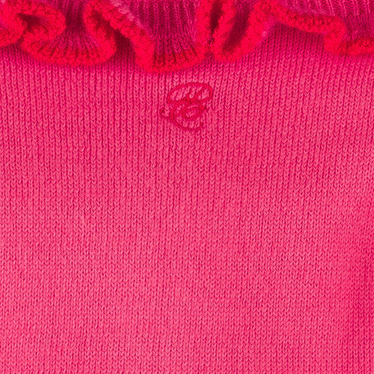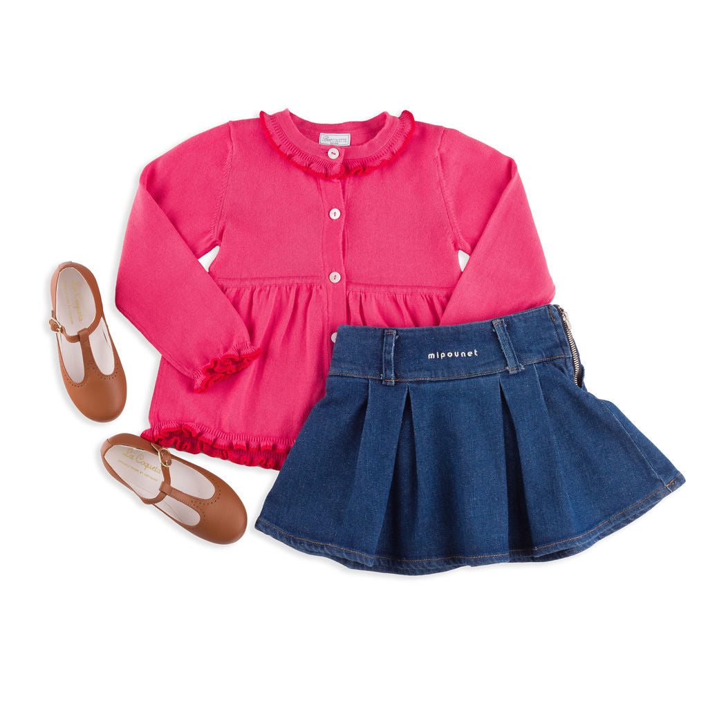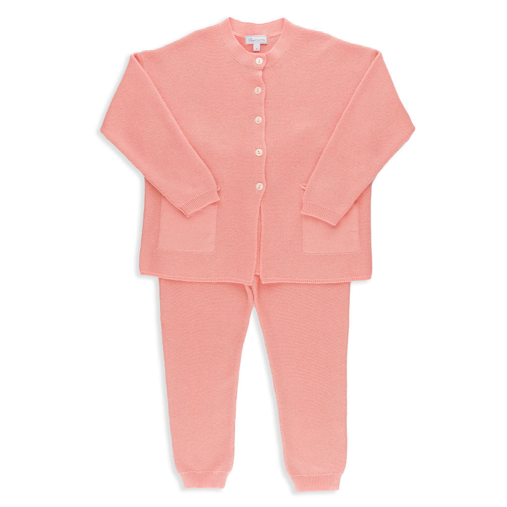 Meet the Valencia Set – a sleek, soft, and versatile two-piece knitwear set that embodies Italian craftsmanship and elevated design. Made in Tuscany from 100% premium cotton, it features feminine frilly piping on the pant, sleeve, and hem, offering a playful yet sophisticated look. Available in green/pink, pale pink/ivory, slate blue/ivory, emerald green/slate blue, and this gorgeous hibiscus pink/scarlet, it suits girls aged 12 months to 8 years and is perfect for year-round wear. True to US sizing (the fit is intentionally a little oversized in the tunic-style cardigan).