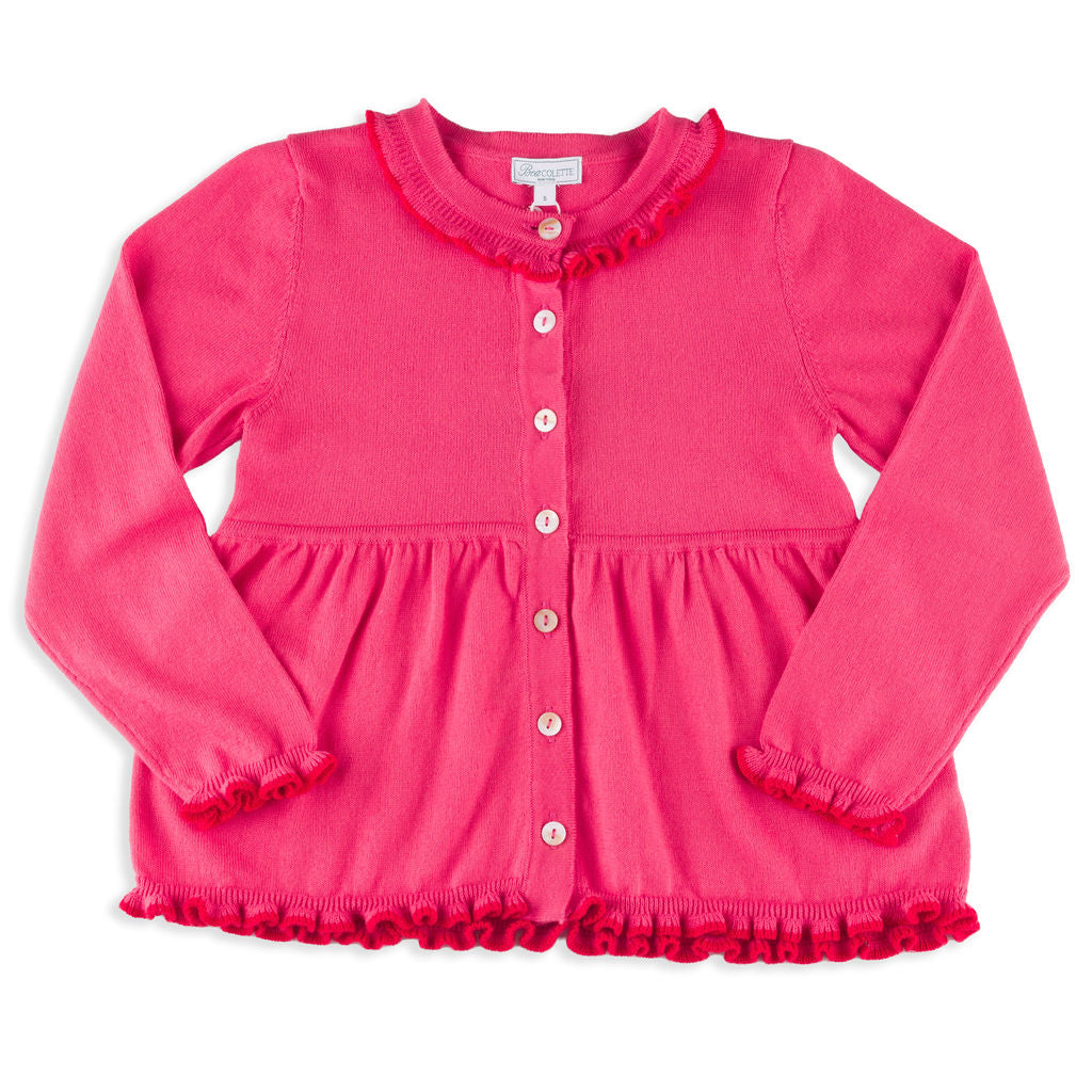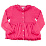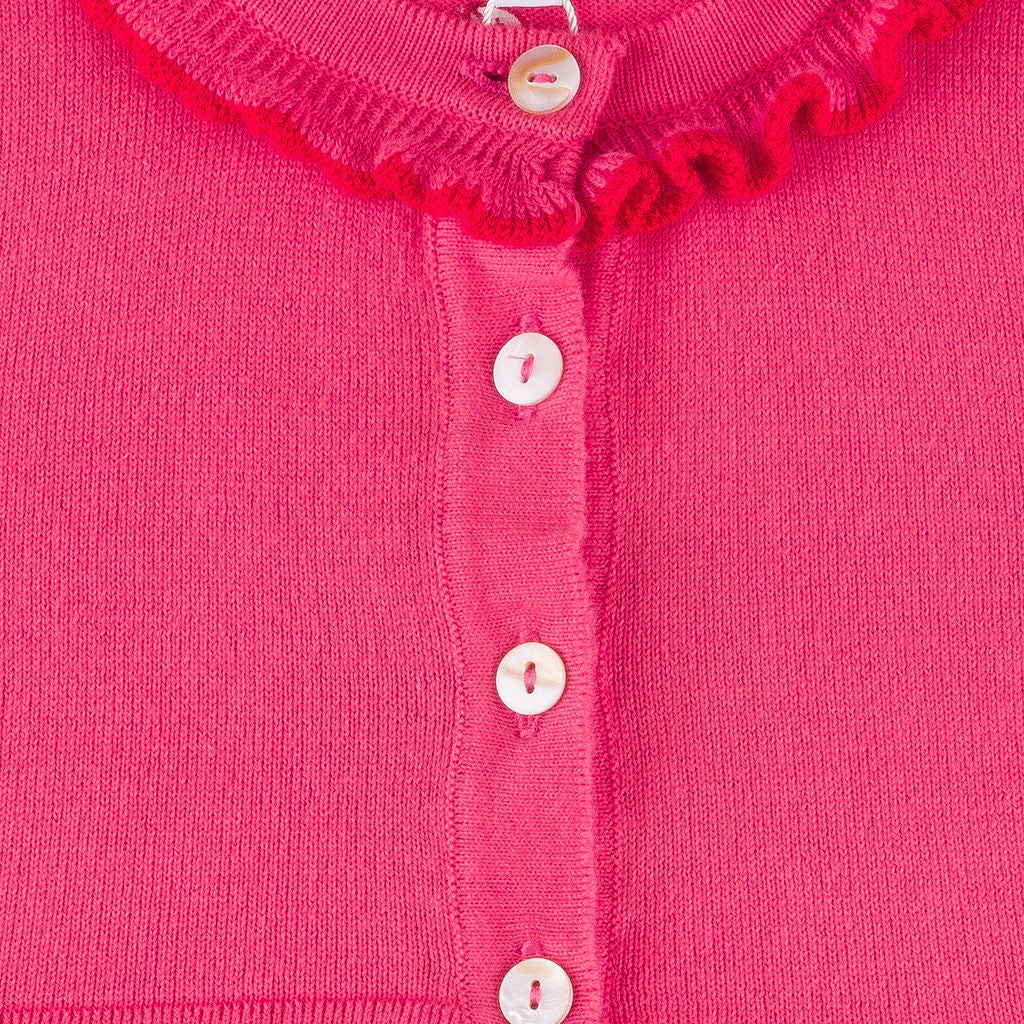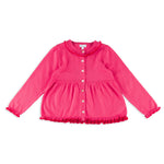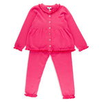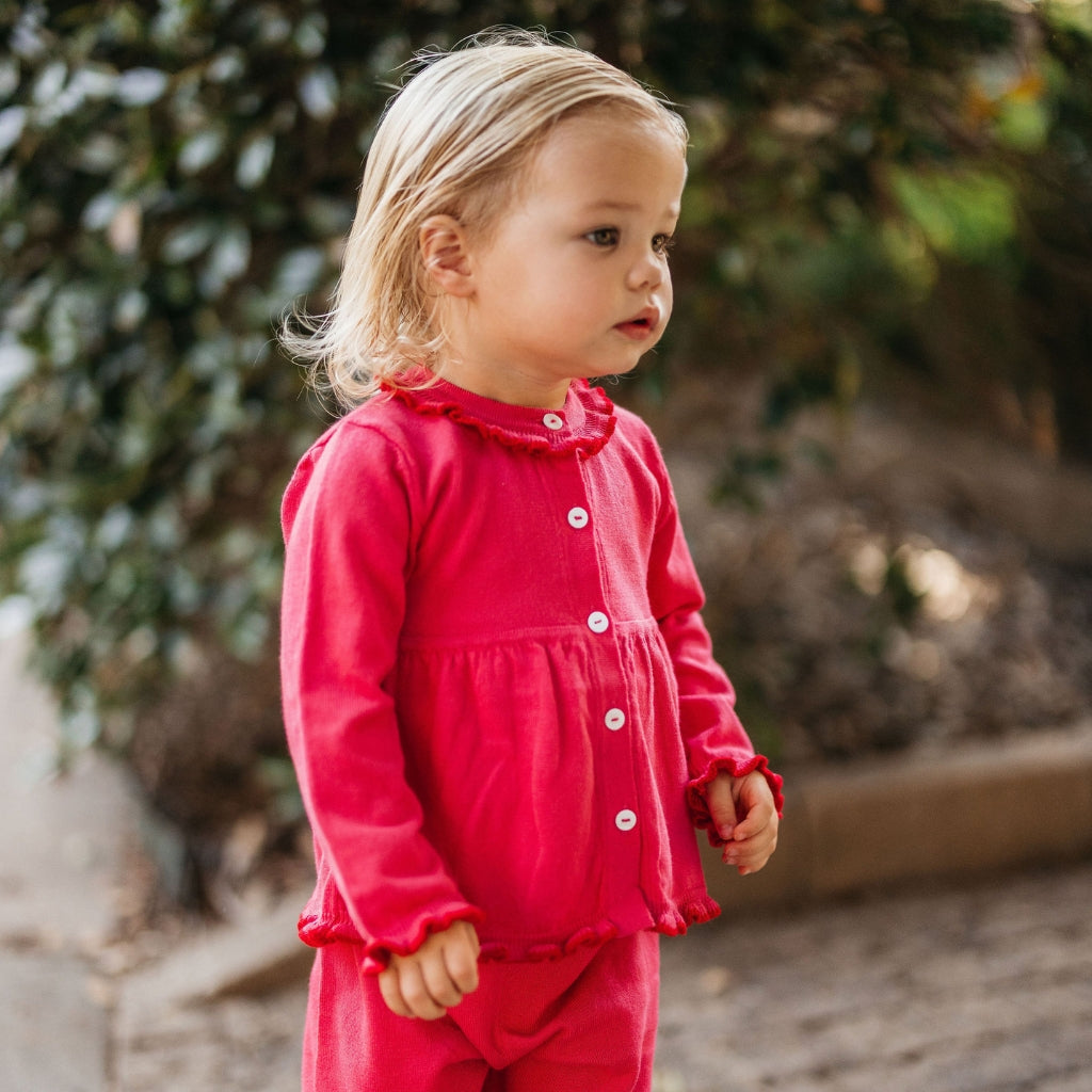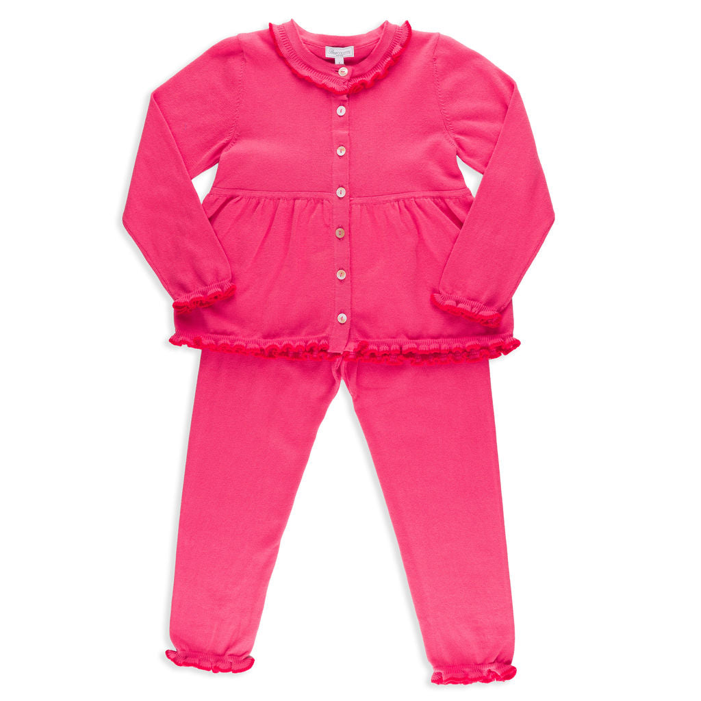 Valencia Cardigan + Pant Set in Hibiscus Pink with Scarlet Frill Trim