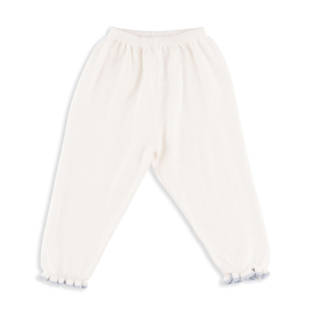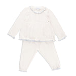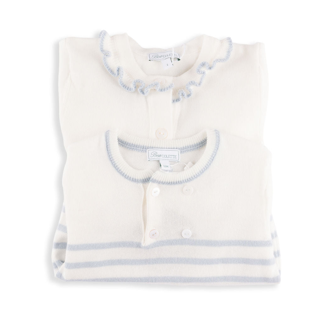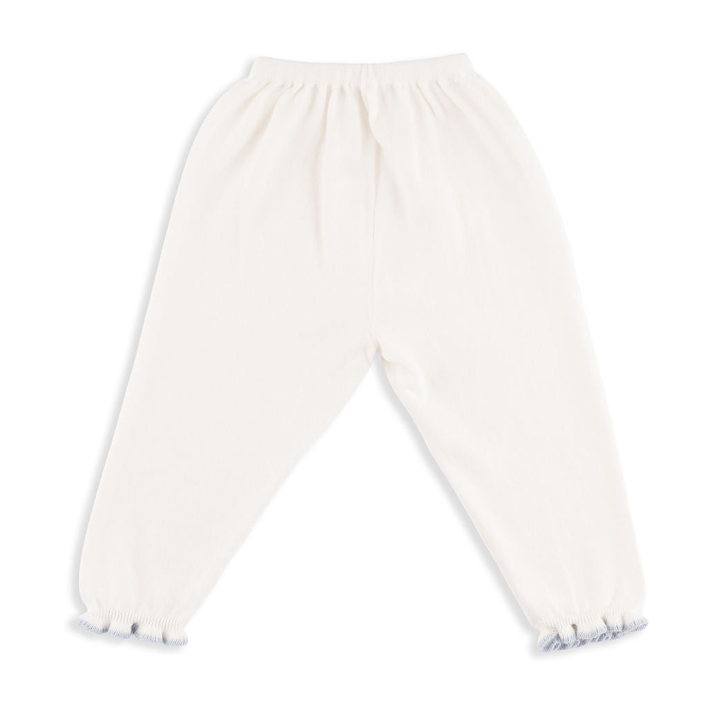 Valencia Cardigan + Pant Set in Ivory with Slate Blue Trim