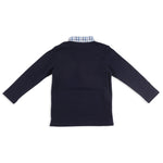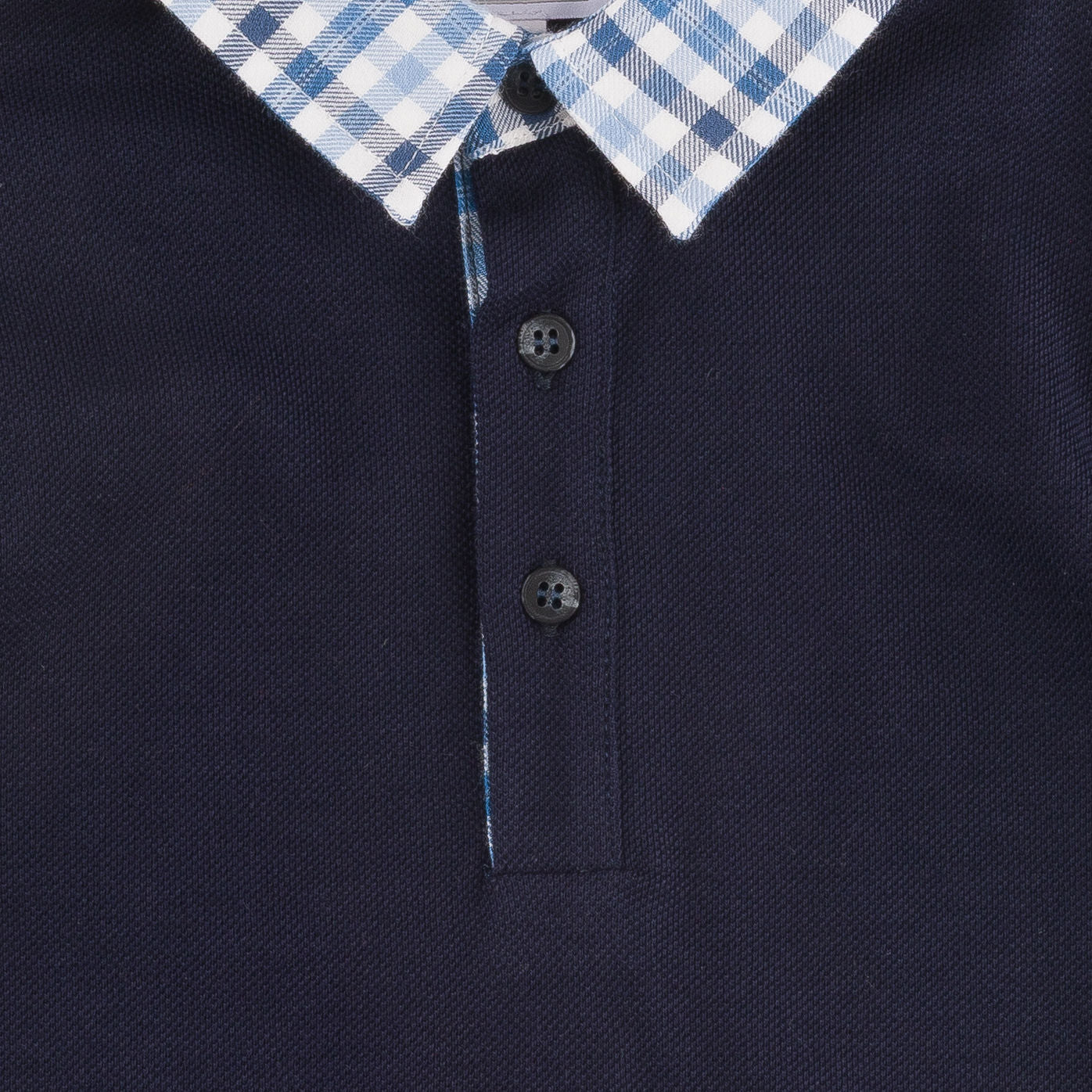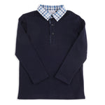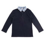 Arturo Dark Navy Pique Shirt with Blue Plaid Collar