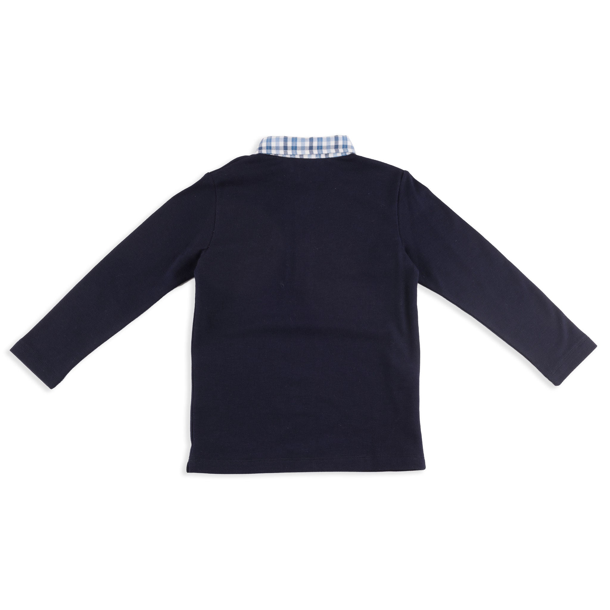 The Arturo Top features a soft dark navy body accented with a classic blue plaid collar for a timeless, tailored look. Crafted from cozy, breathable fabric, it’s perfect for effortlessly polished everyday wear.