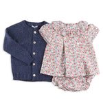 Bessie Blue and Red Floral Dress and Bloomer Set