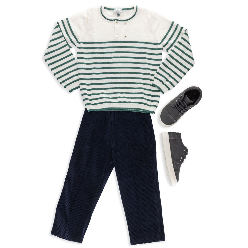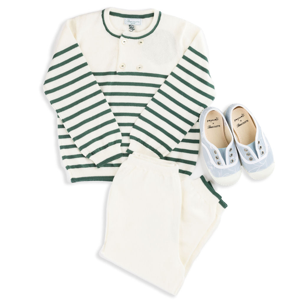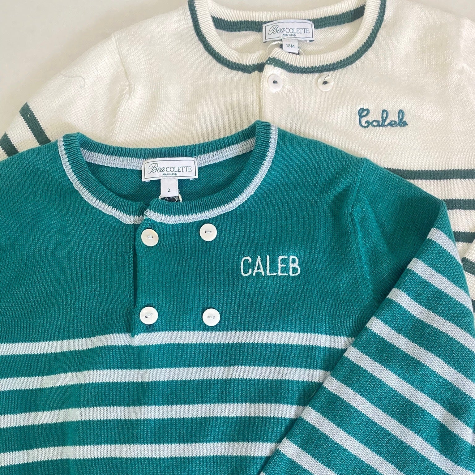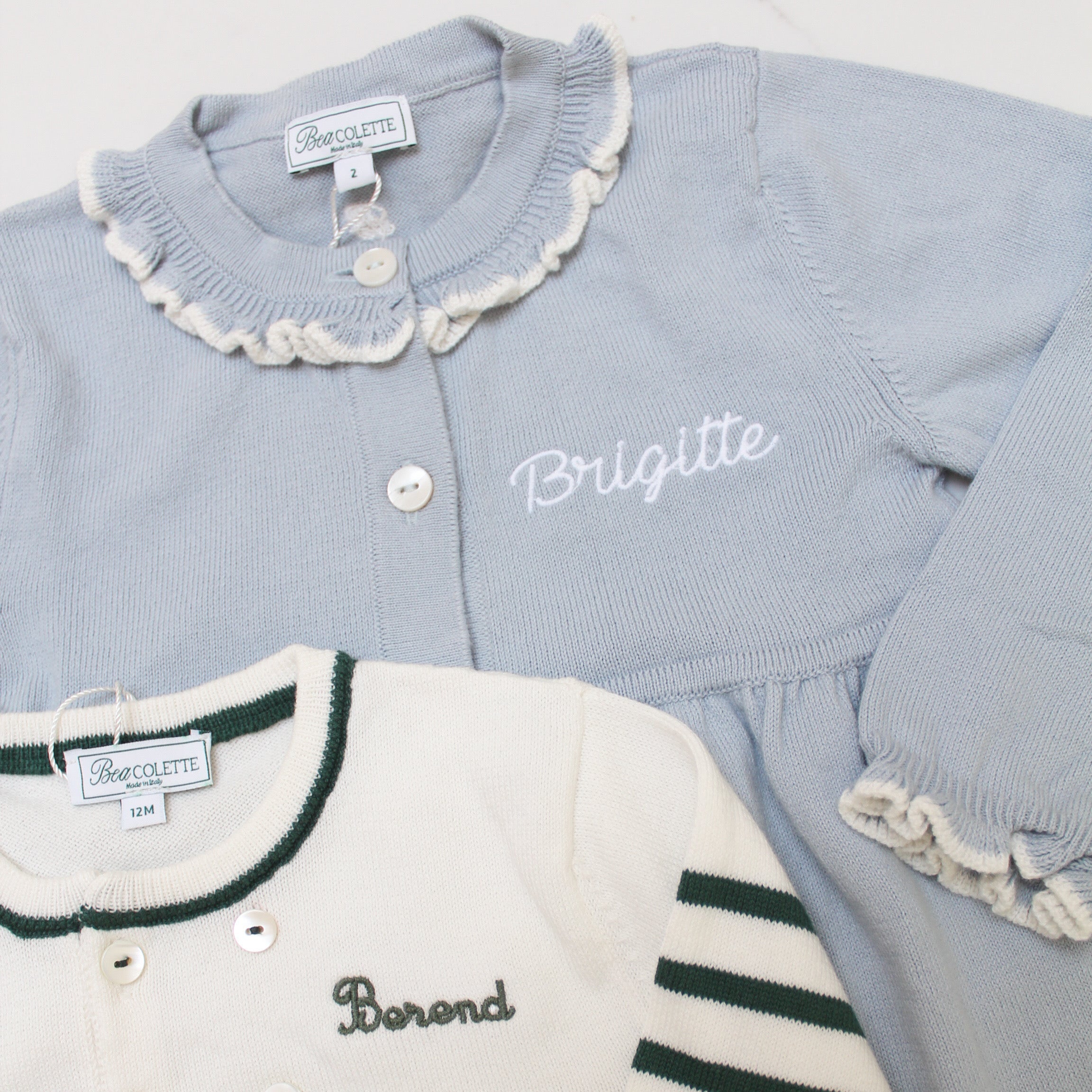 Fit & Design Details: The Lucerne runs true to US sizing, but if your child is in between sizes, we recommend going up one size for longer wear. Perfect for any occasion, the Lucerne transitions effortlessly from playground to dinner, pairing well with sneakers or loafers. The classic, crew-cut sweater and joggers can mix and match with wardrobe staples or Bea Colette favorites like the Ravello cardigan or Como cable sweater. Lightweight yet cozy, it’s ideal for summer evenings or layered during winter. Inspired by founder Meghan’s favorite knit sets for traveling and The Parent Trap's Camp Walden colors, the Lucerne combines timeless style and comfort. True to US sizing, it’s available for ages 12 months to 4 years in the set. You can purchase the sweater alone for sizes 5, 6 and 8 year. Every design includes a subtly embroidered BC logo, adding a discreet, playful touch. Each piece is handmade by artisans, so no two products will be exactly alike, adding to their unique charm.