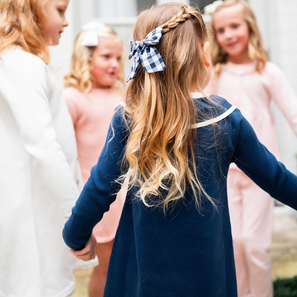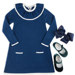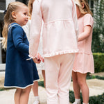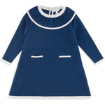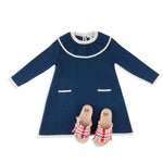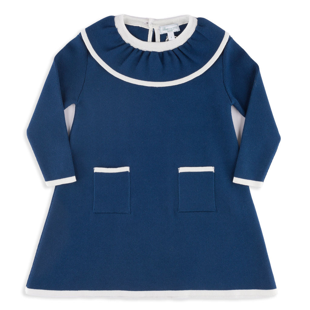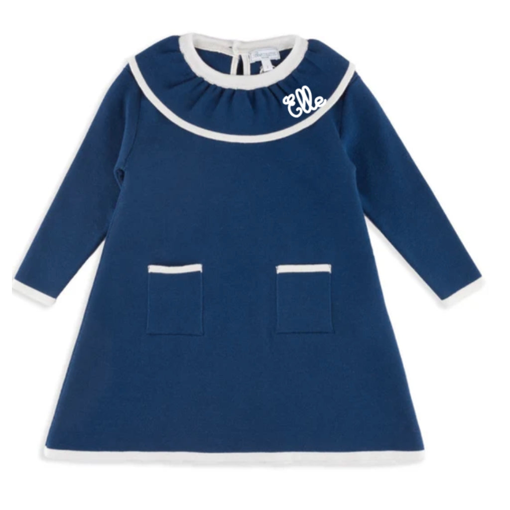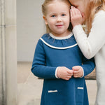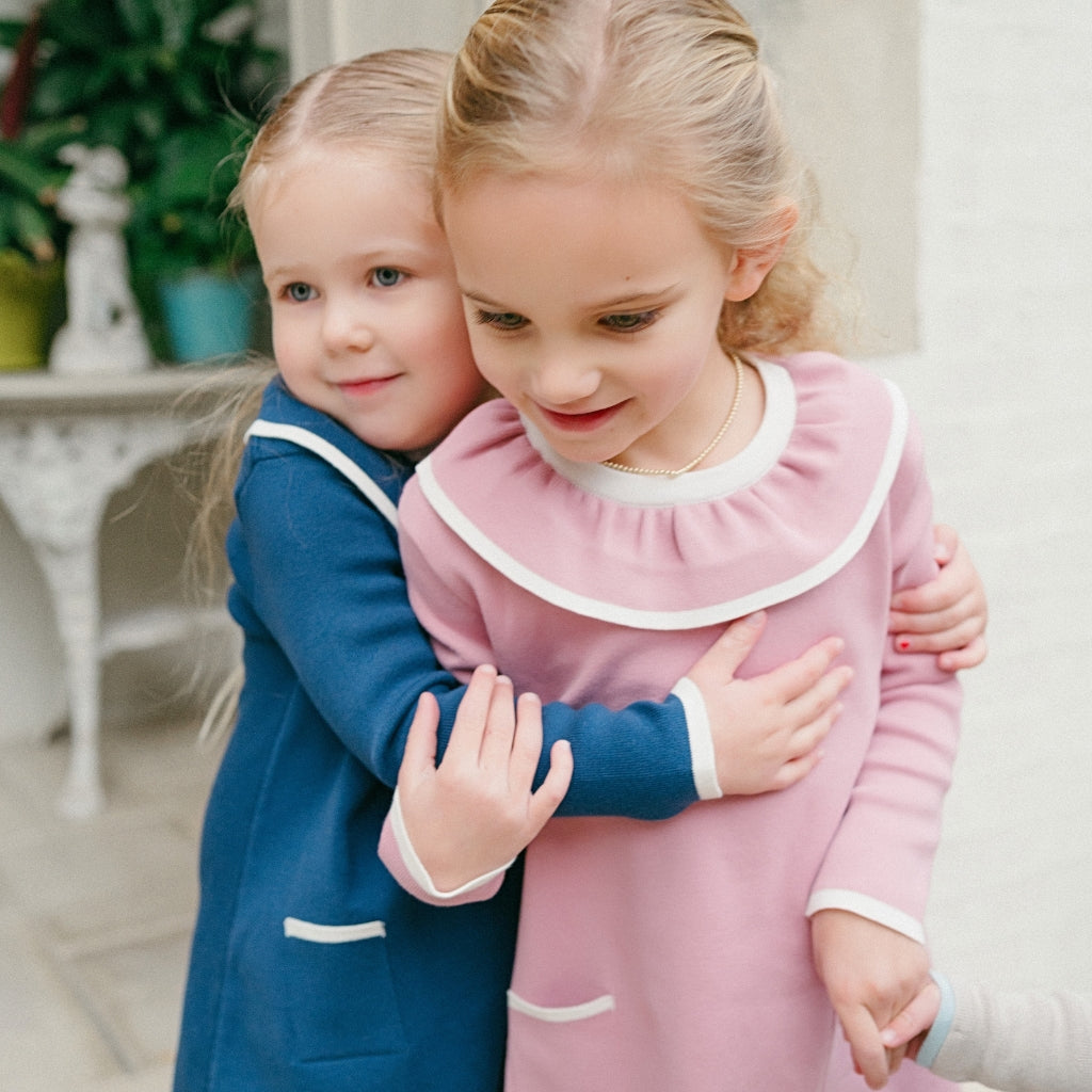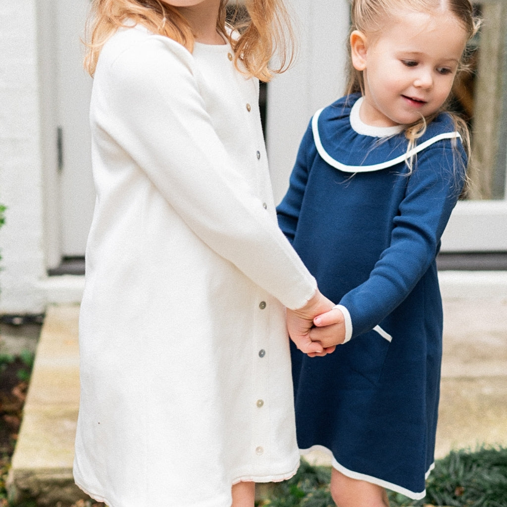 Fit & Design Details: The Marais runs true to US sizing, but if your child is in between sizes or on the taller side, we recommend going up one size for longer wear. Available in rose/ivory, navy/ivory and sandstone/ice blue, the Marais is suitable for year-round wear on little girls 12 months to 8 years. Its A-line style intended to hit just above the knee accommodates all little girl body types. Minimalistic in style but sweet and childlike with the mini pockets and ruffle collar, the Marais pairs effortlessly with anything from sneakers, to Mary Janes, to boots, and beyond. The piping contrast makes for an eye-catching detail. Every design includes a subtly embroidered BC logo, adding a discreet, playful touch. Each piece is handmade by artisans, so no two products will be exactly alike, adding to their unique charm.