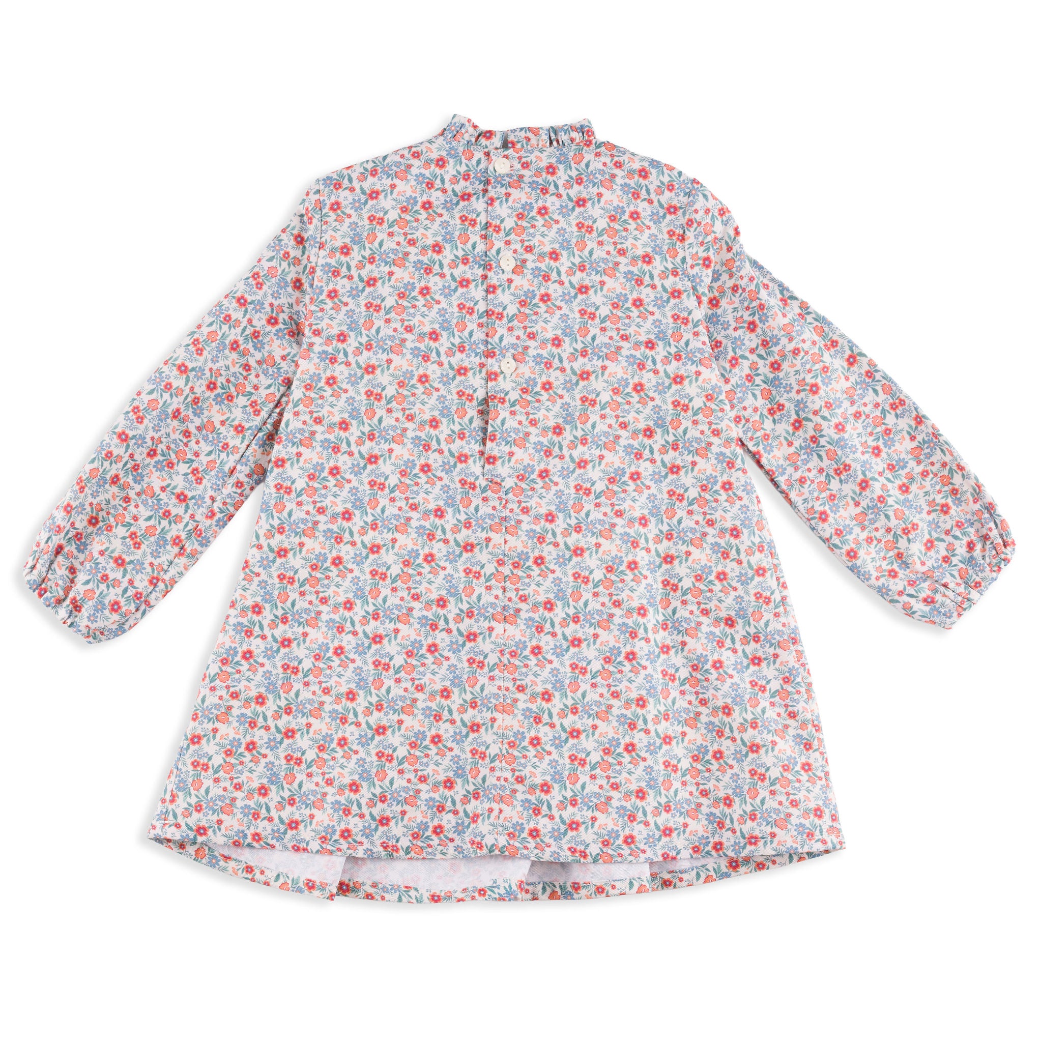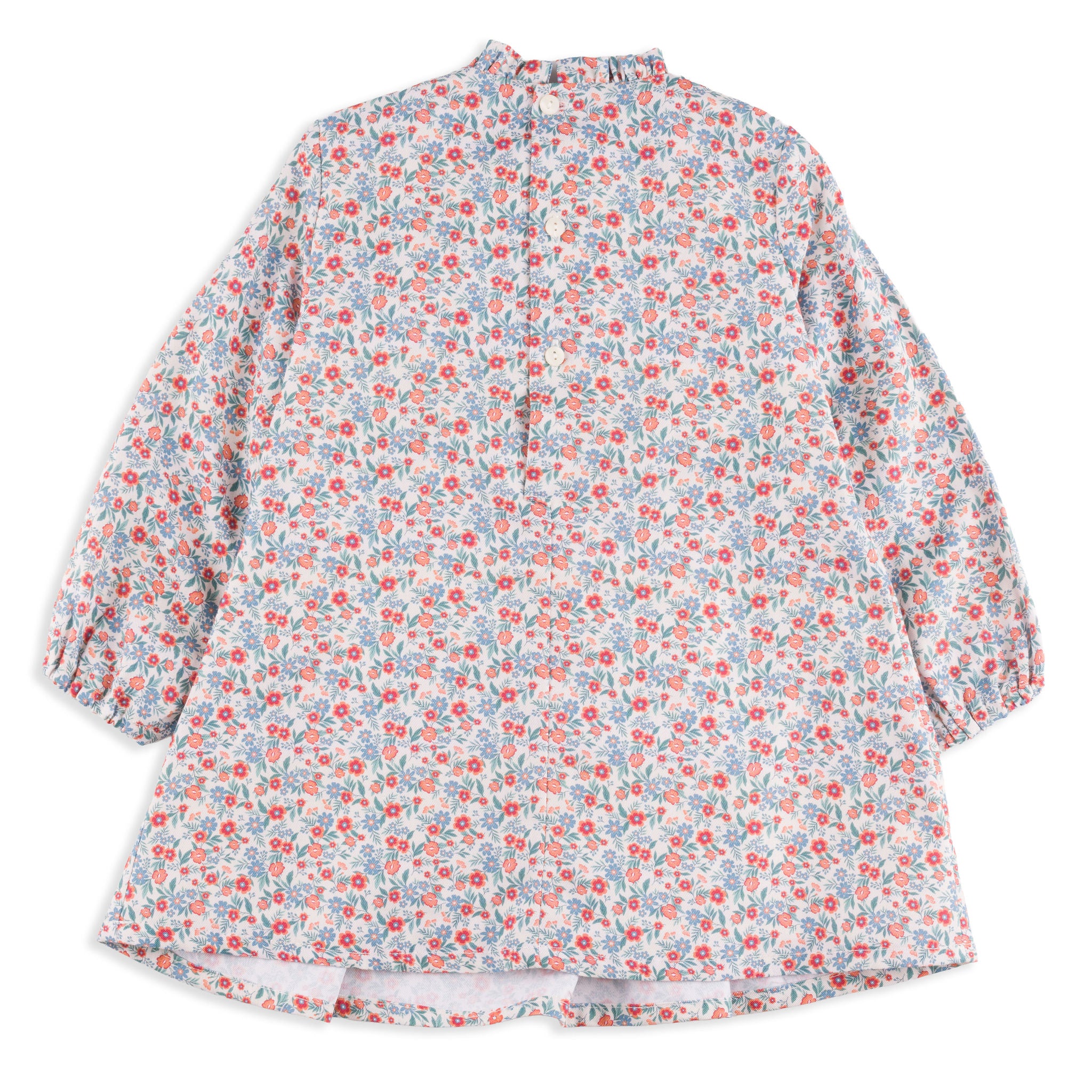 Runs true to size. The Floral Dress features a delicate all-over floral print in rich maroon tones, offering a timeless and feminine look. Designed with elastic bands for comfort and ease of movement, it blends classic charm with everyday wearability.
